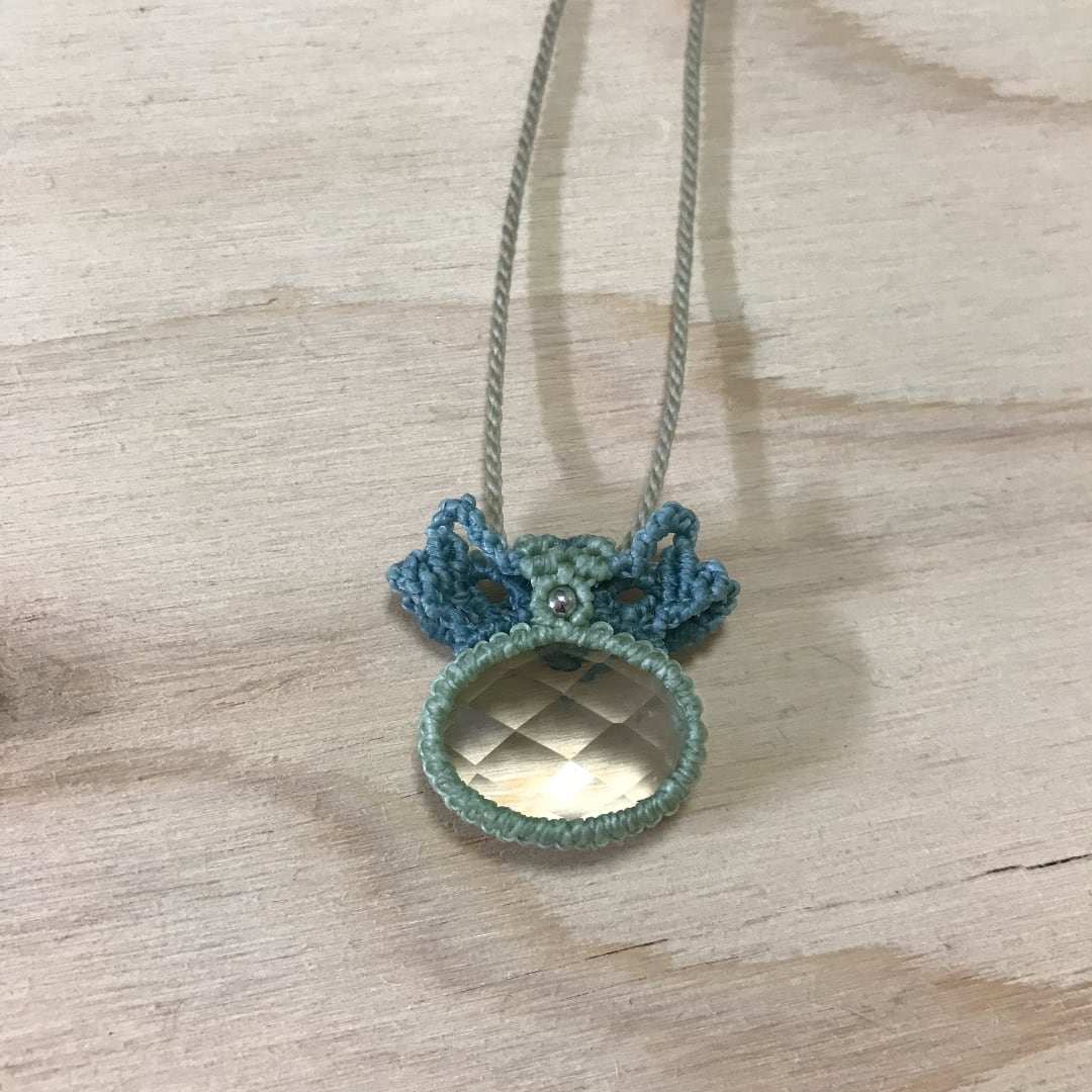 こちらは、美しいカット水晶のマクラメ編みネックレスです。