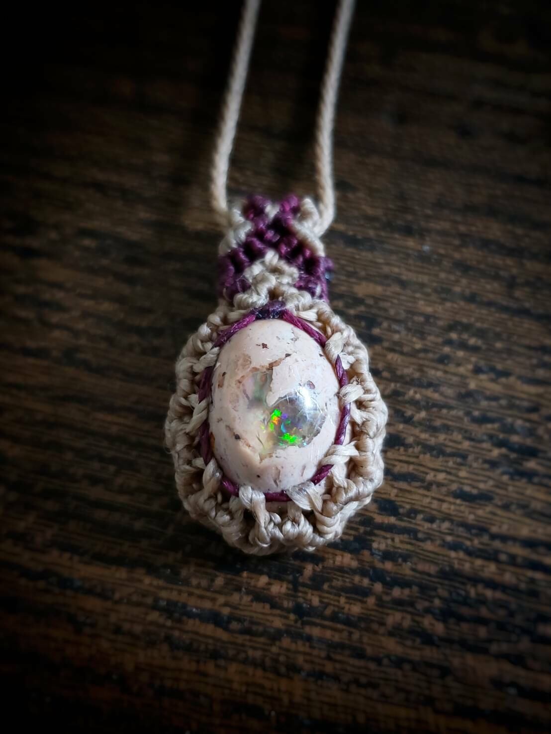 こちらは、「カンテラオパールのマクラメ編みネックレス」です。