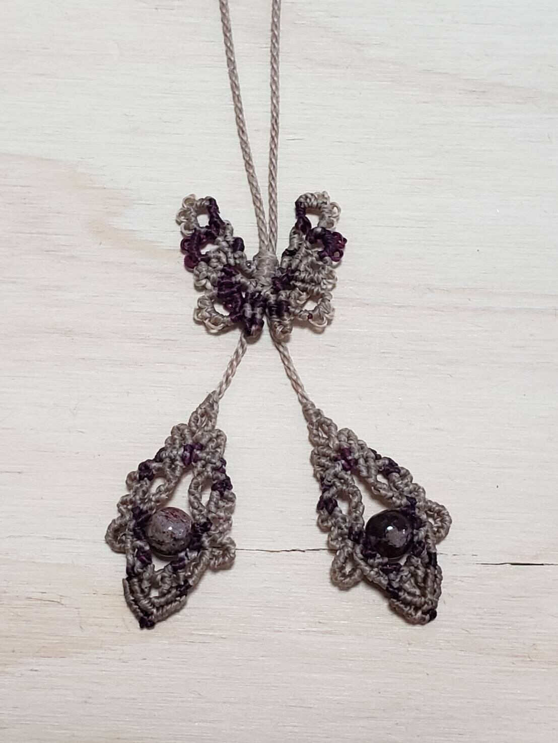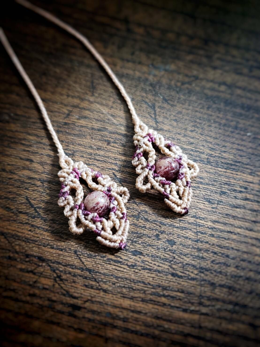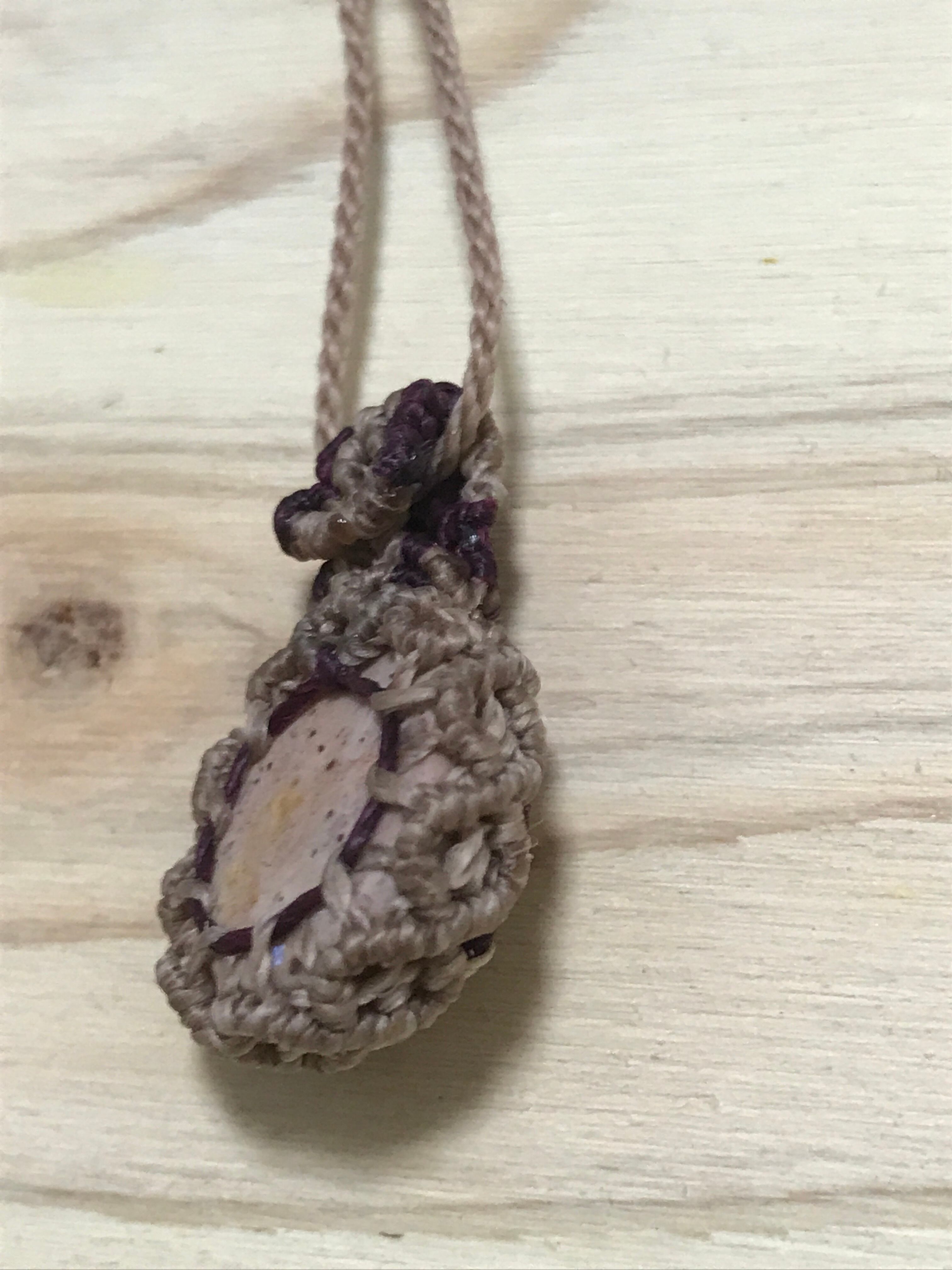 眺めていて飽きない素敵な天然石を、0.5ミリのブラジル産ワックスコードで包み編みをしてマクラメ編みのネックレスにしました。