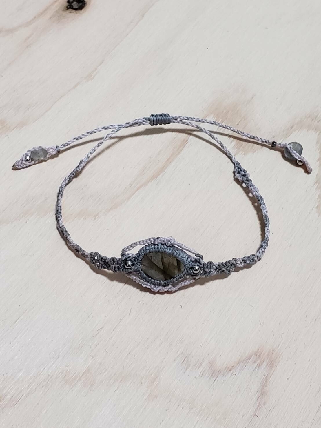 「ラブラドライトペアシェイプ型」のブレスレットです。