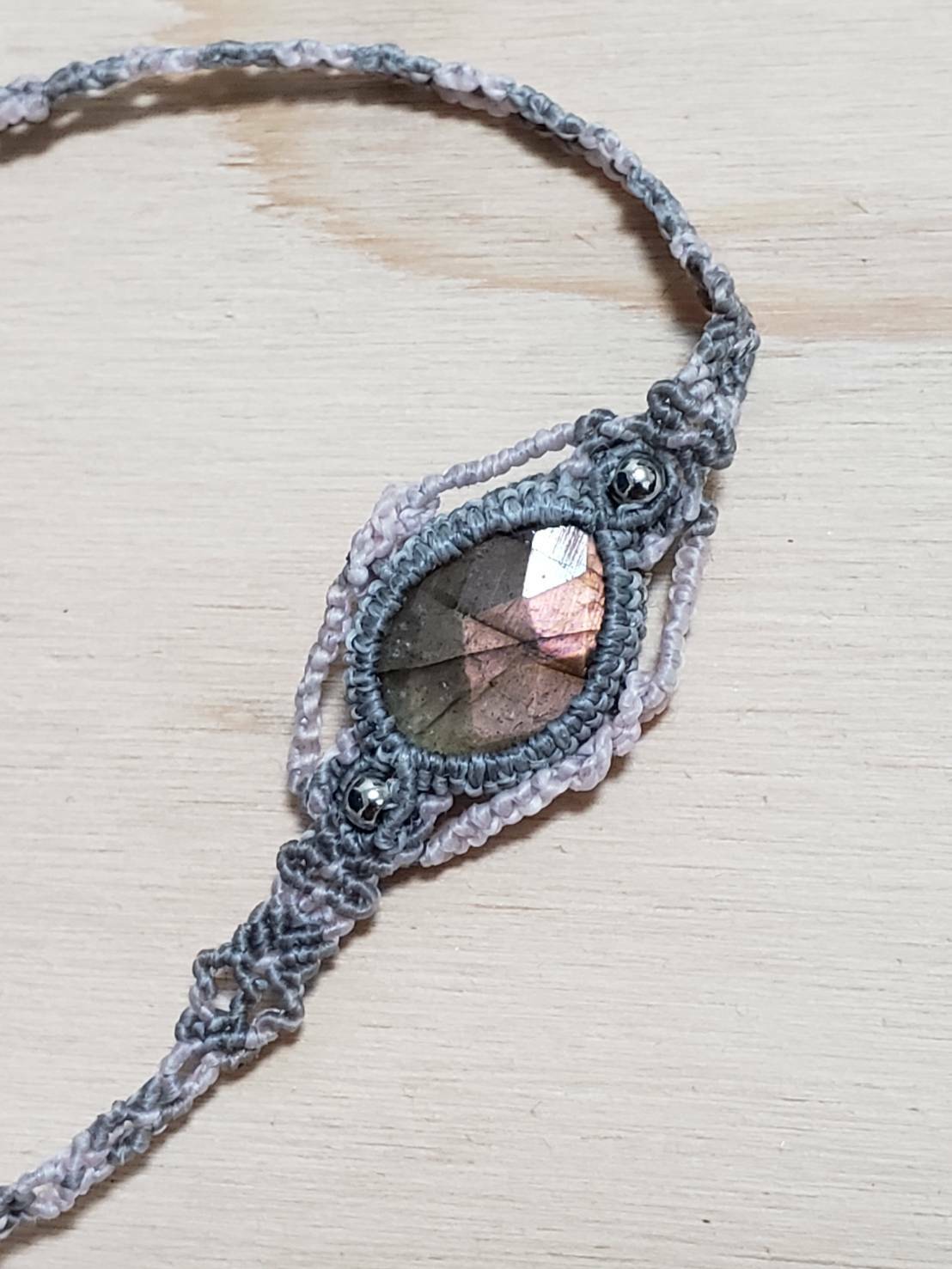 ローズカット ピンクラブラドライトのブレスレット
