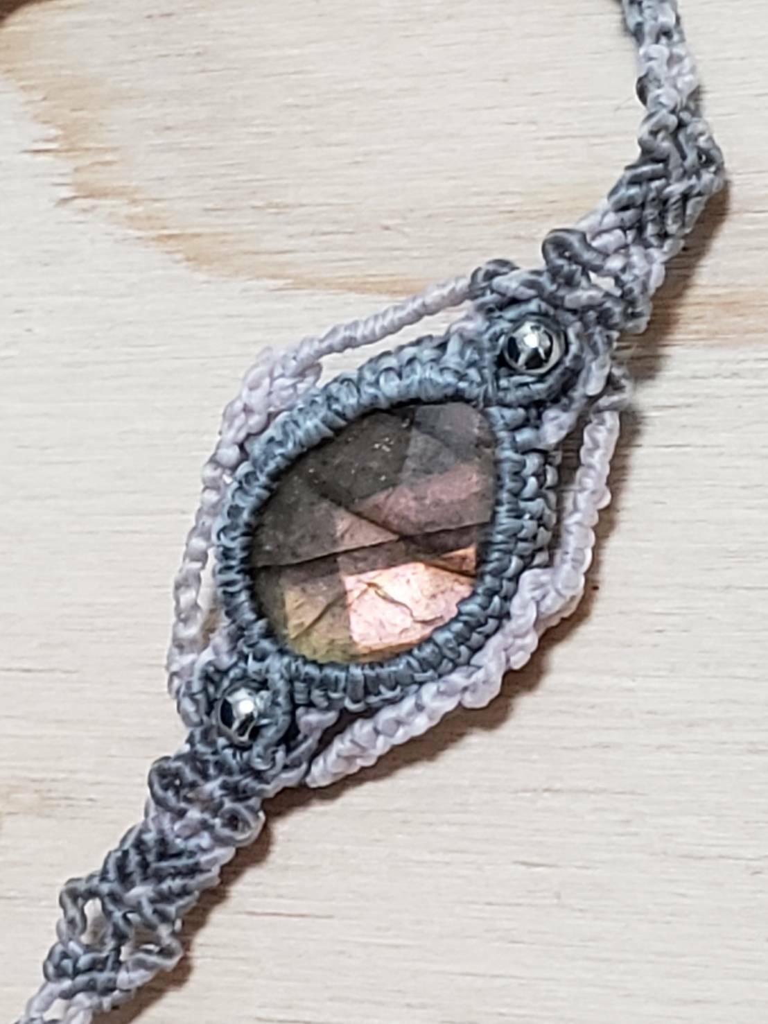 エンドのボタンカットの天然石も、「ラブラドライト」です。