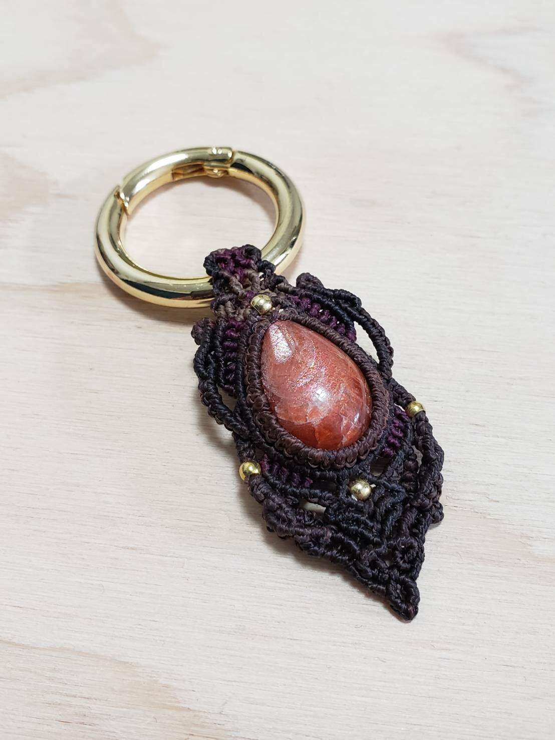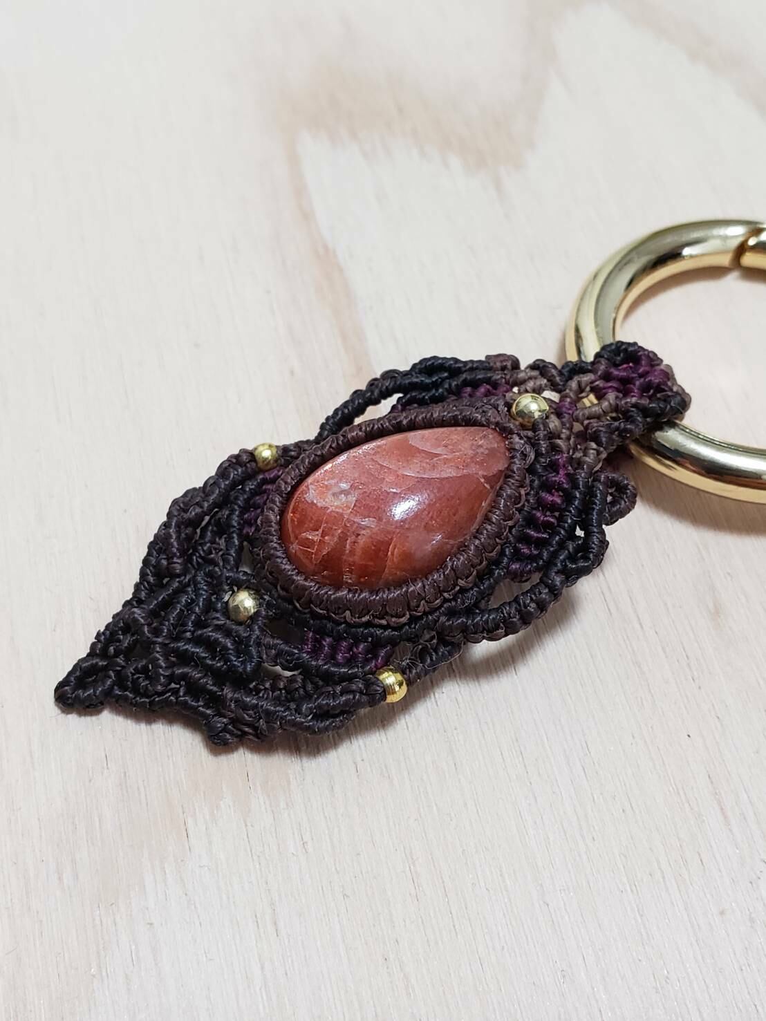 こちらは、サンストーンのマクラメ編みキーリングです。