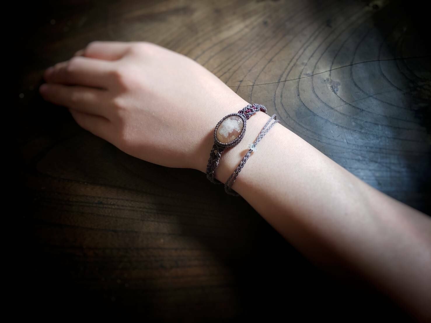 桜瑪瑙 チェリーブロッサムアゲート マクラメ 2連ブレスレット