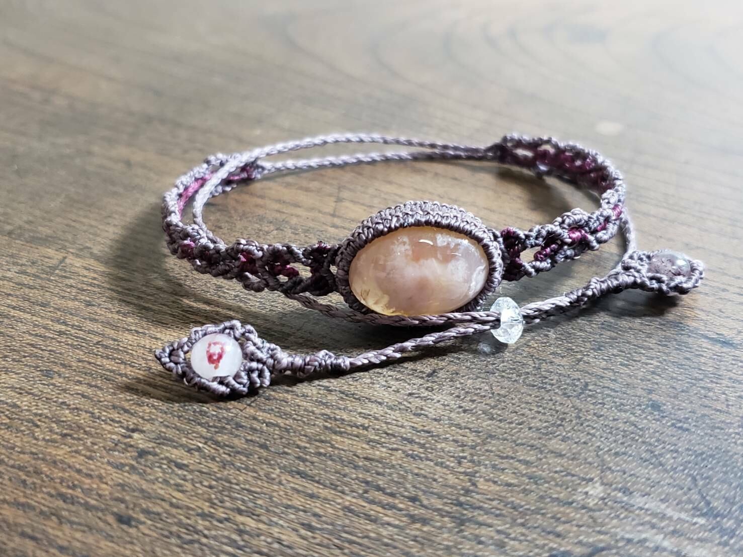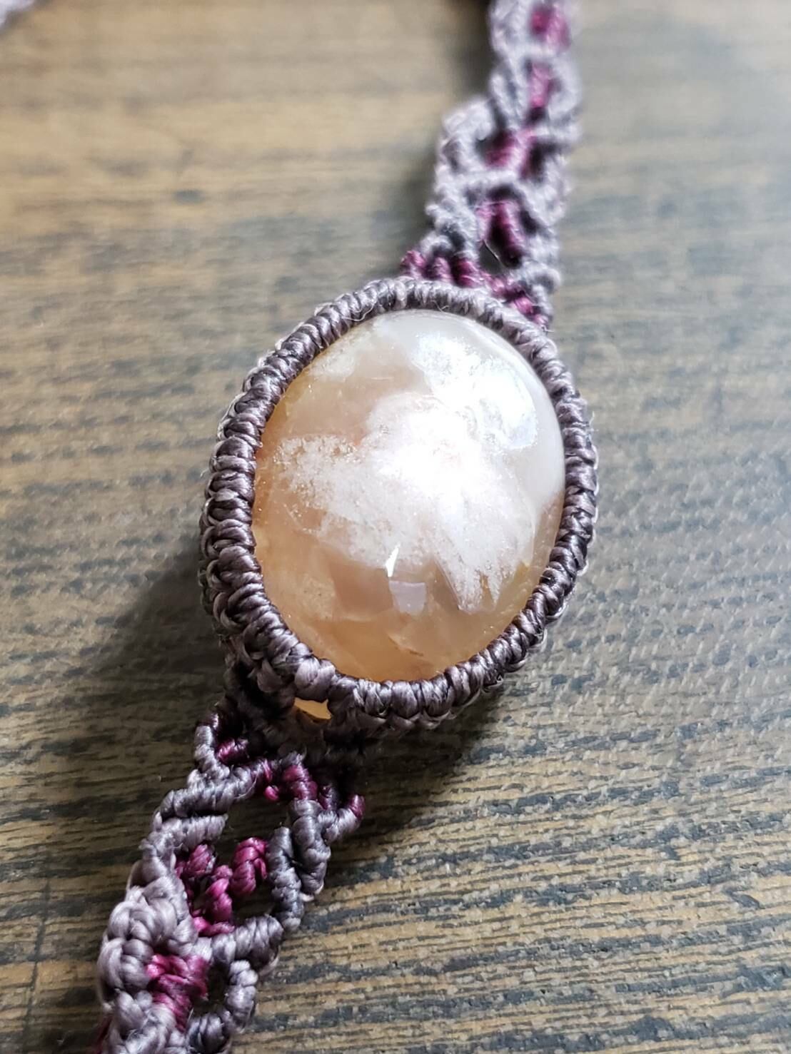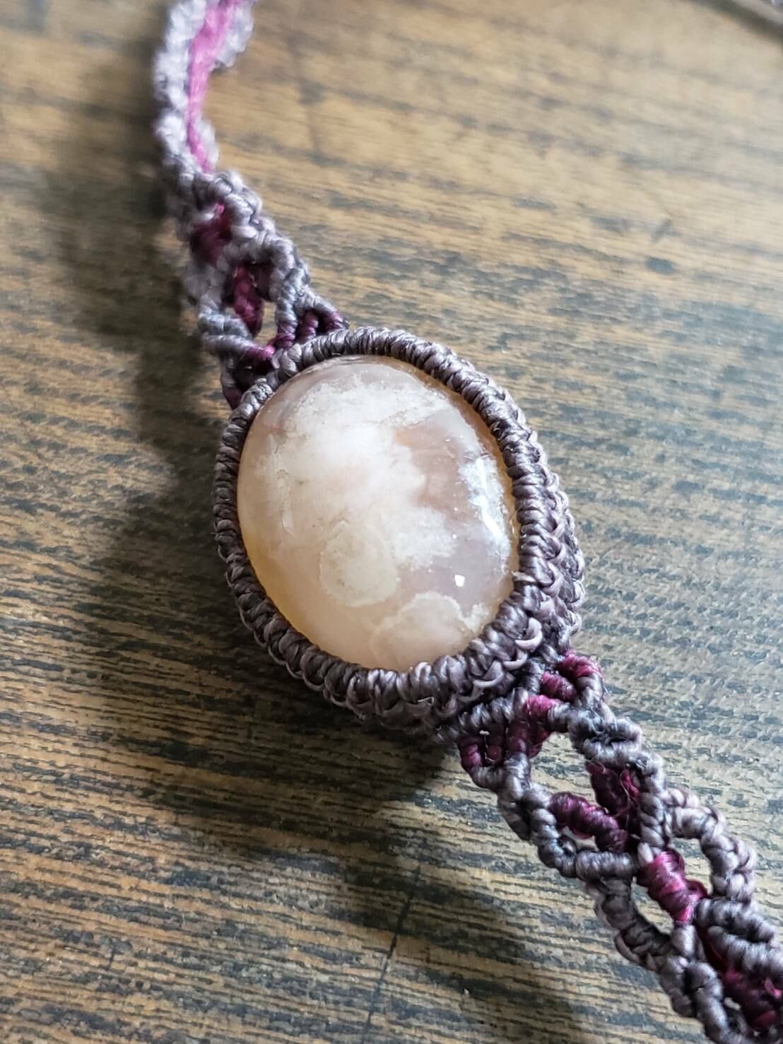 桜瑪瑙(チェリーブロッサムアゲート)のマクラメ編みブレスレットです。