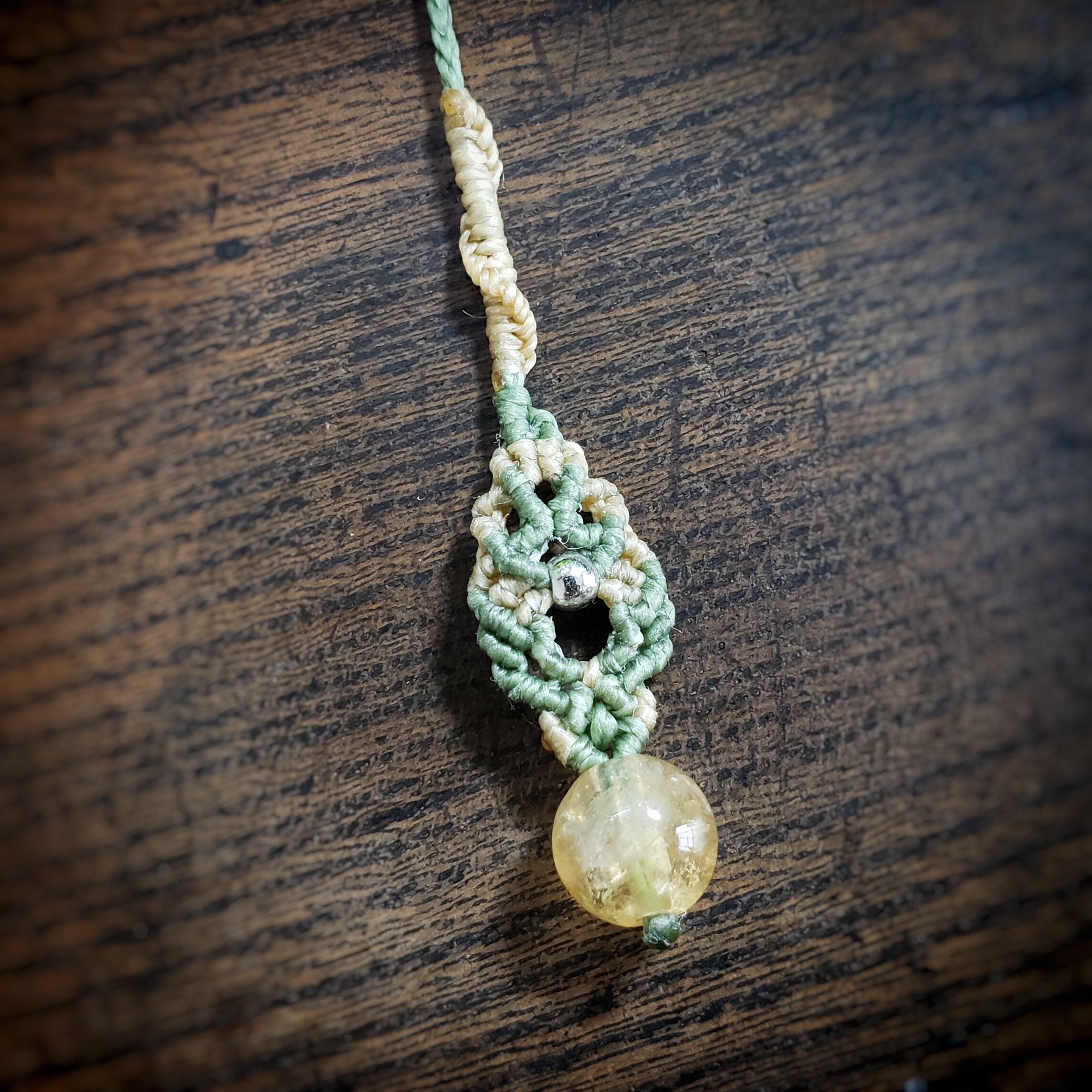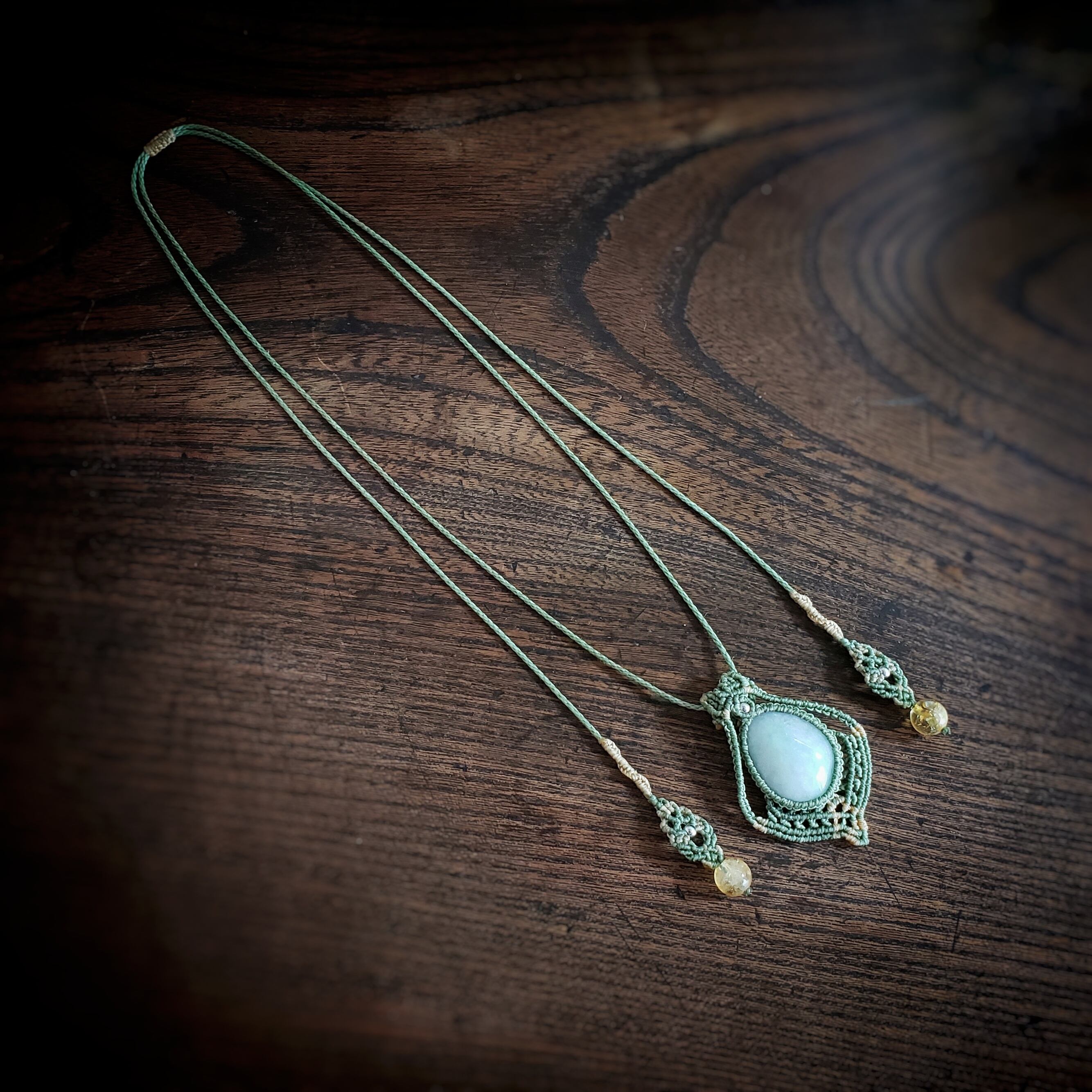 こちらはミャンマー産の翡翠をマクラメ編みで包み編みのネックレスにしました。