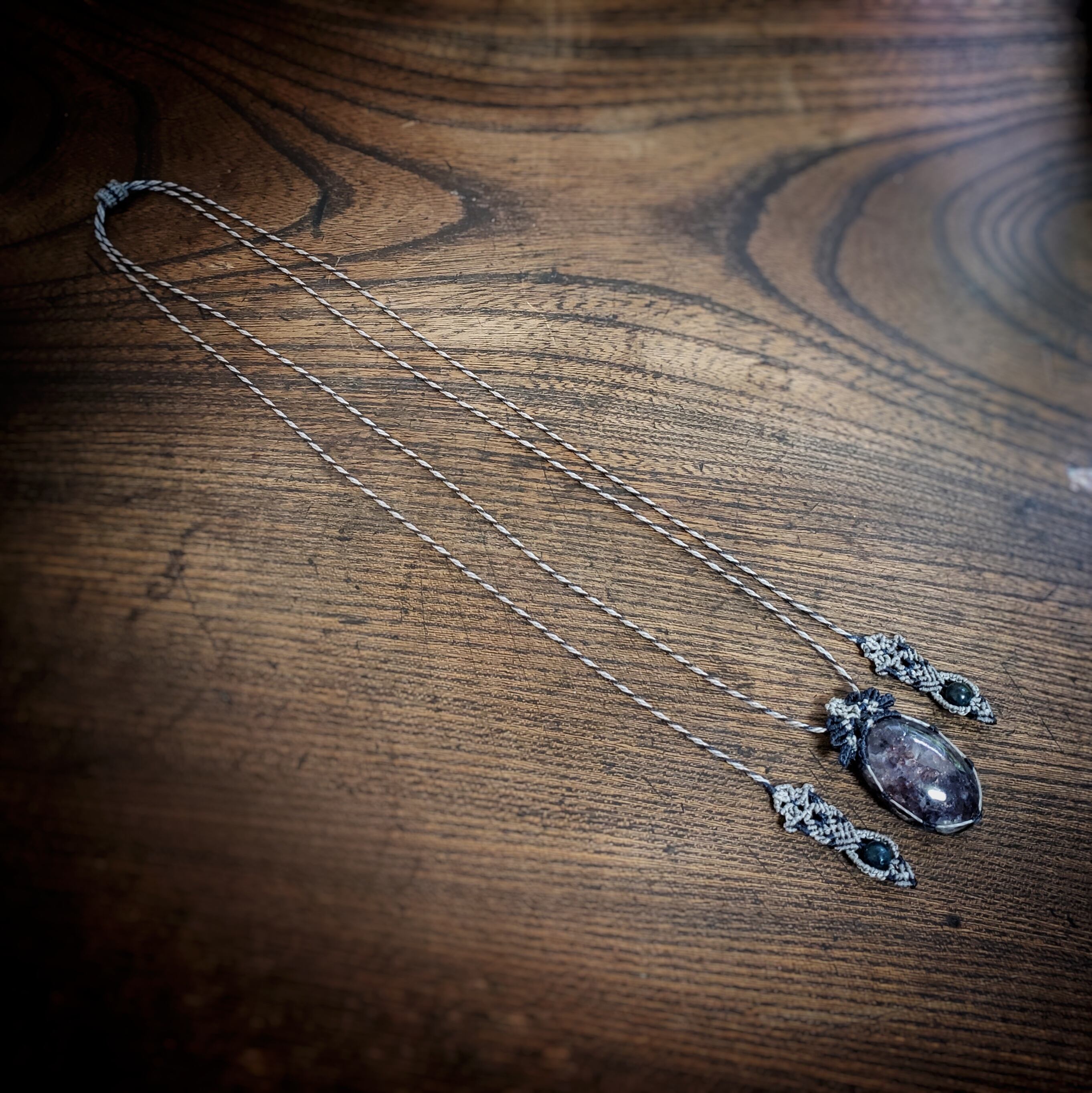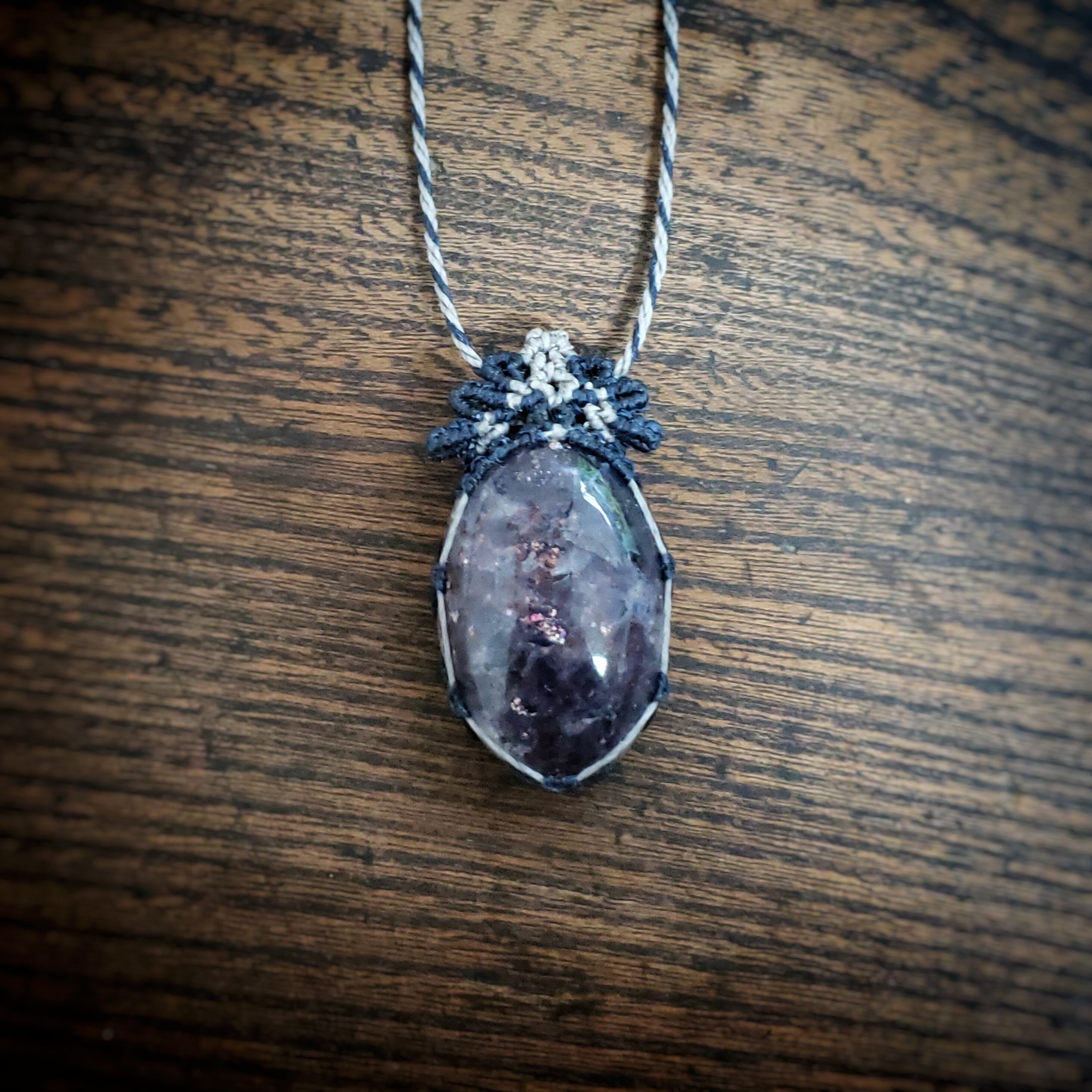 アイオライトサンストーン マクラメ編みネックレス
