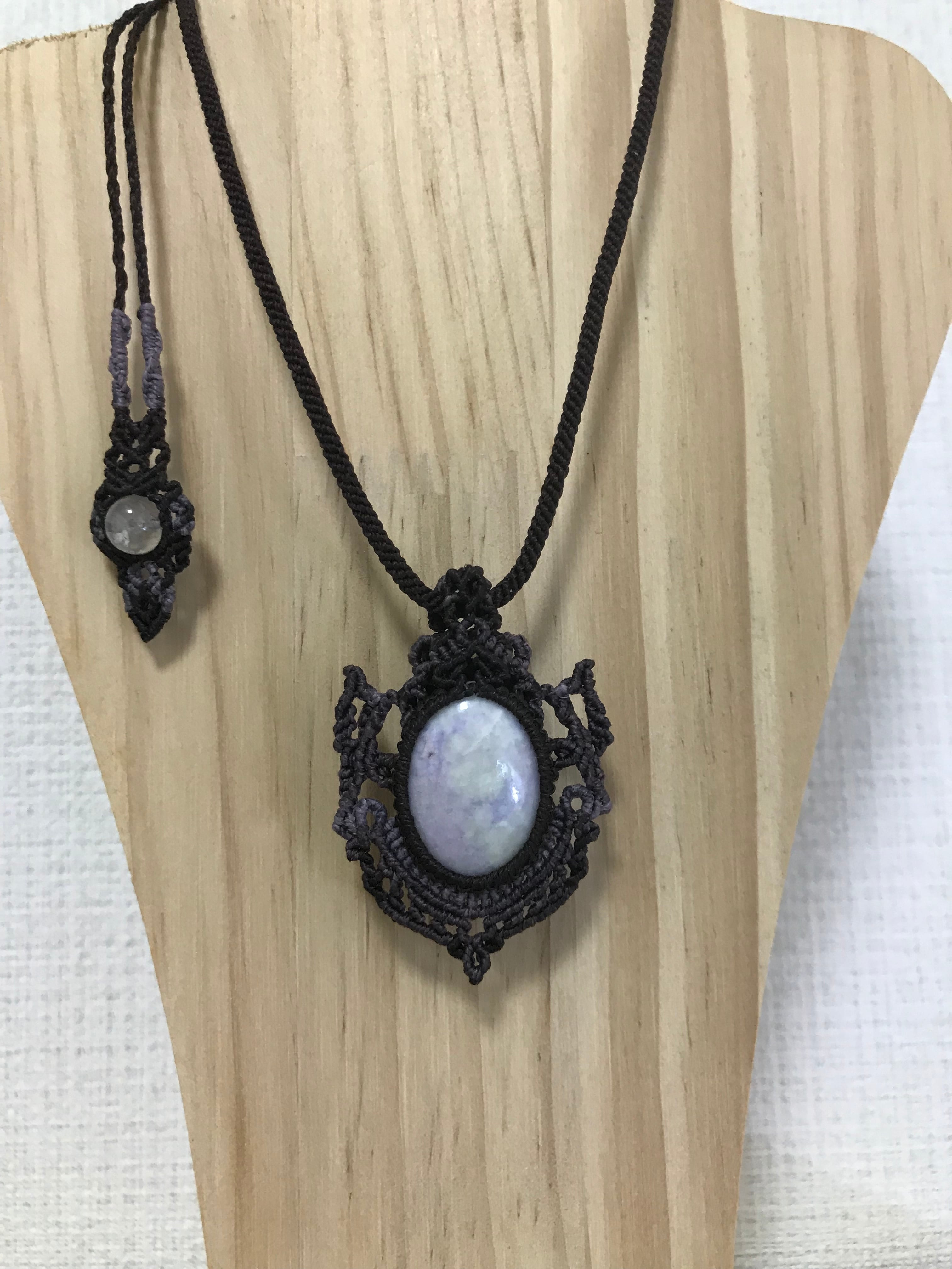 ラベンダー翡翠のマクラメ編みネックレス