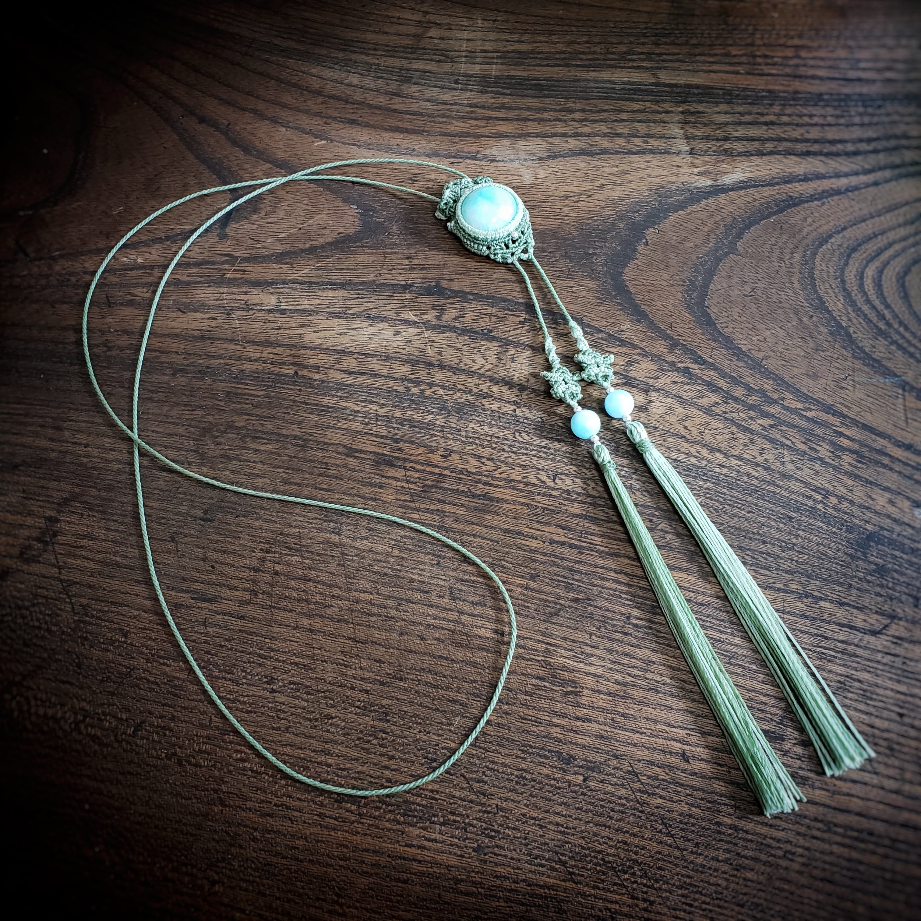 アマゾナイト ループタイ風 マクラメ編み ネックレス