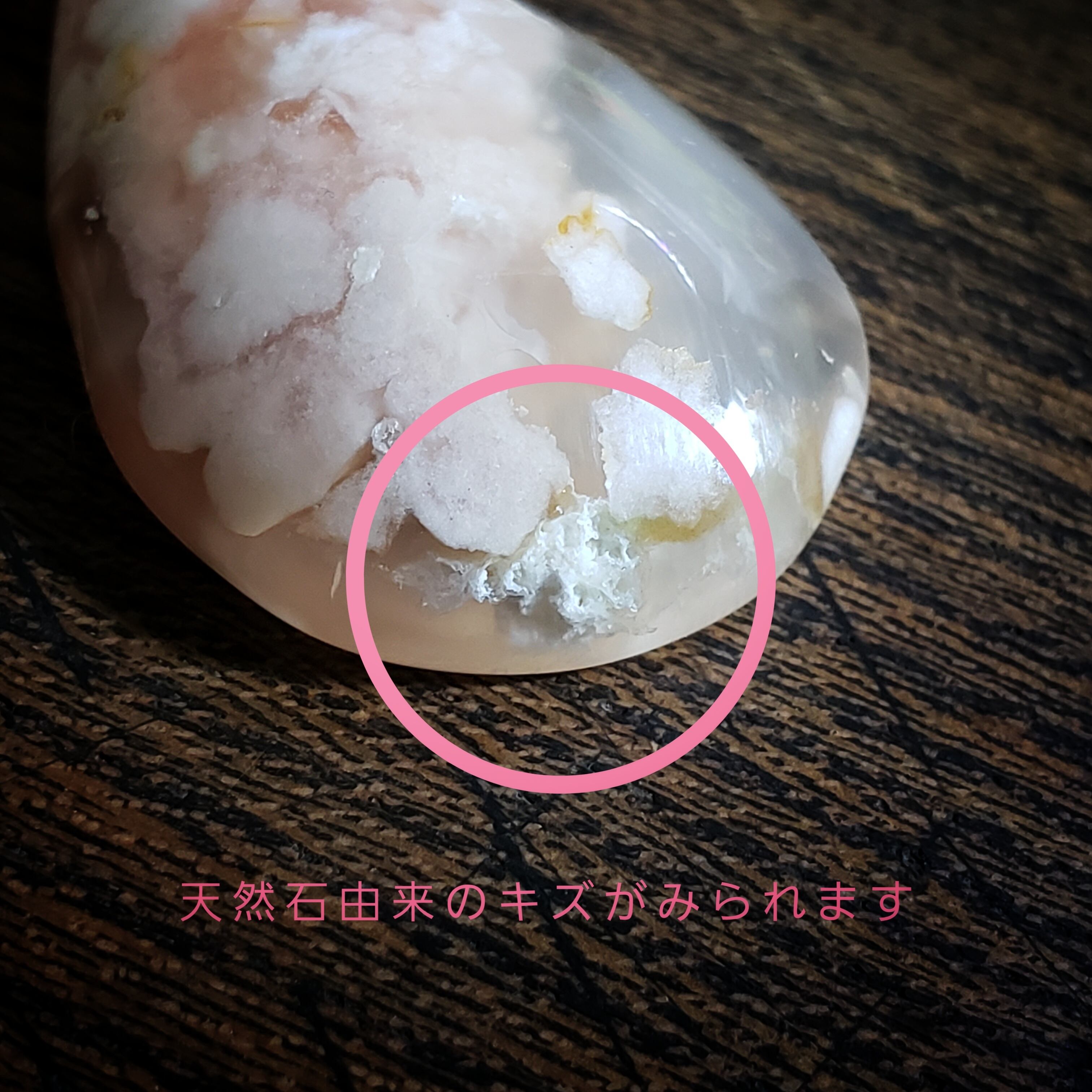 まるで桜の花びらが内包しているかのような表情が特徴です。別名「桜瑪瑙」とも呼ばれています。