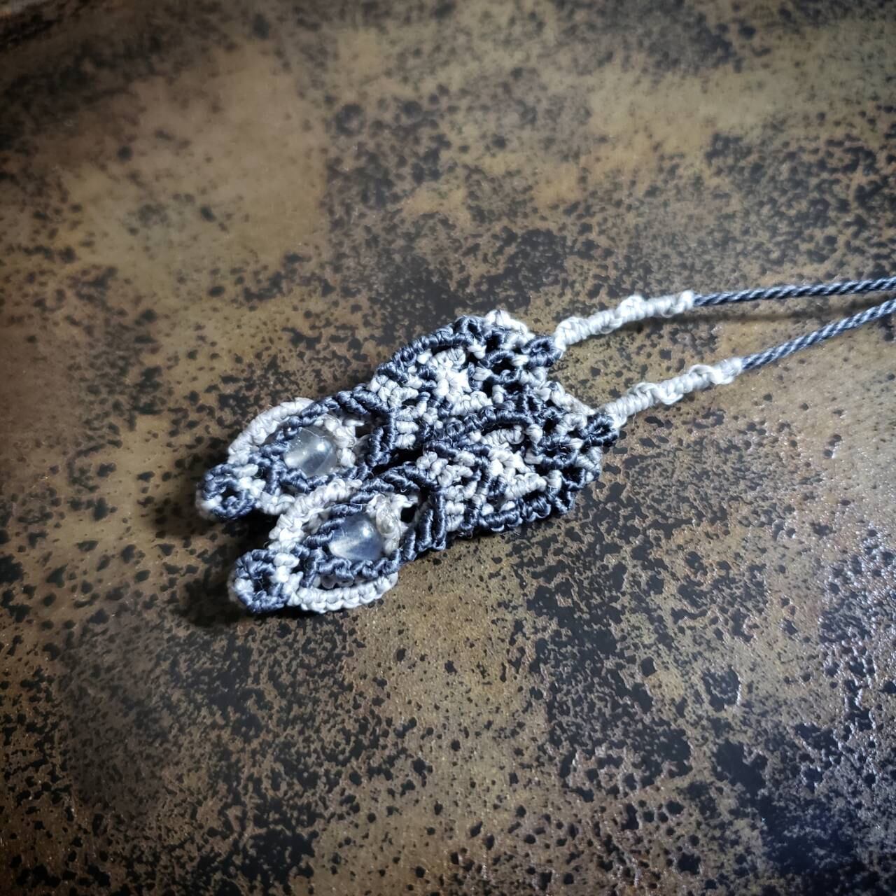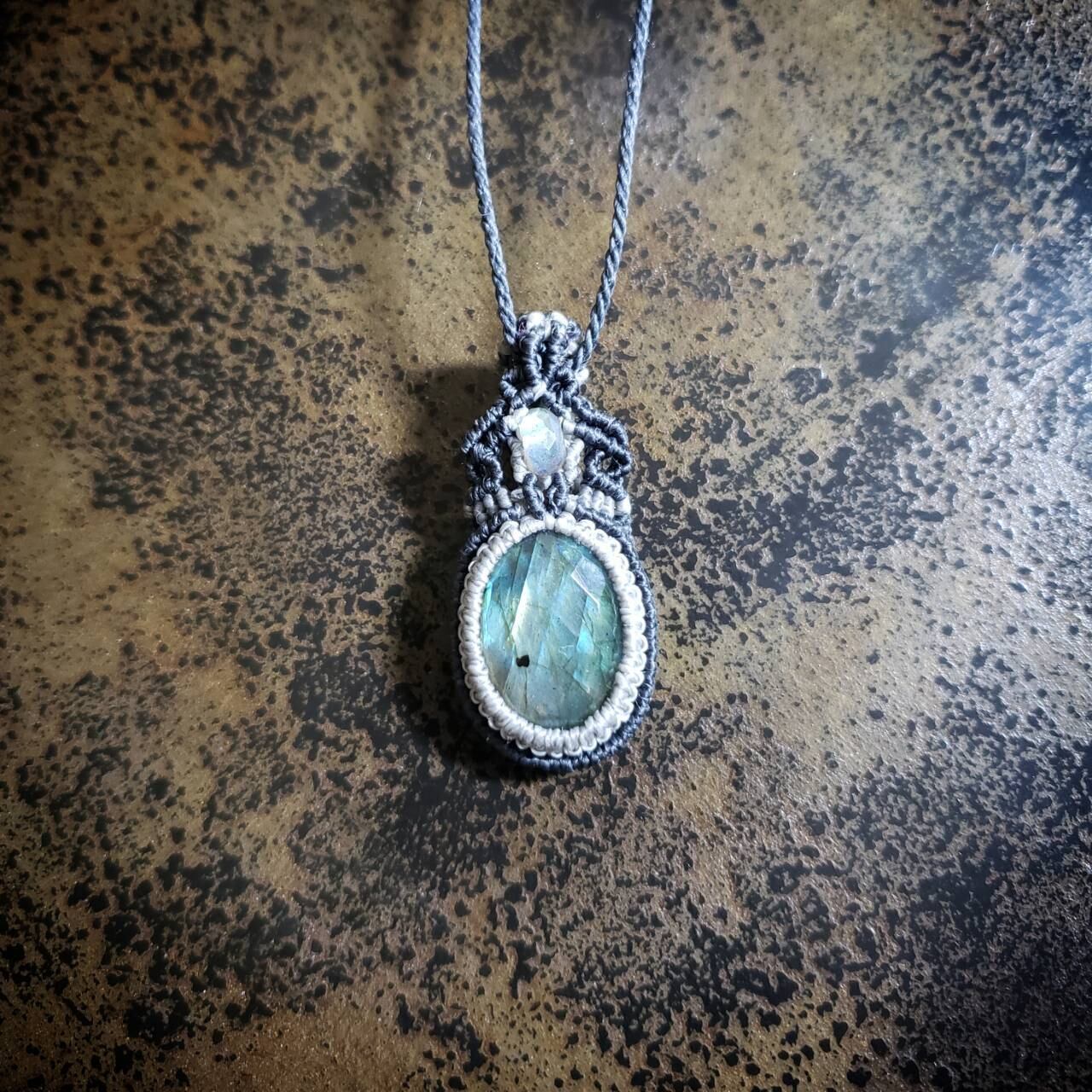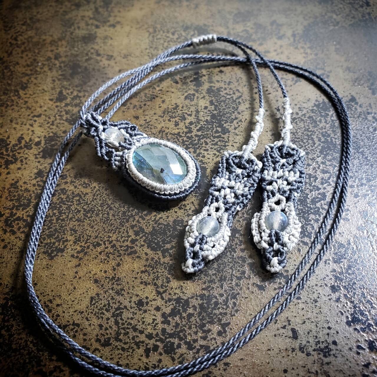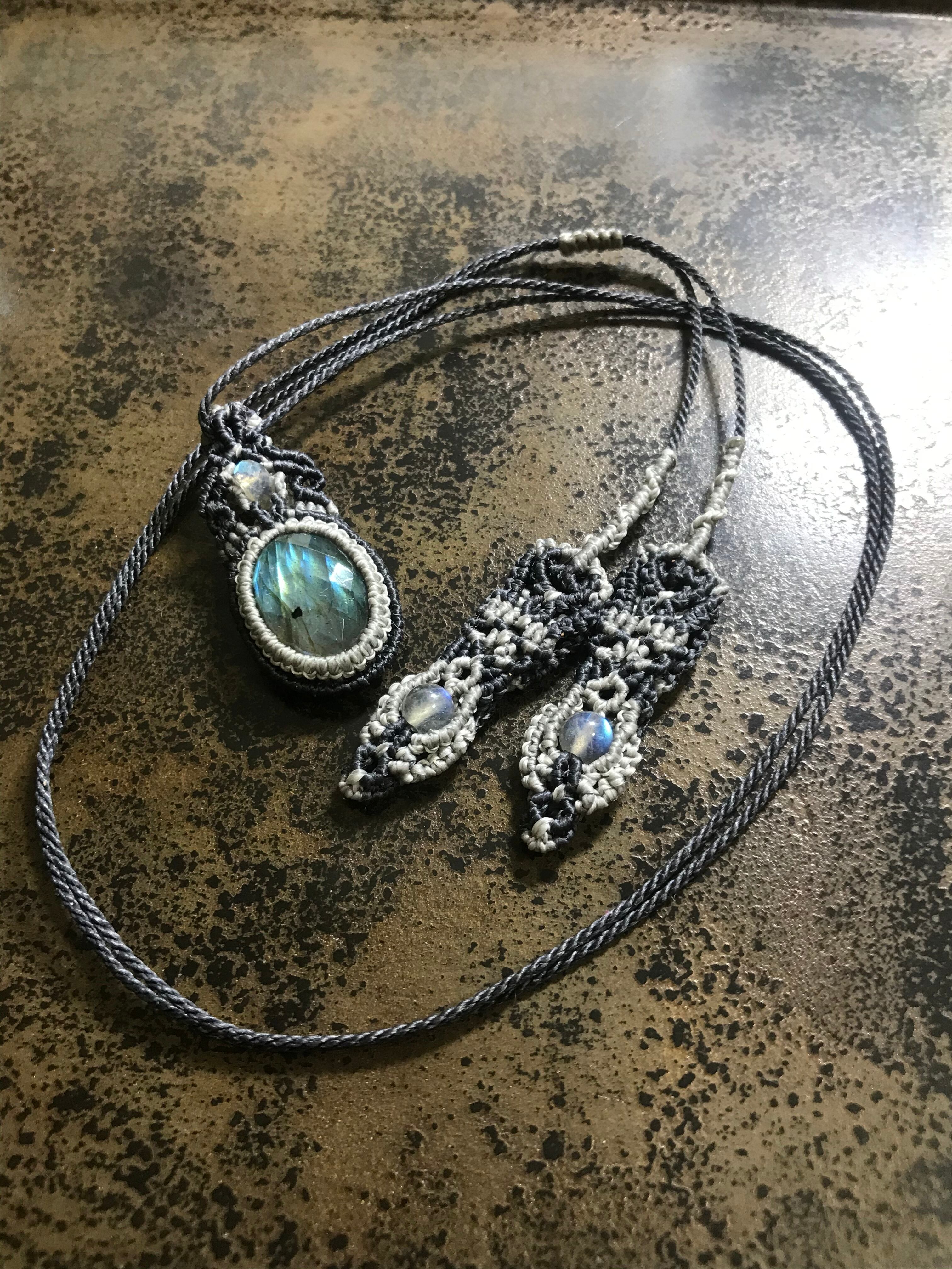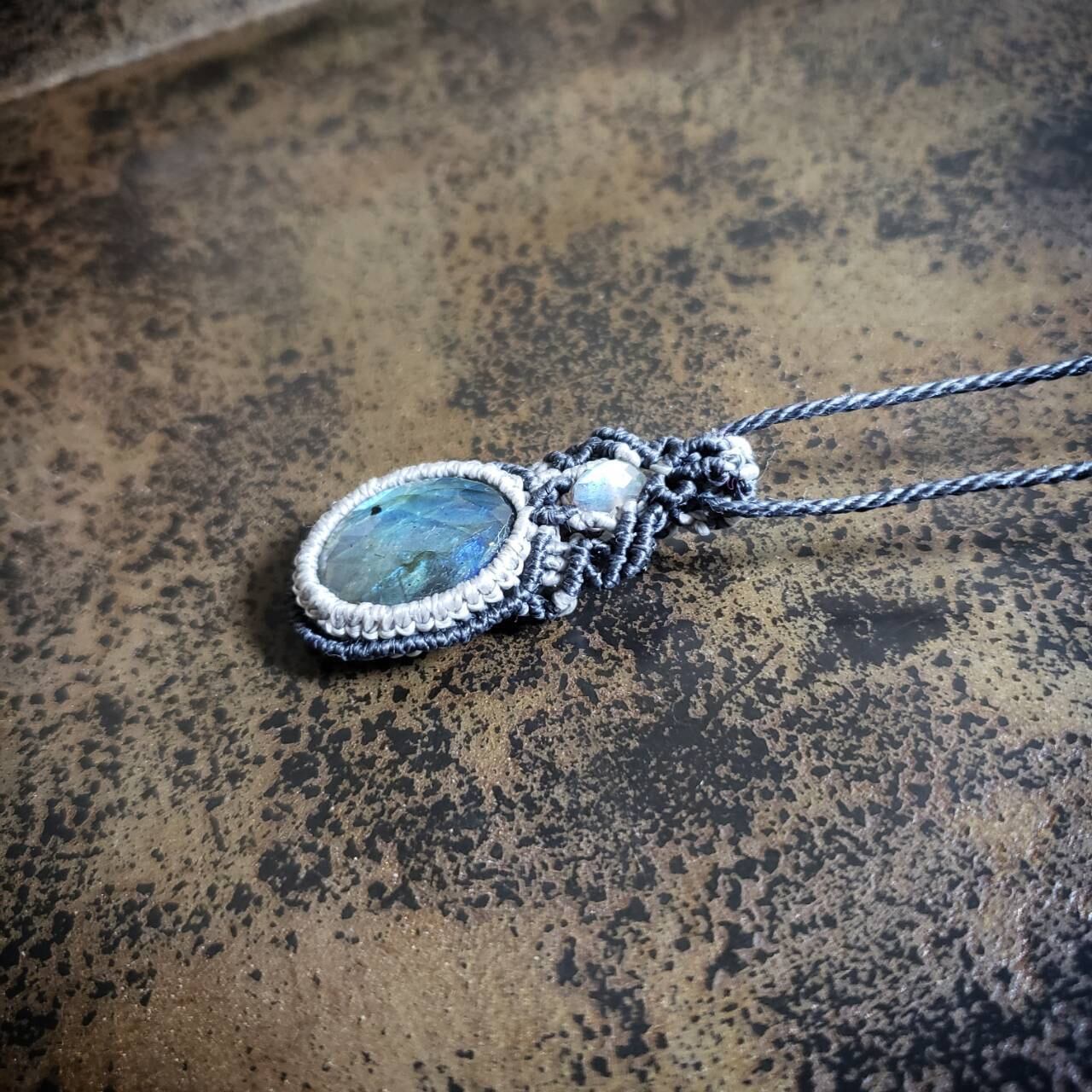 こちらは、ラブラドライトのマクラメ編みネックレスです。