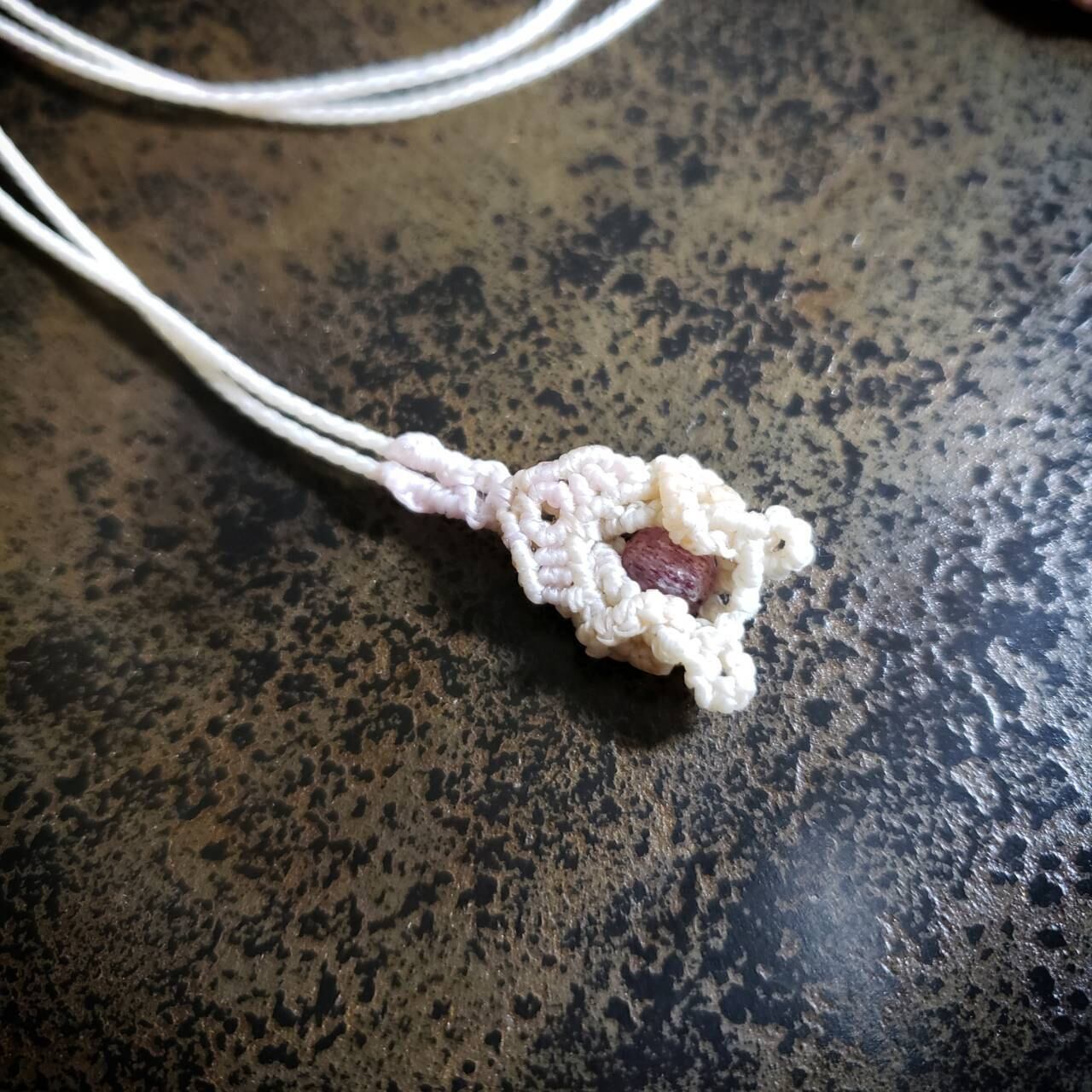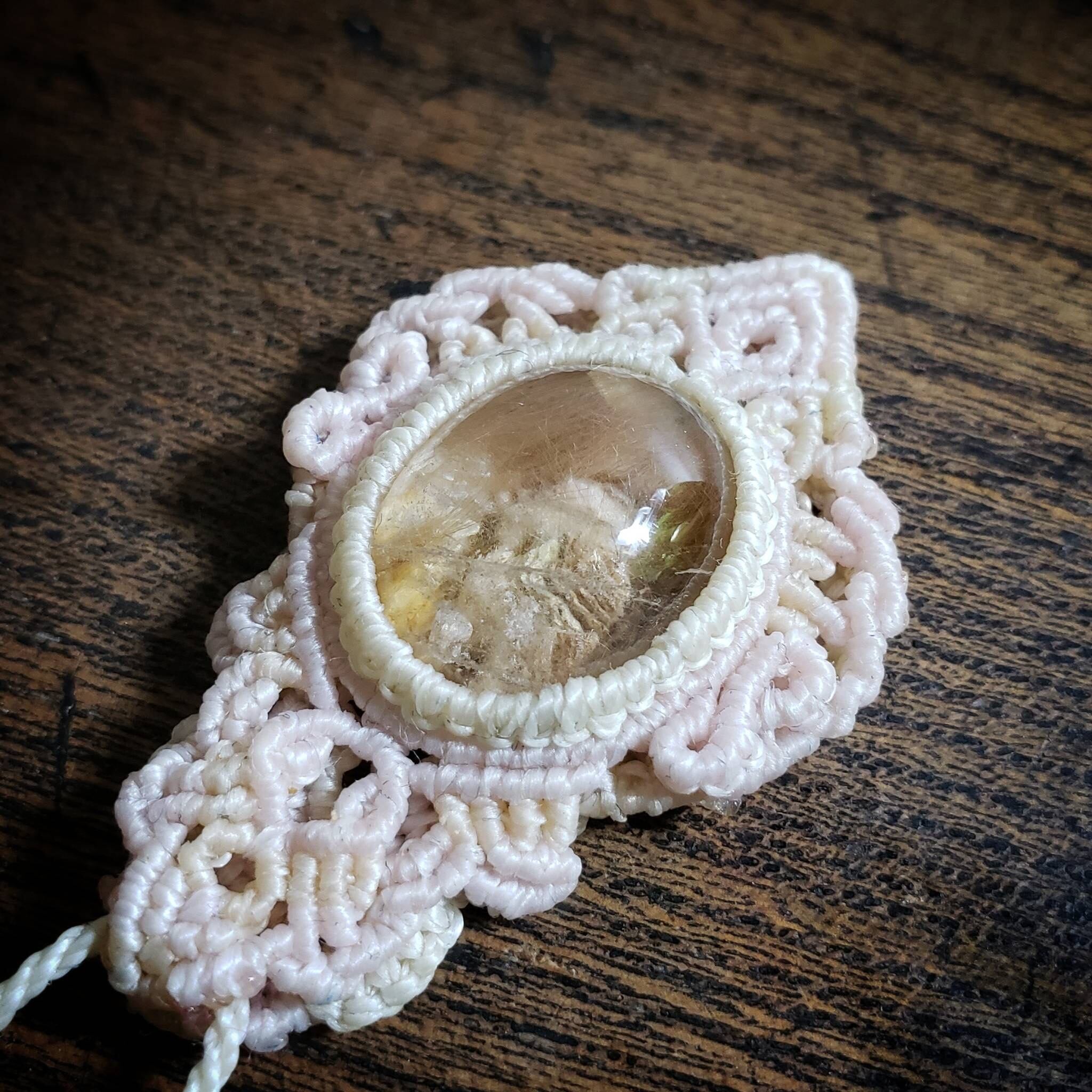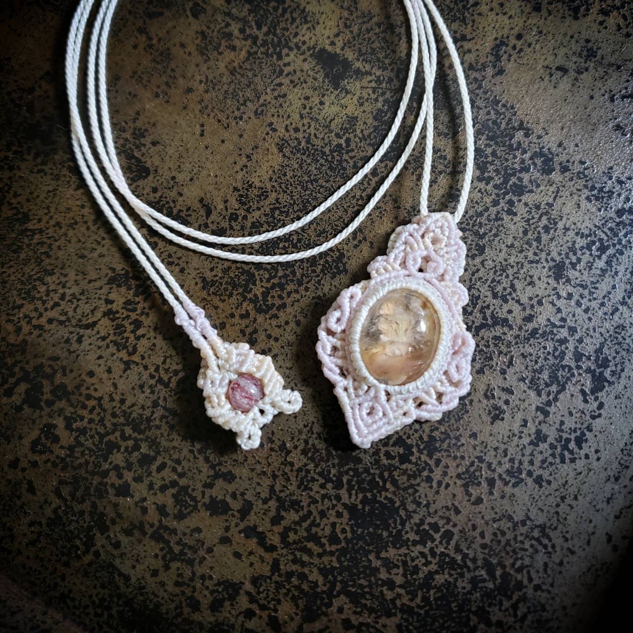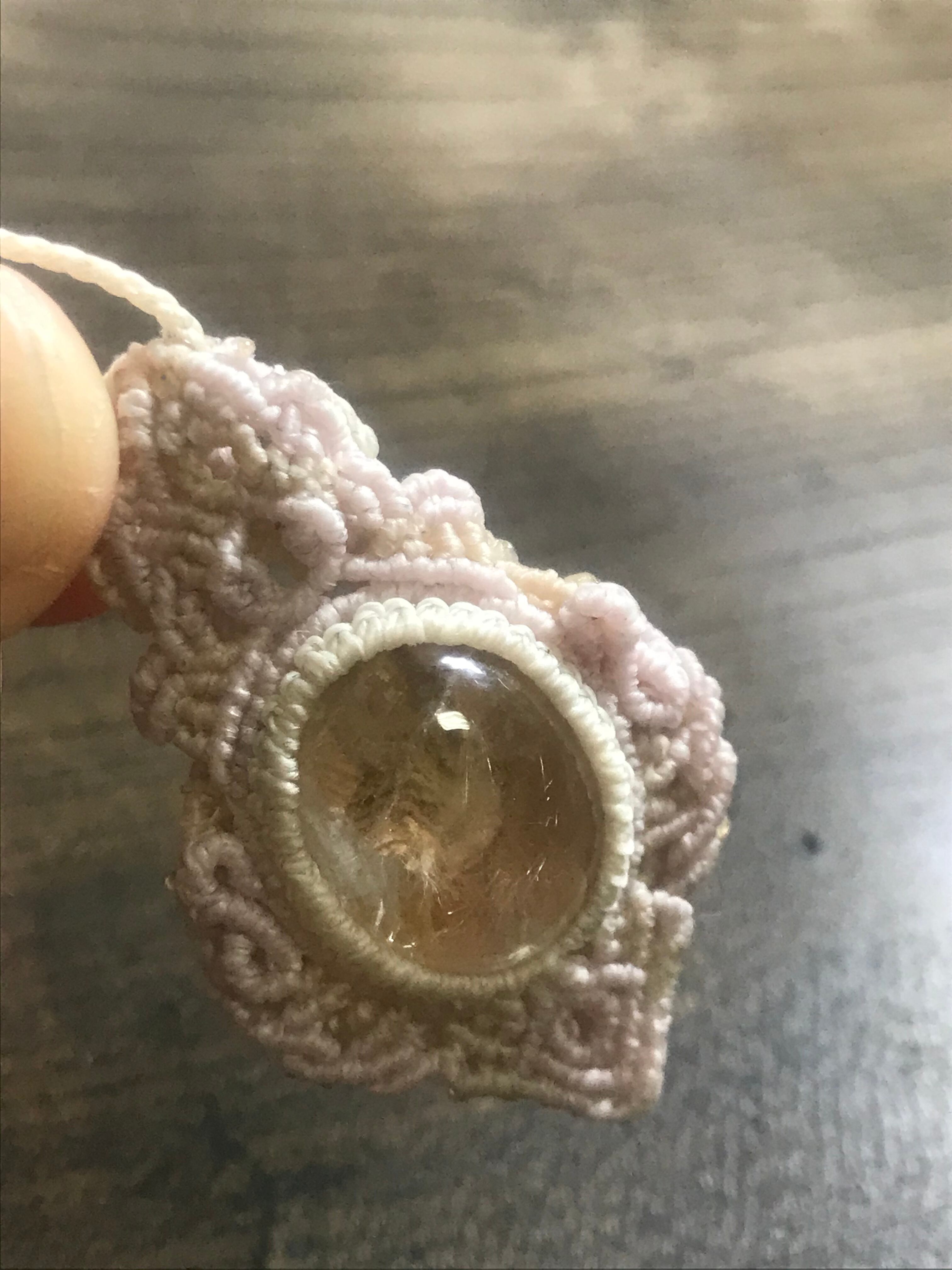 ガーデンクォーツの天然石をマクラメ編みしてハンドメイドネックレスを作りました。