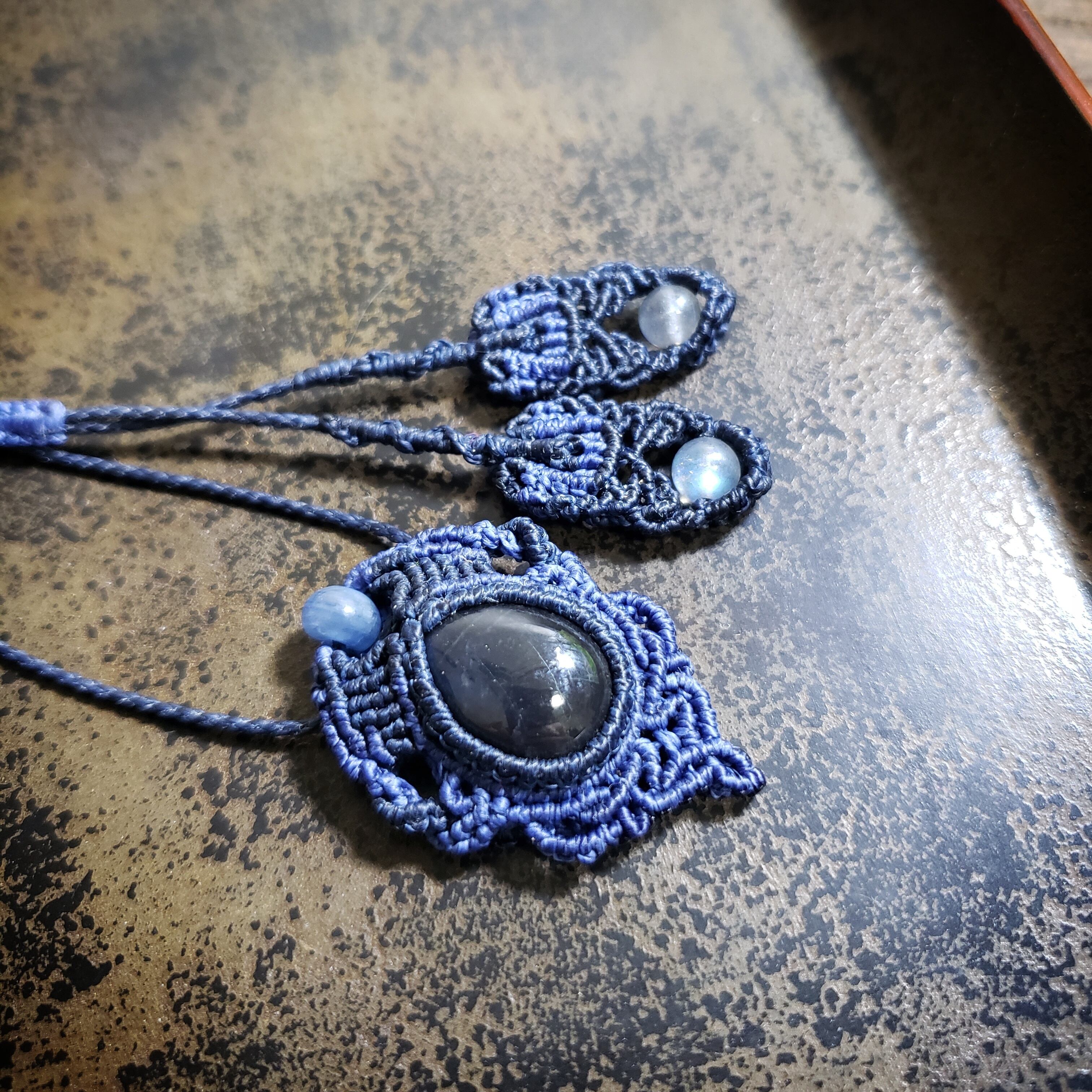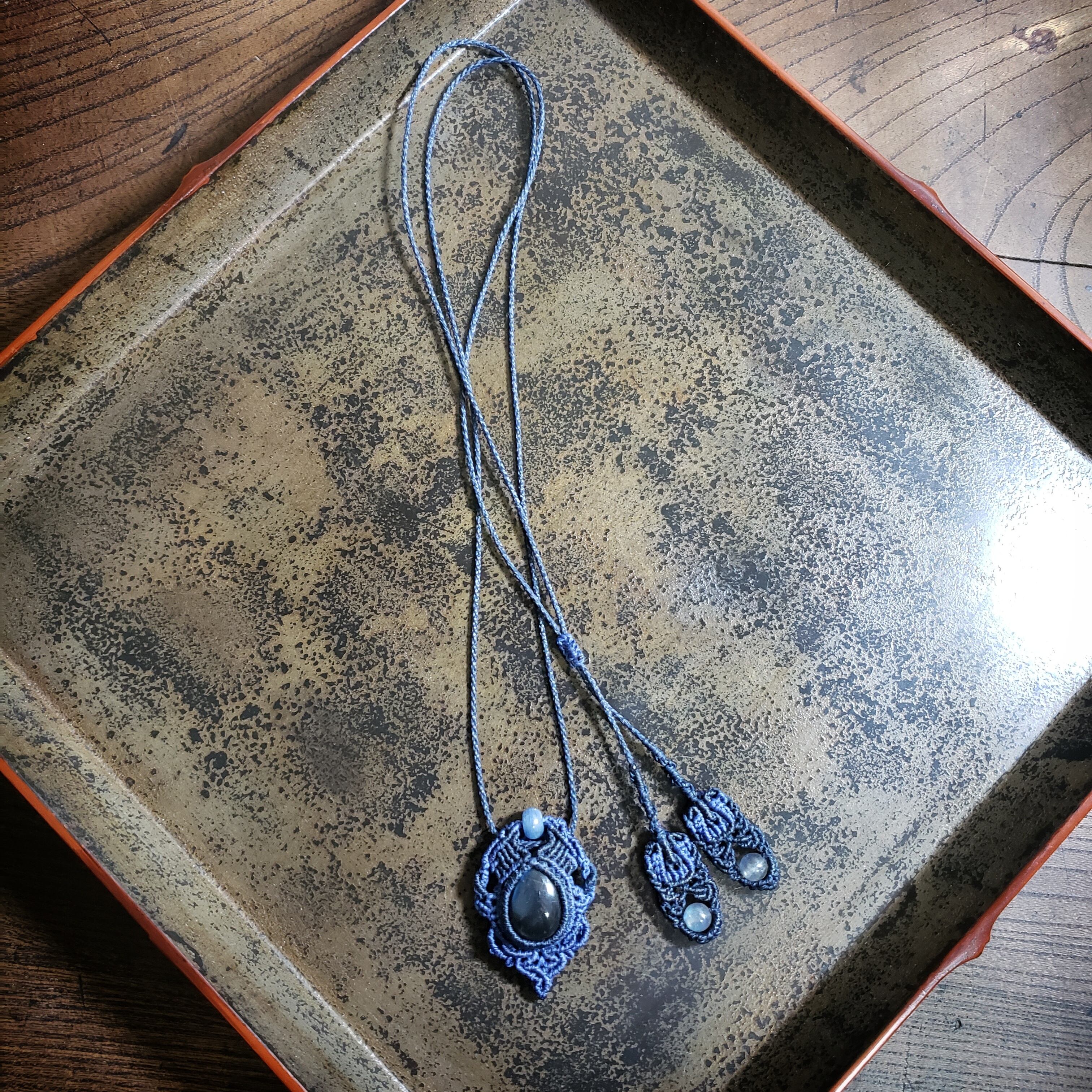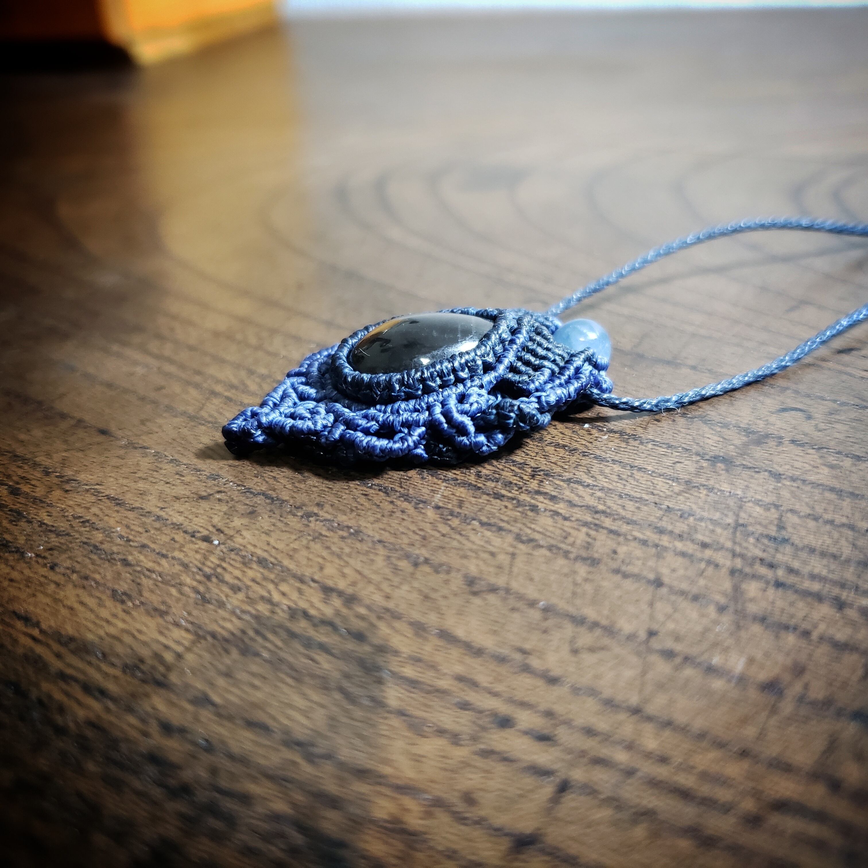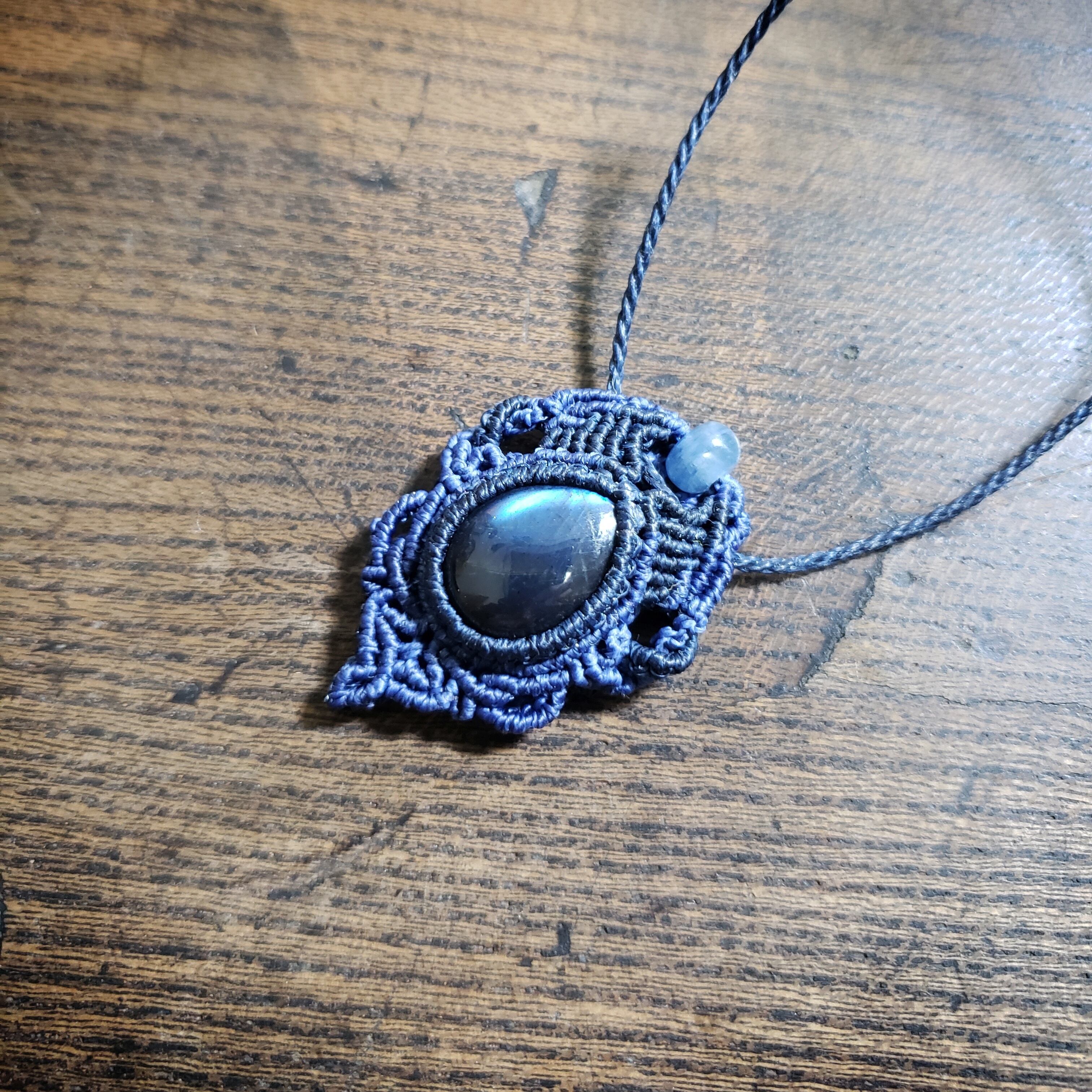 ブルーシラー「ラブラドライト」マクラメ編みネックレス