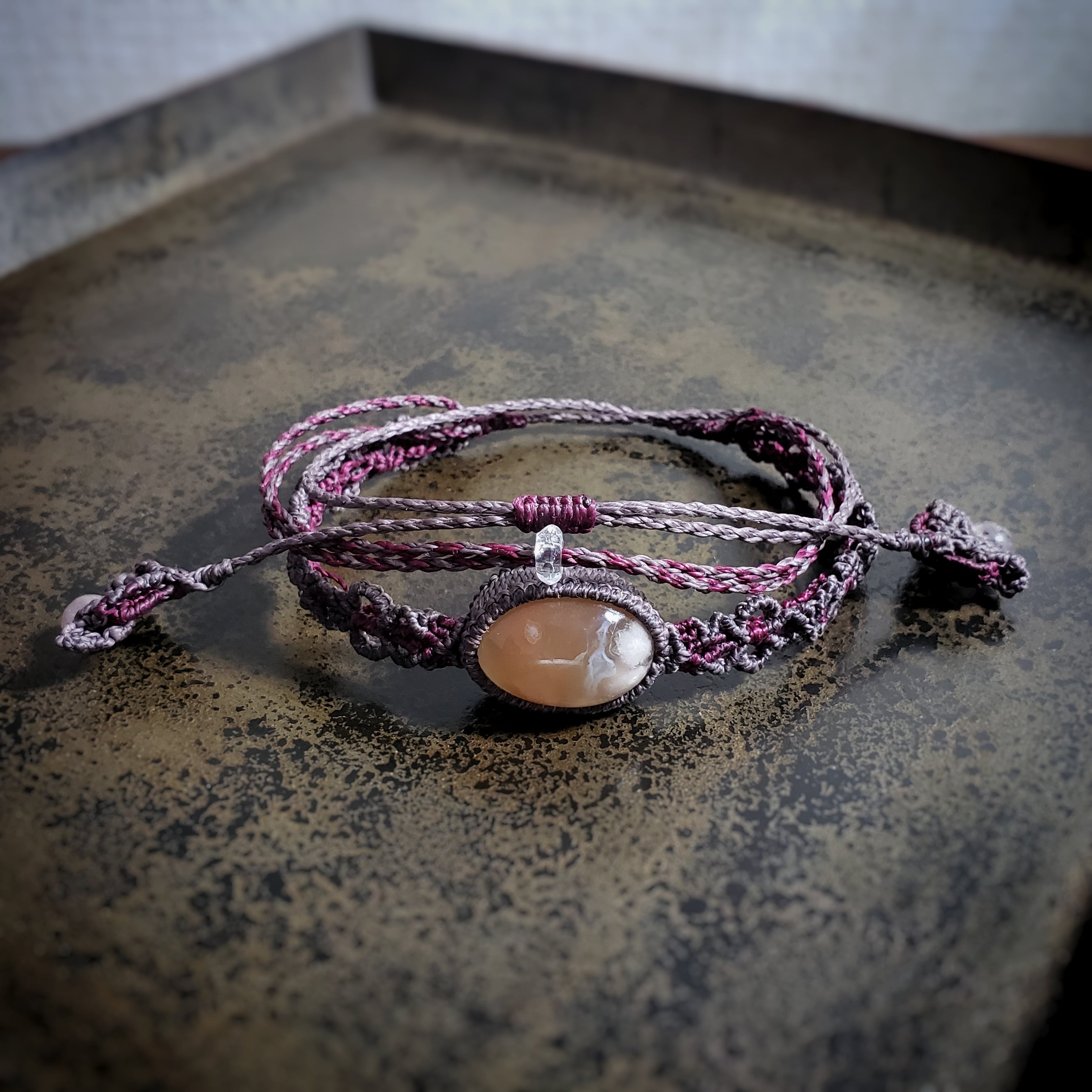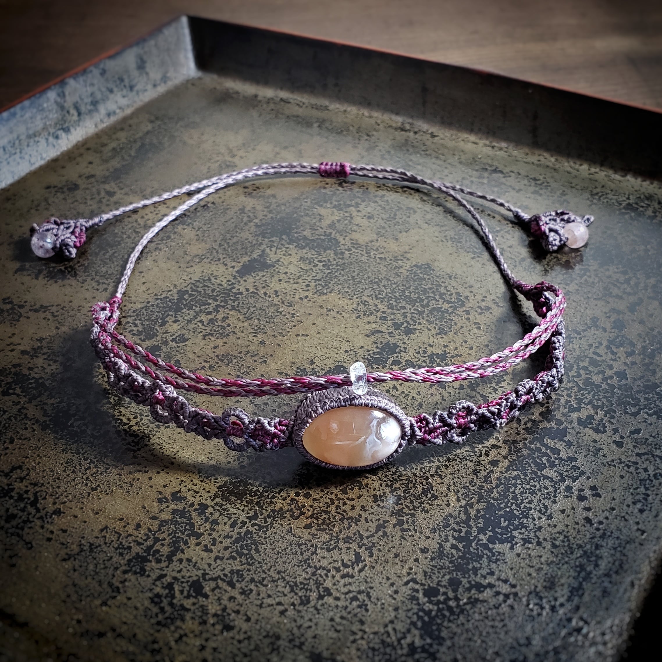 3・・・チャロアイトとレインボームーンストーンのマクラメ編みネックレス¥16264