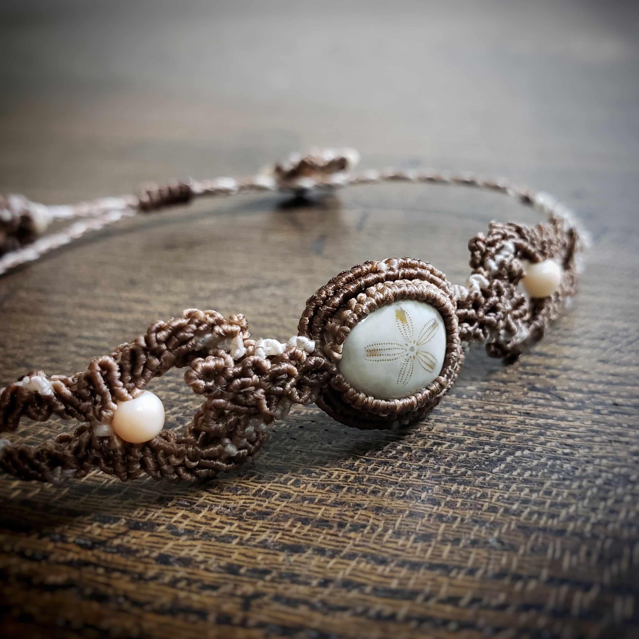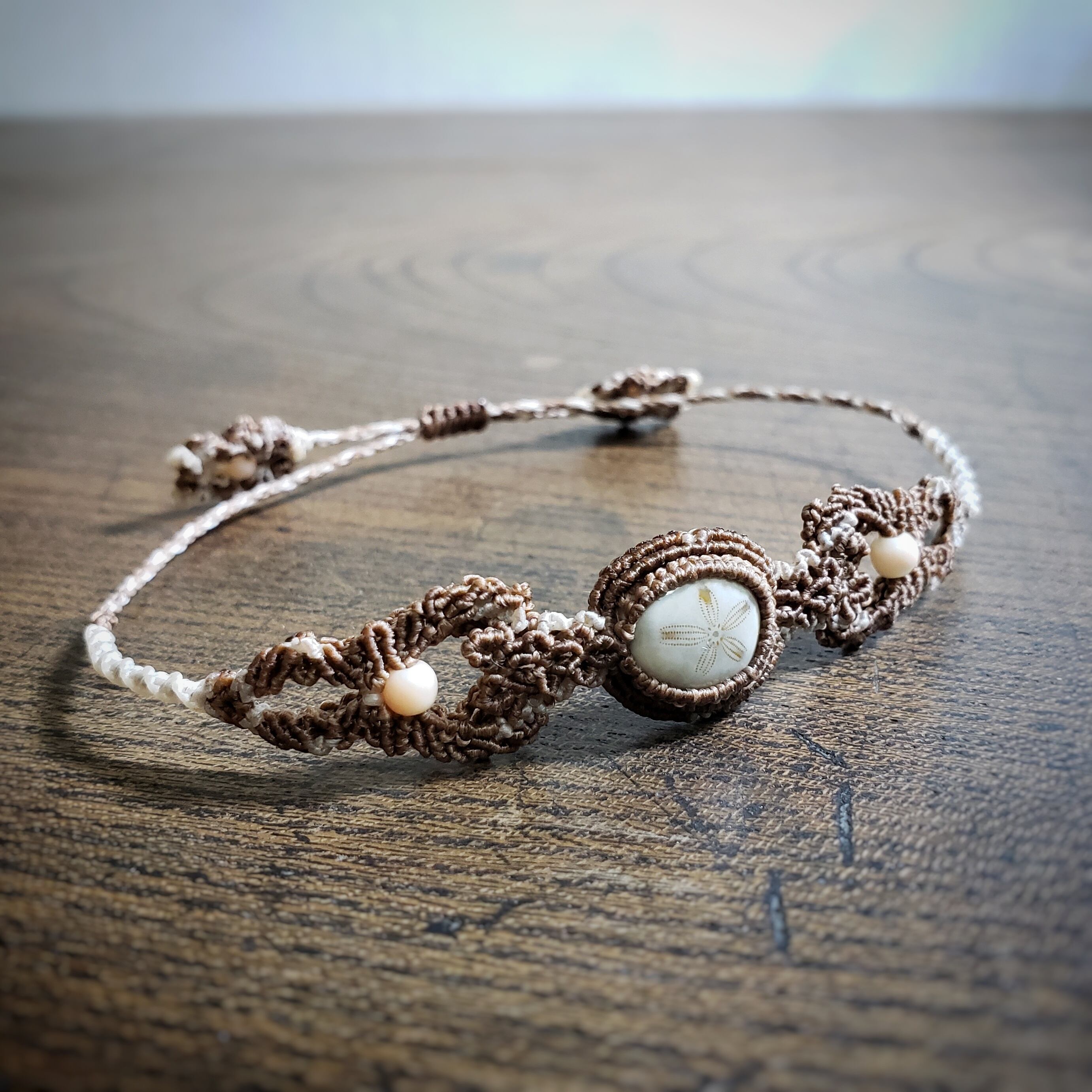 こちらは、これからの季節!夏に身に付けたくなる可愛いブレスレット( #●´艸`)「スカシカシパン」のマクラメ編みブレスレットです。