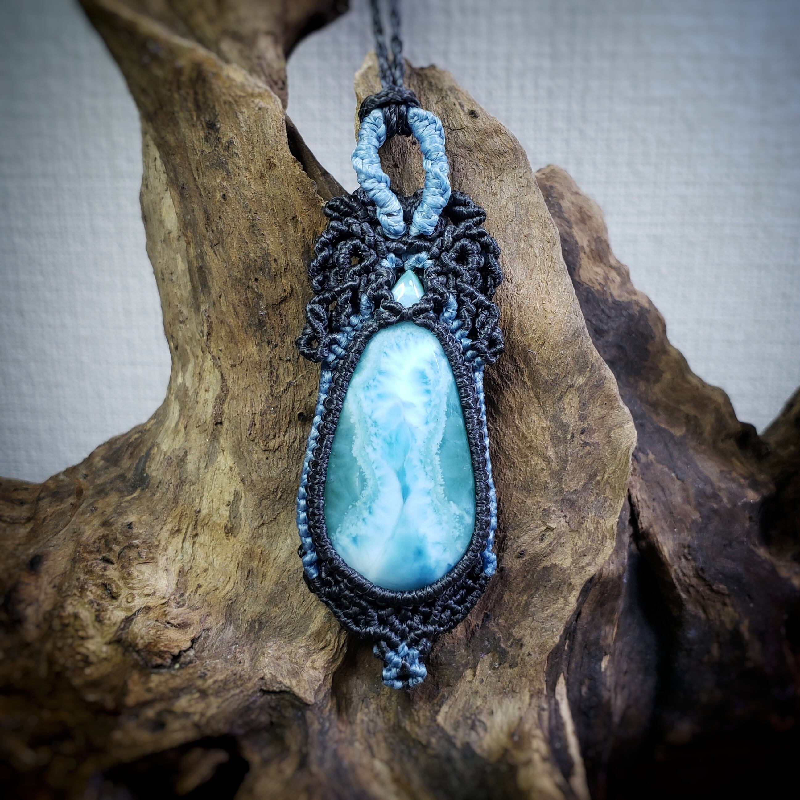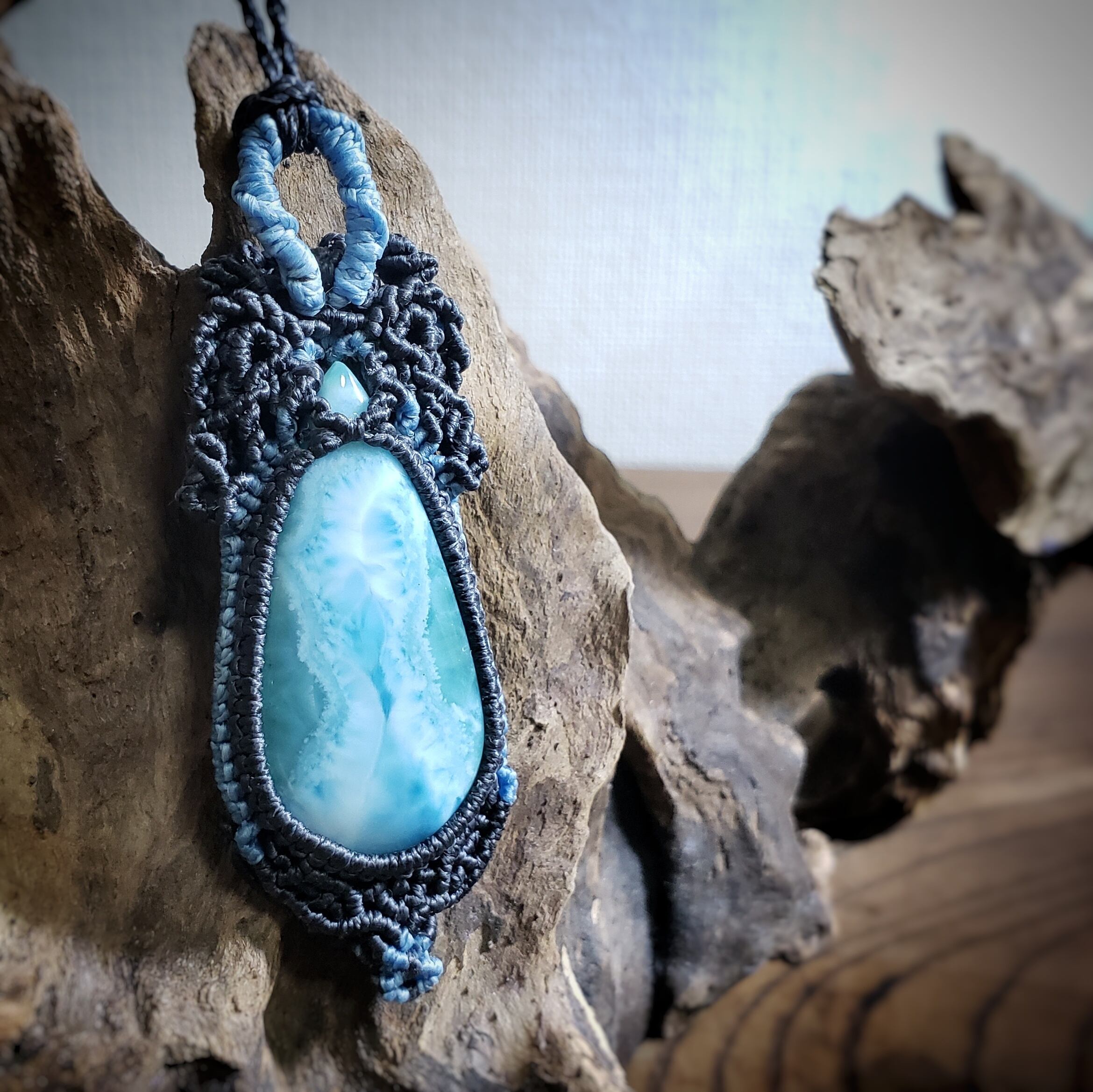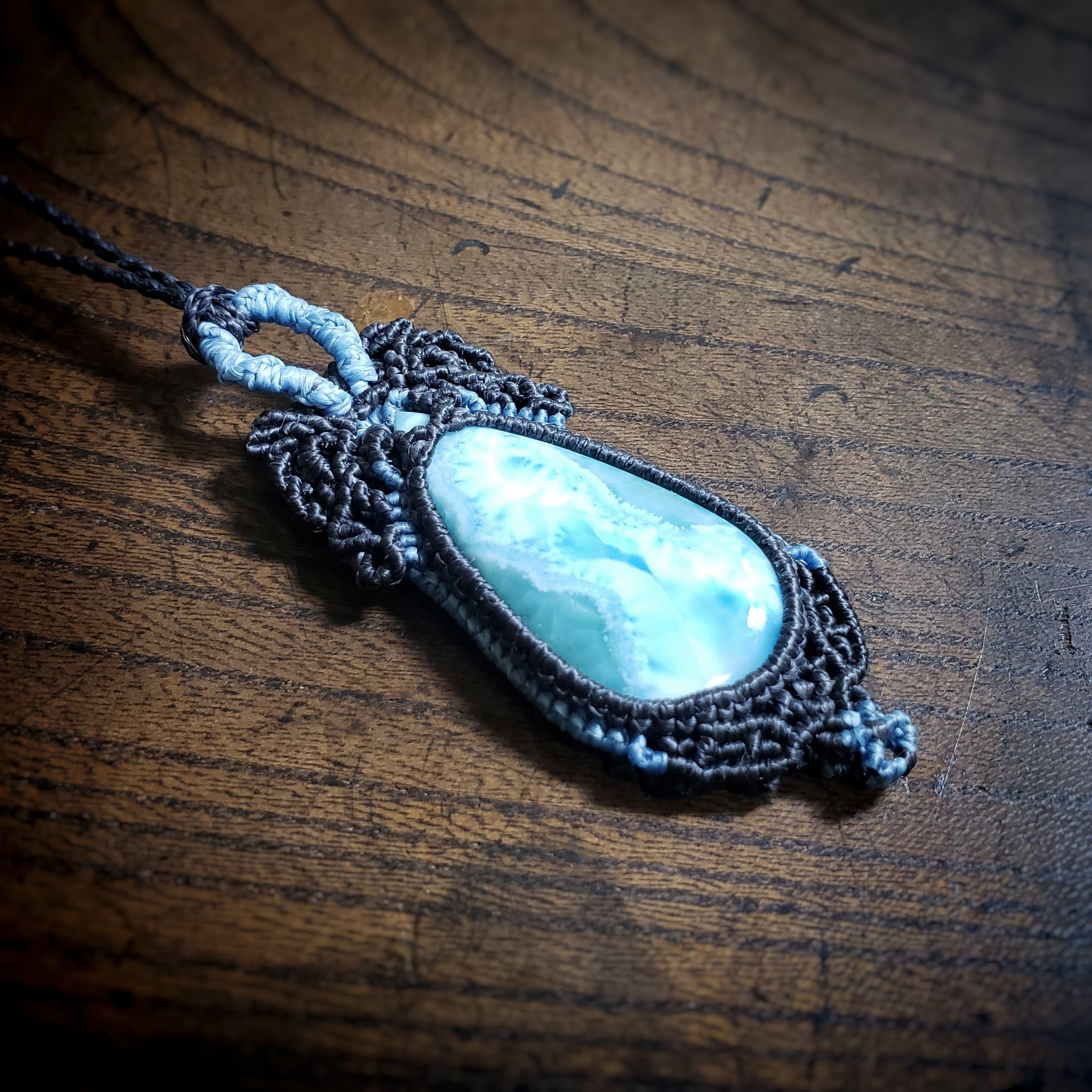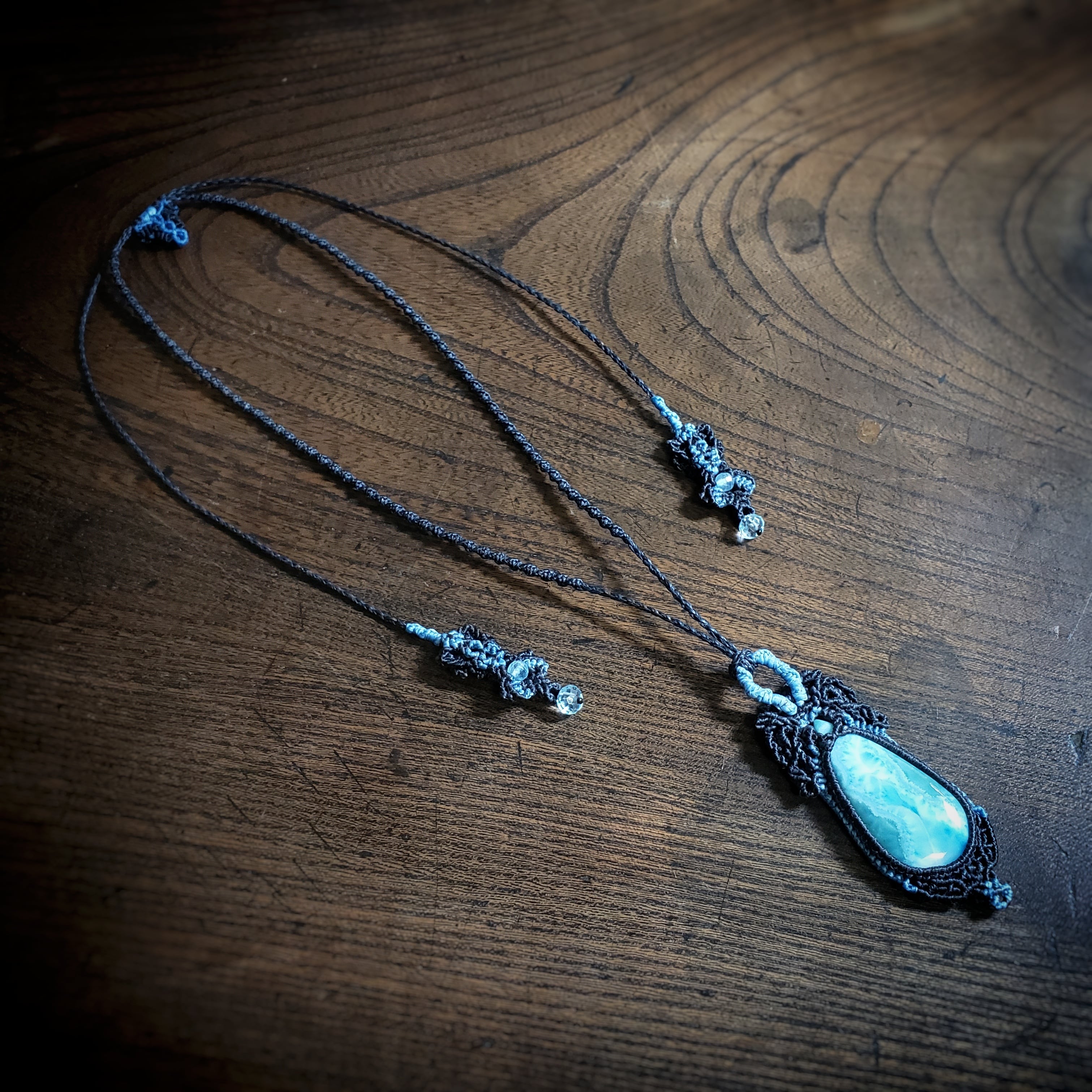 夜の海 「ラリマー」マクラメ編みネックレス