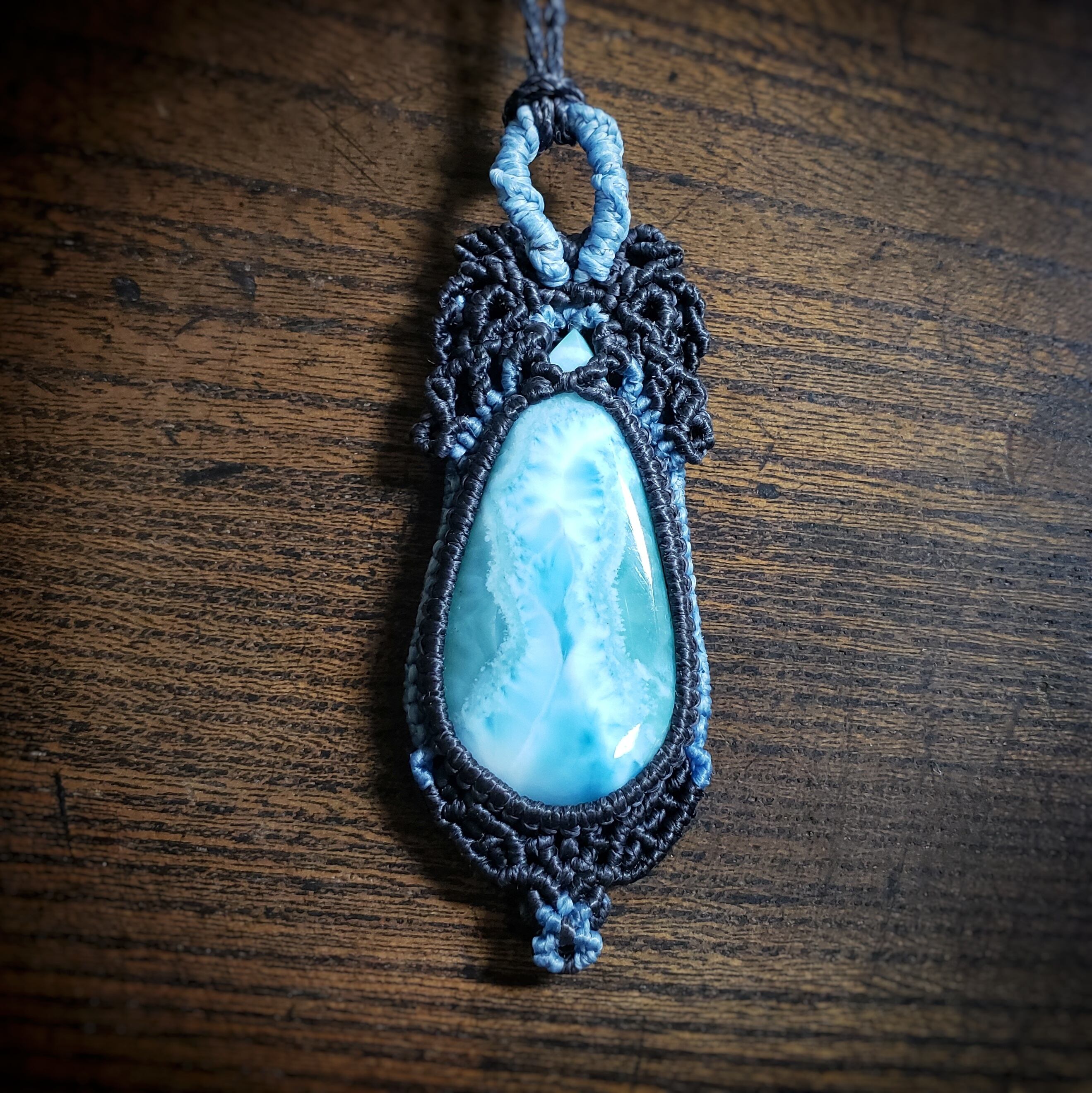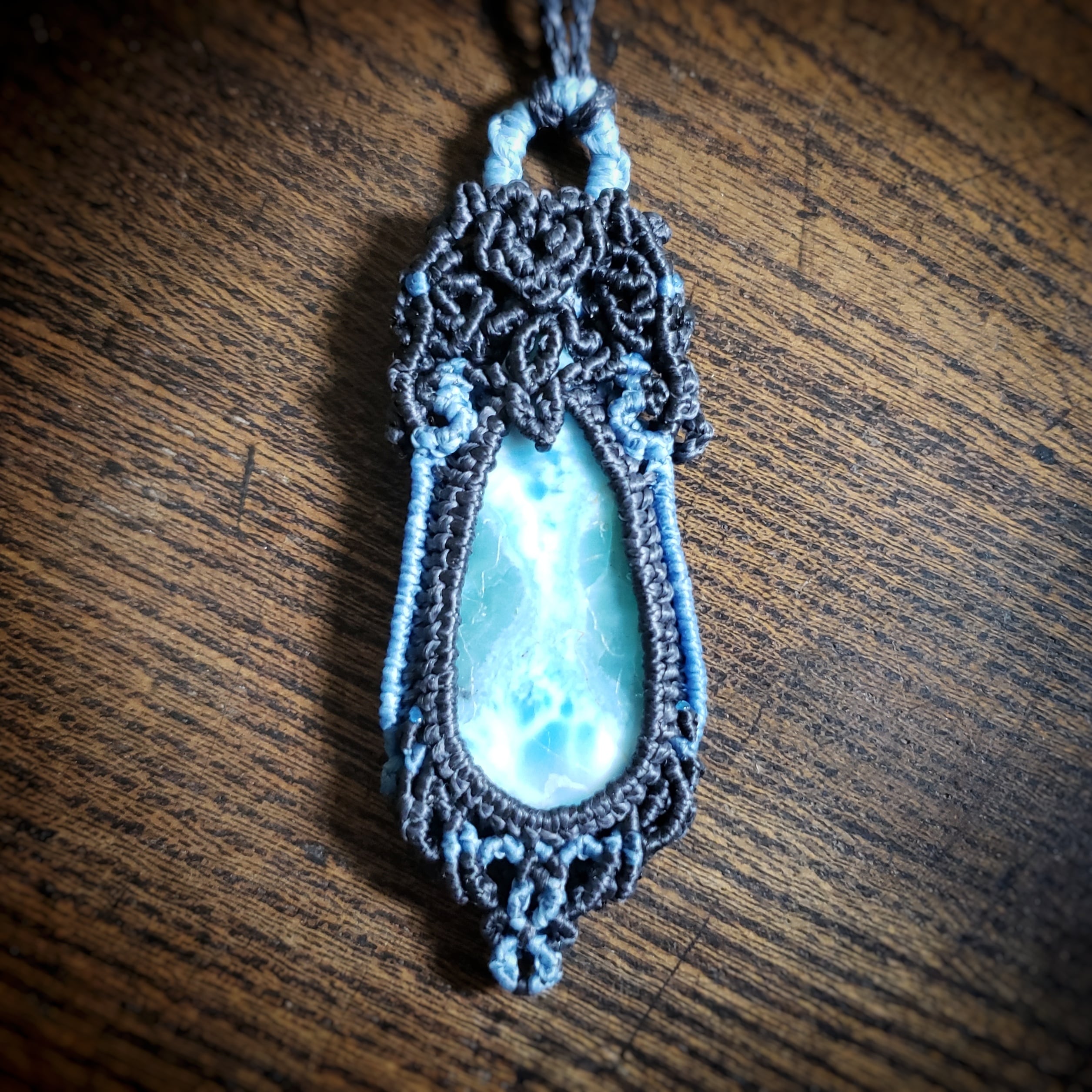 こちらは、「ラリマー」マクラメ編みネックレスです。