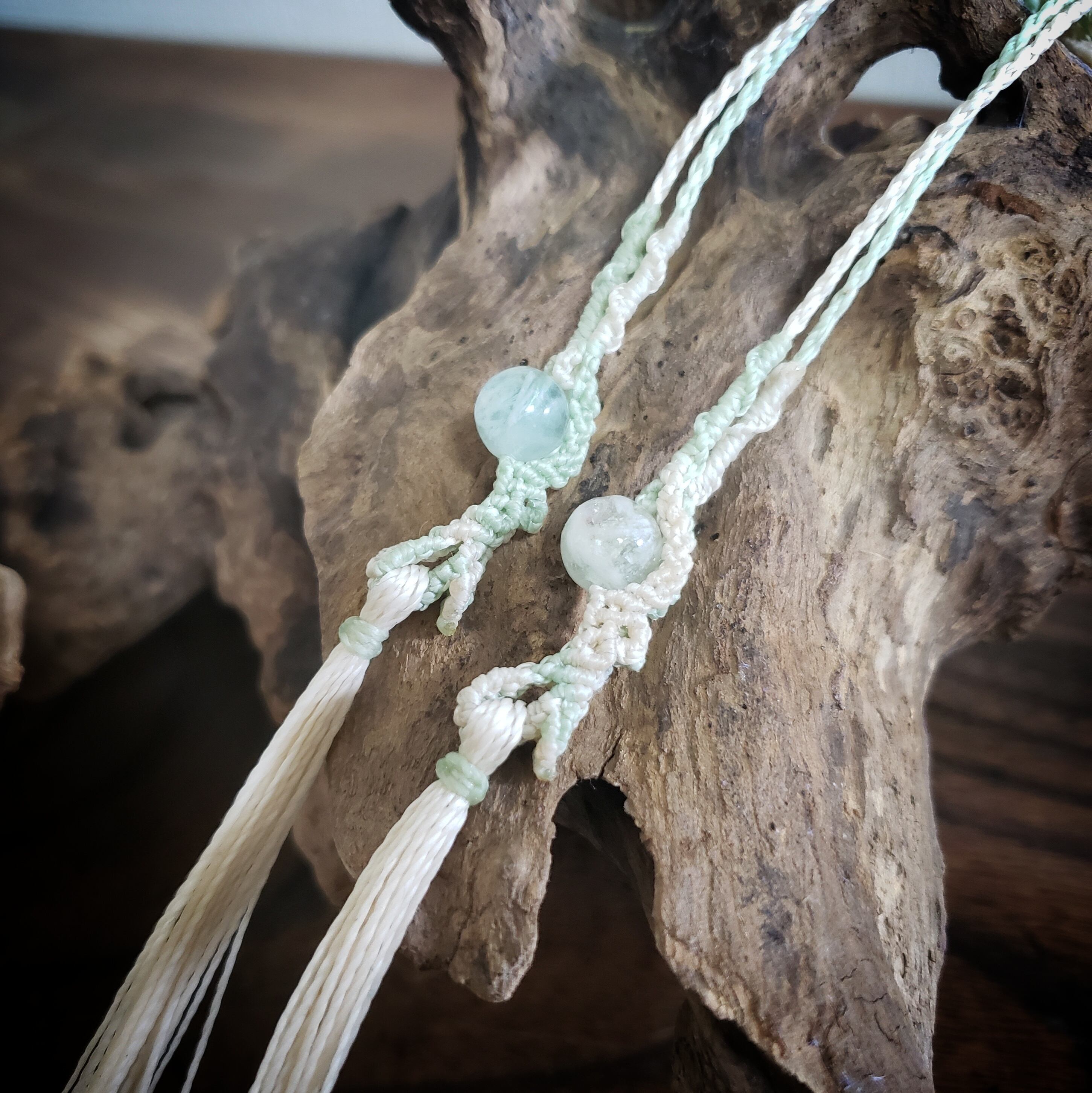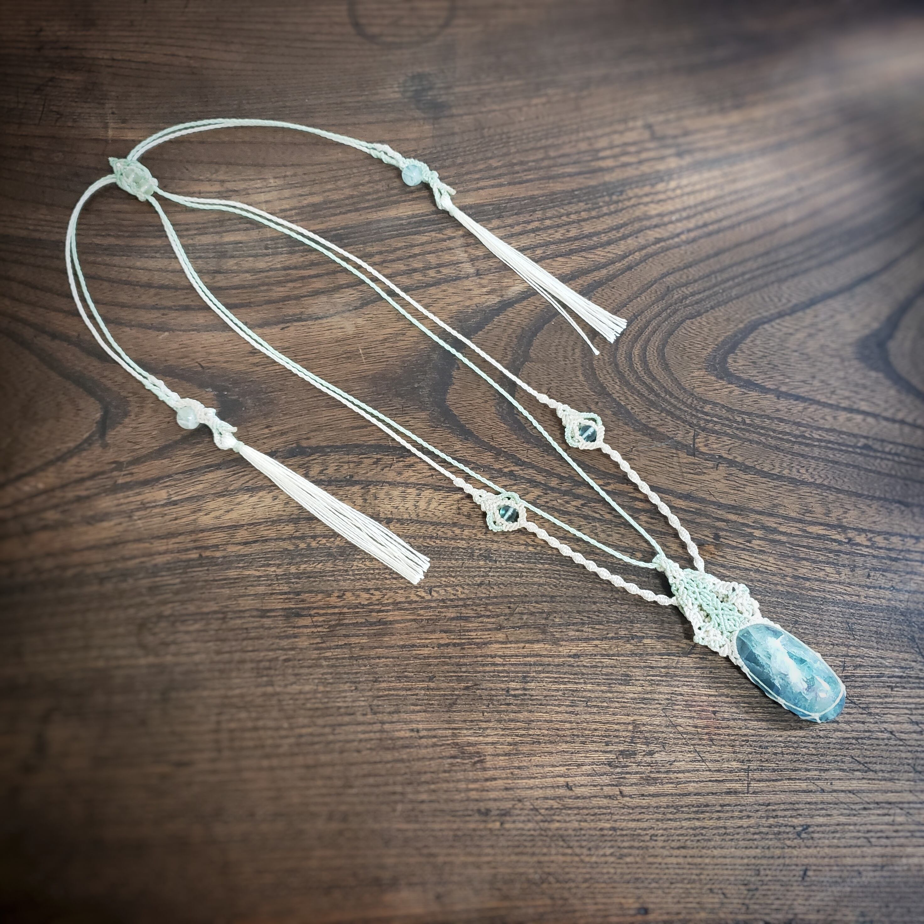 「エンジェルフェザーフローライト 」のマクラメ編みネックレス