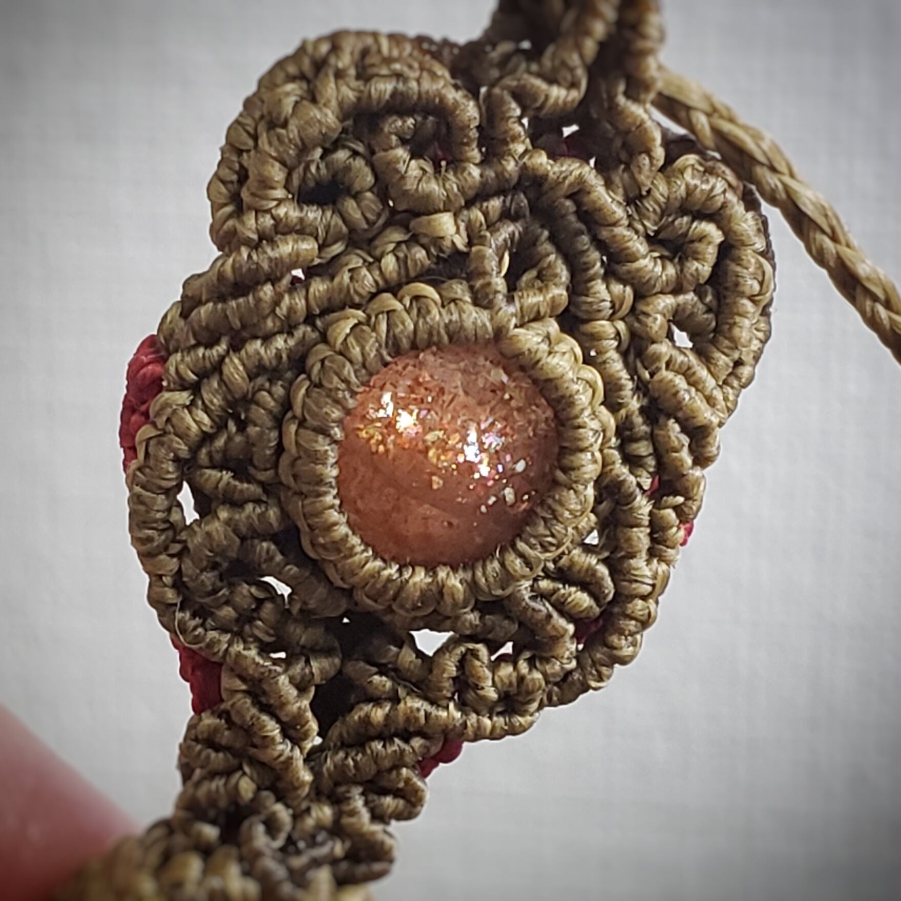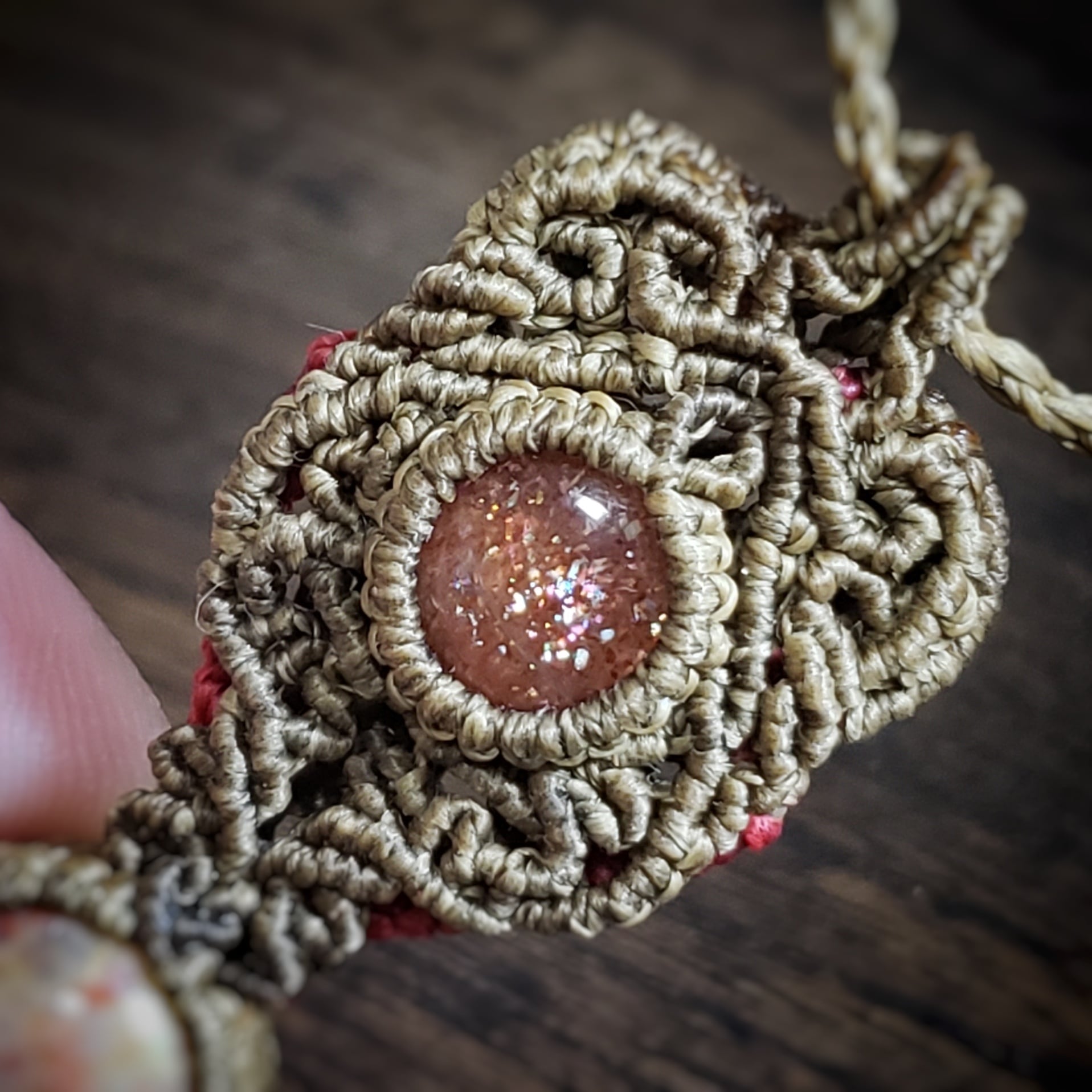 「サンストーン」と「フォッシルコーラル」 のマクラメ編み首飾り