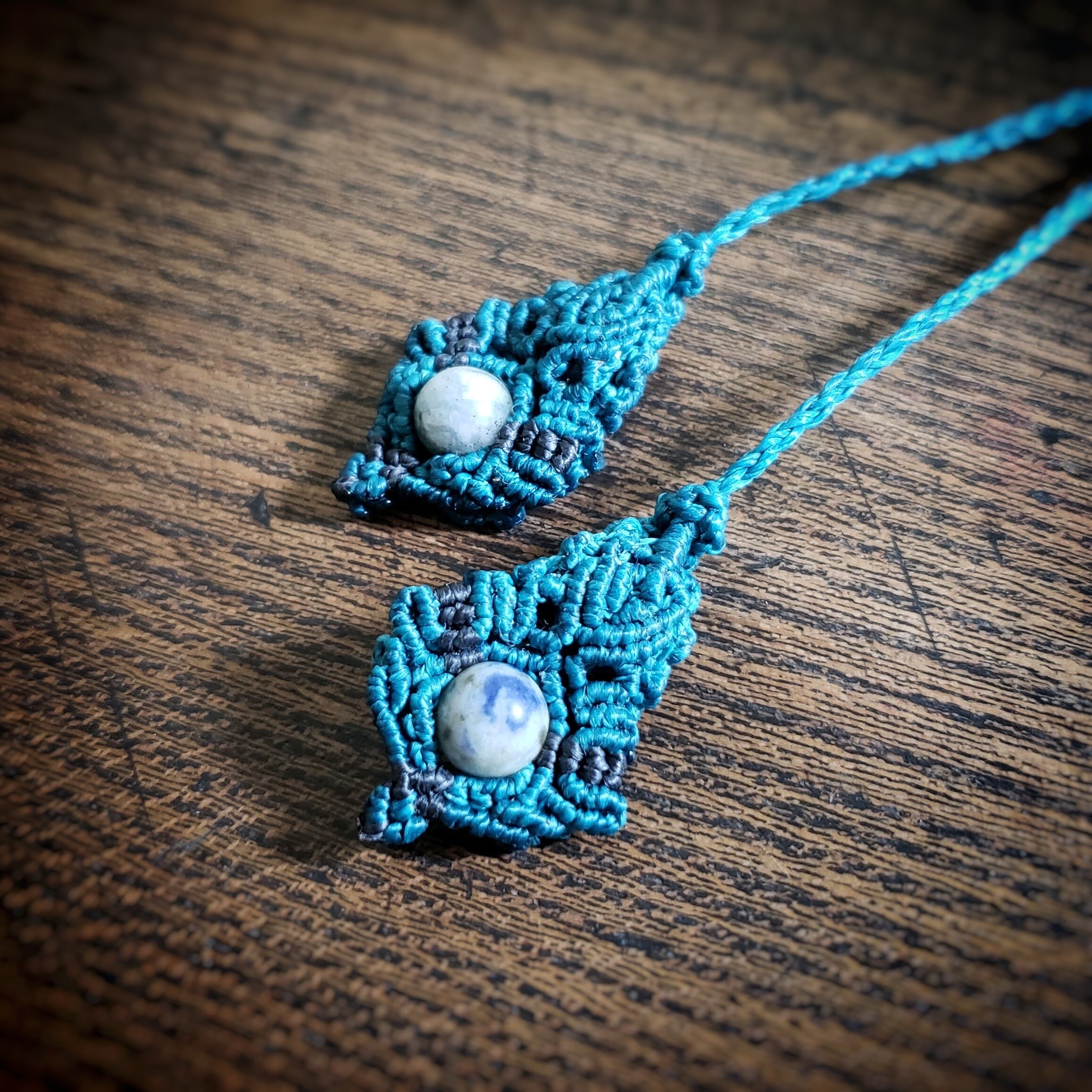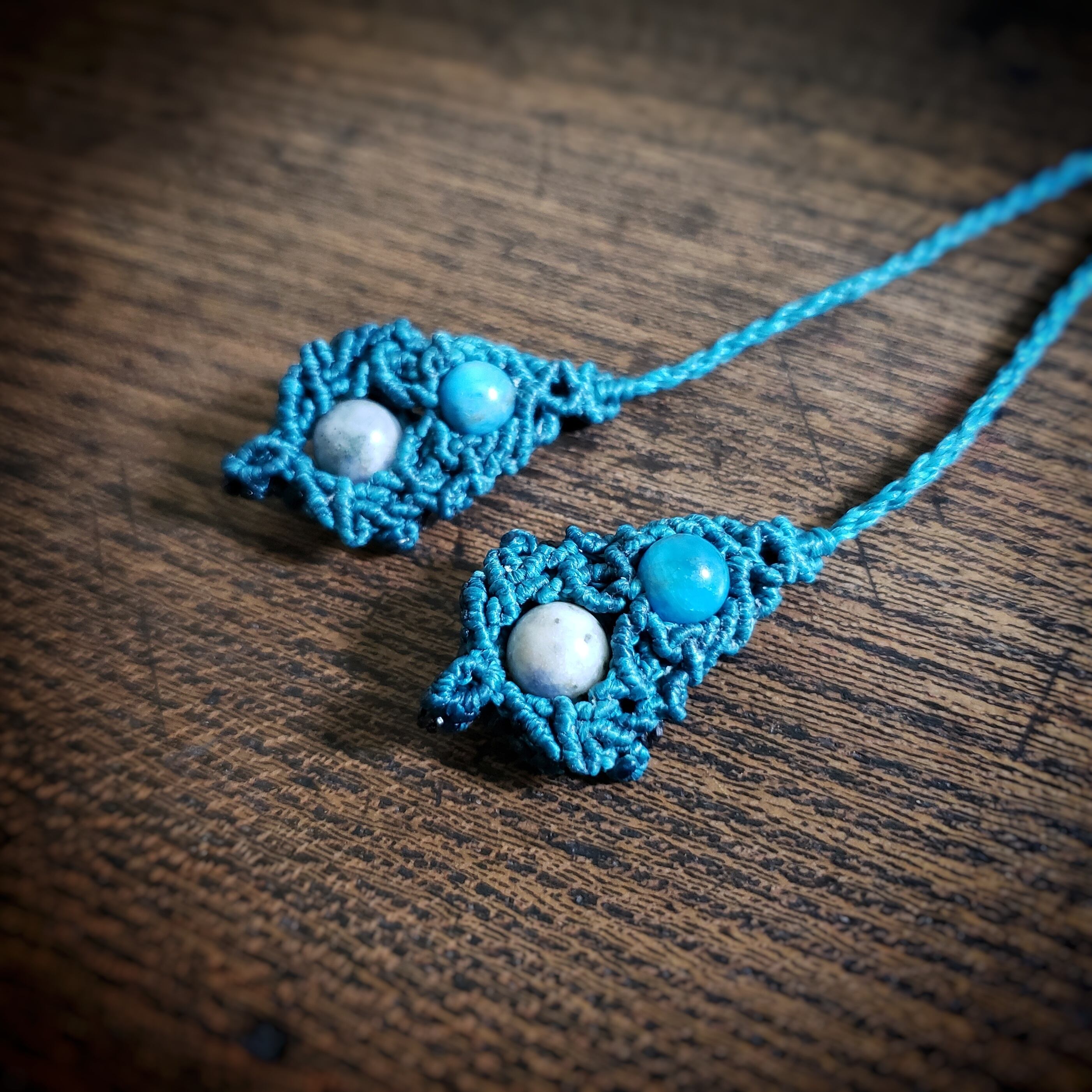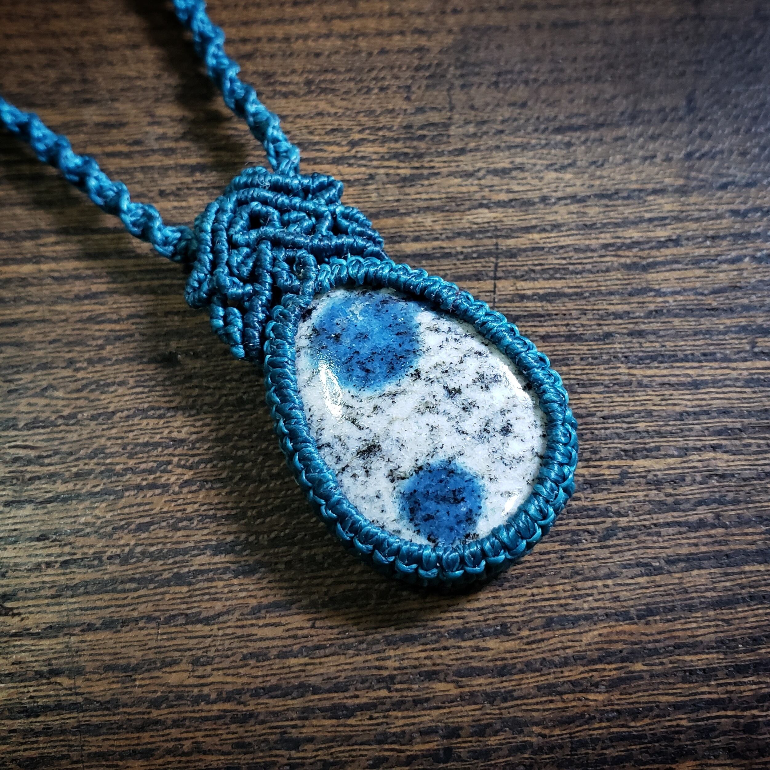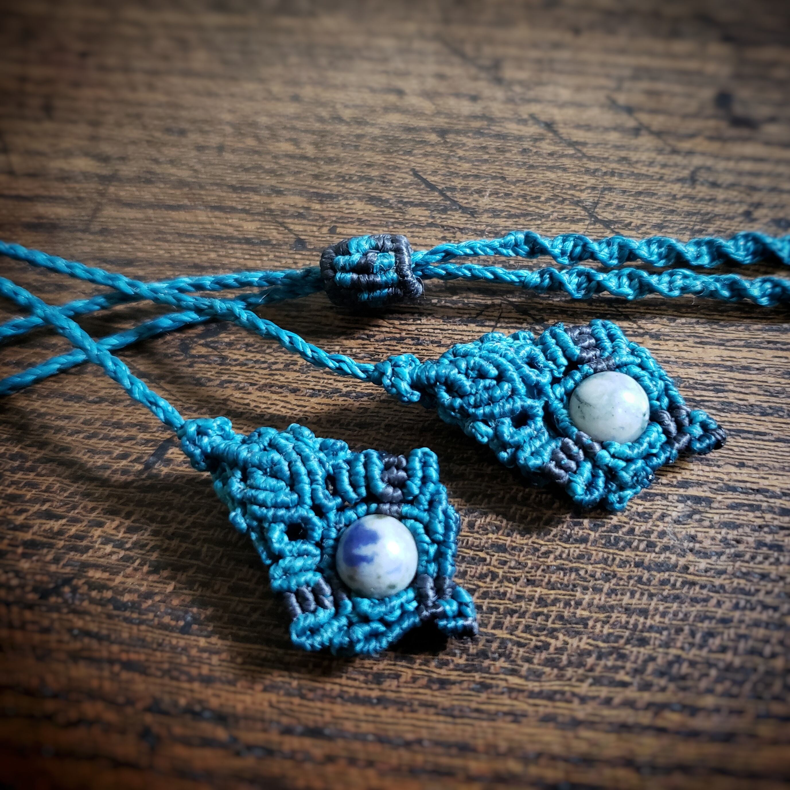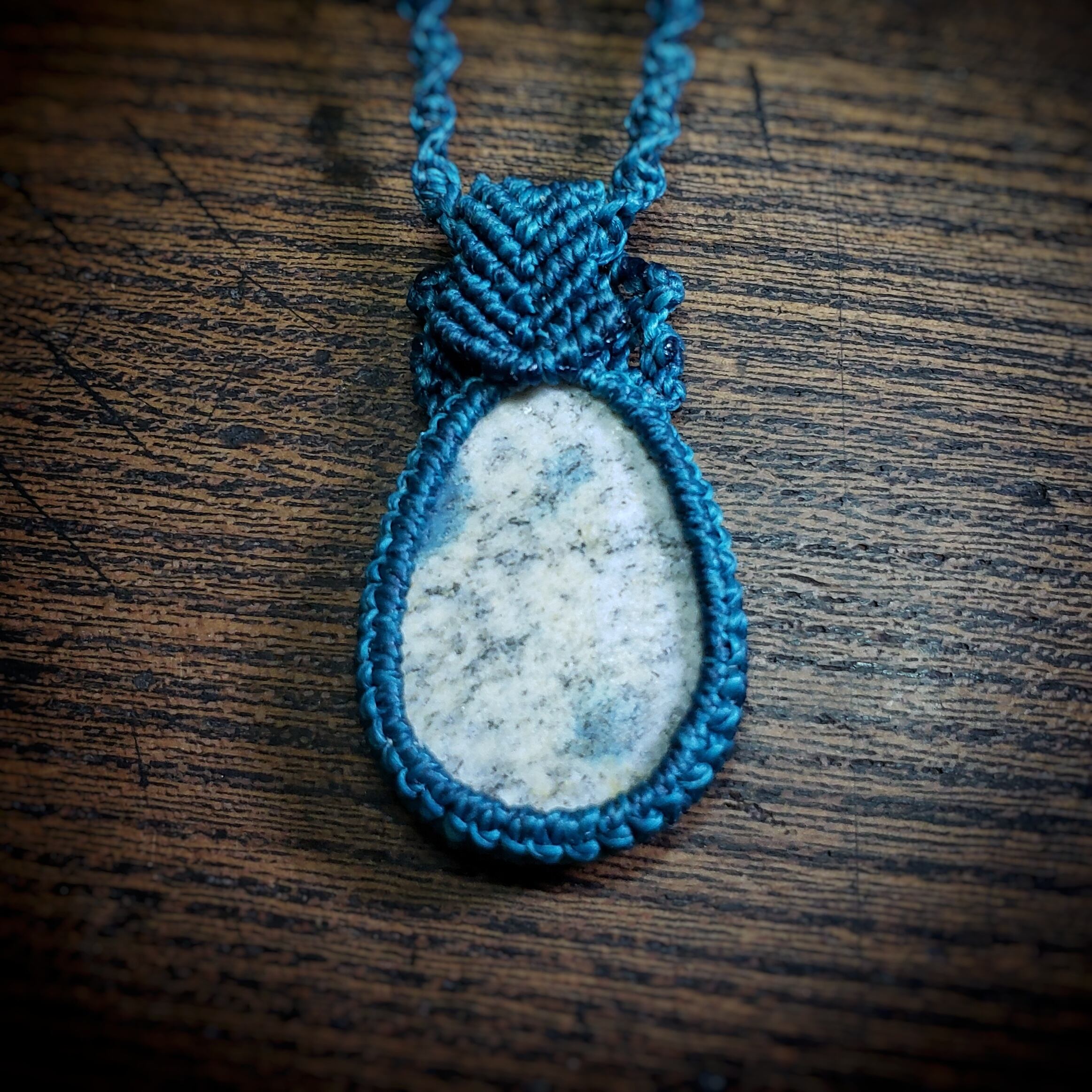 こちらは、「k2アズライト」のマクラメ編みネックレスです。
