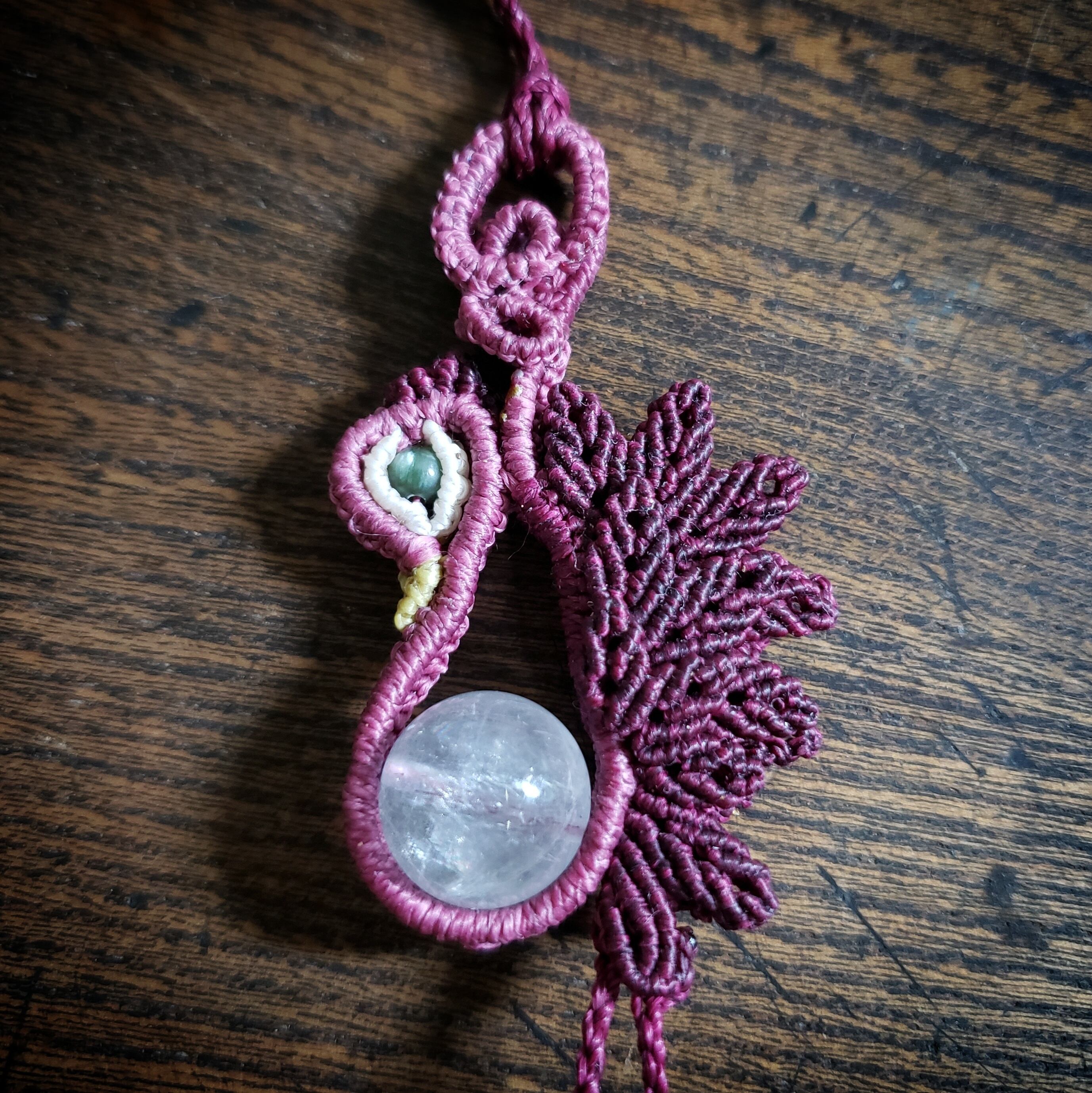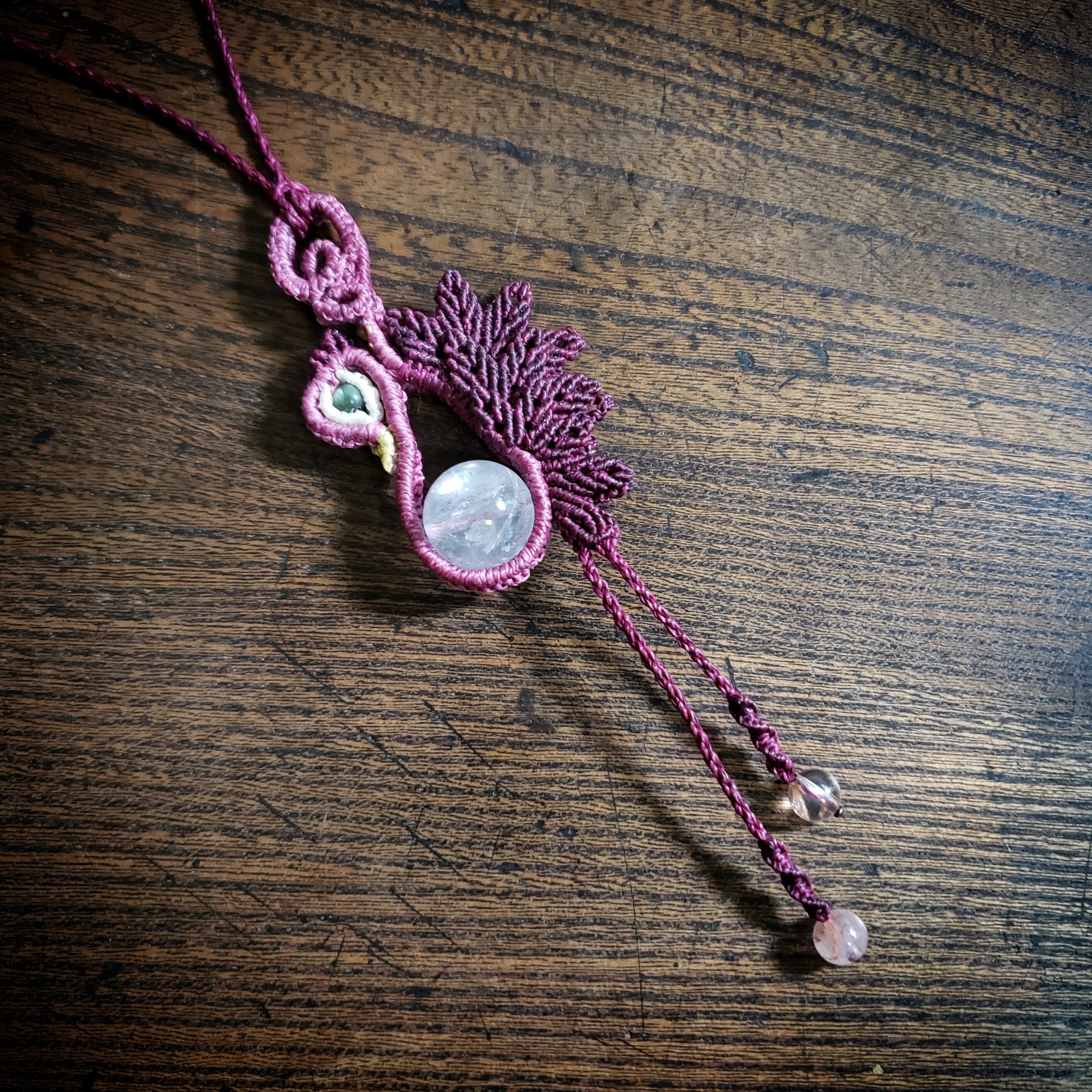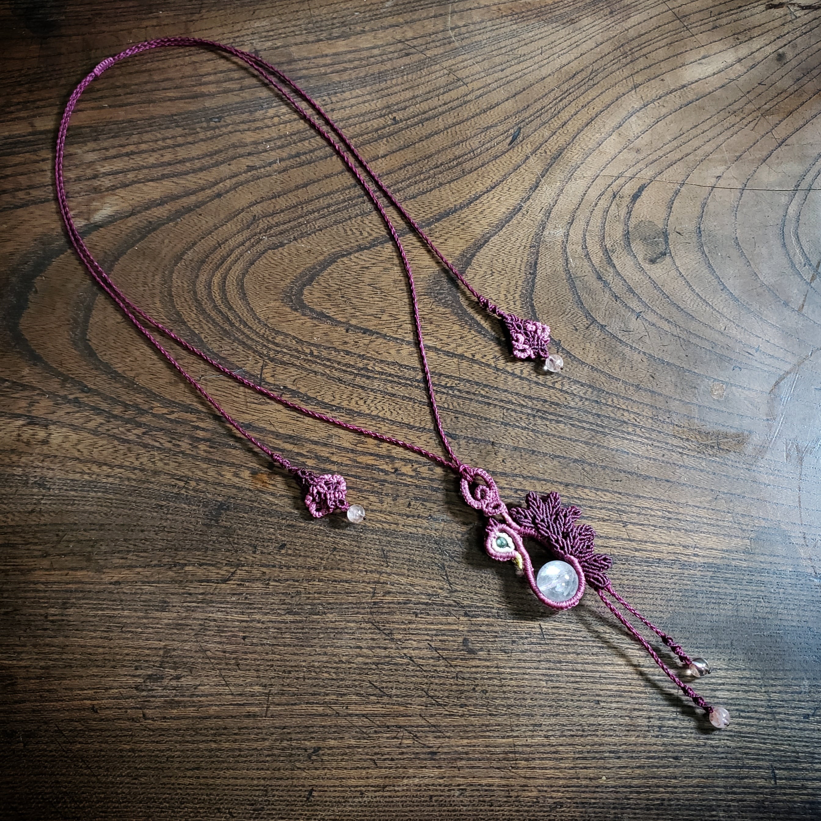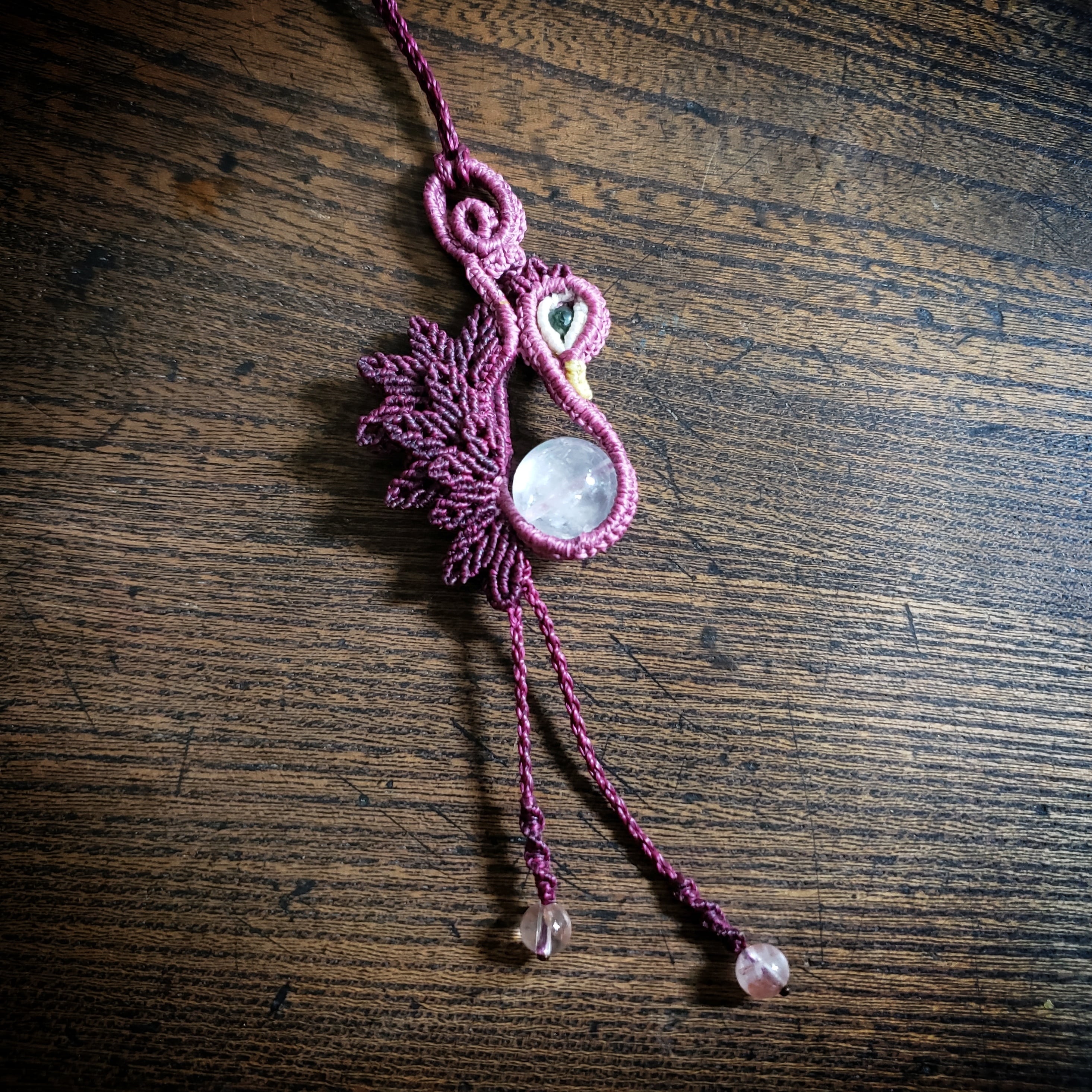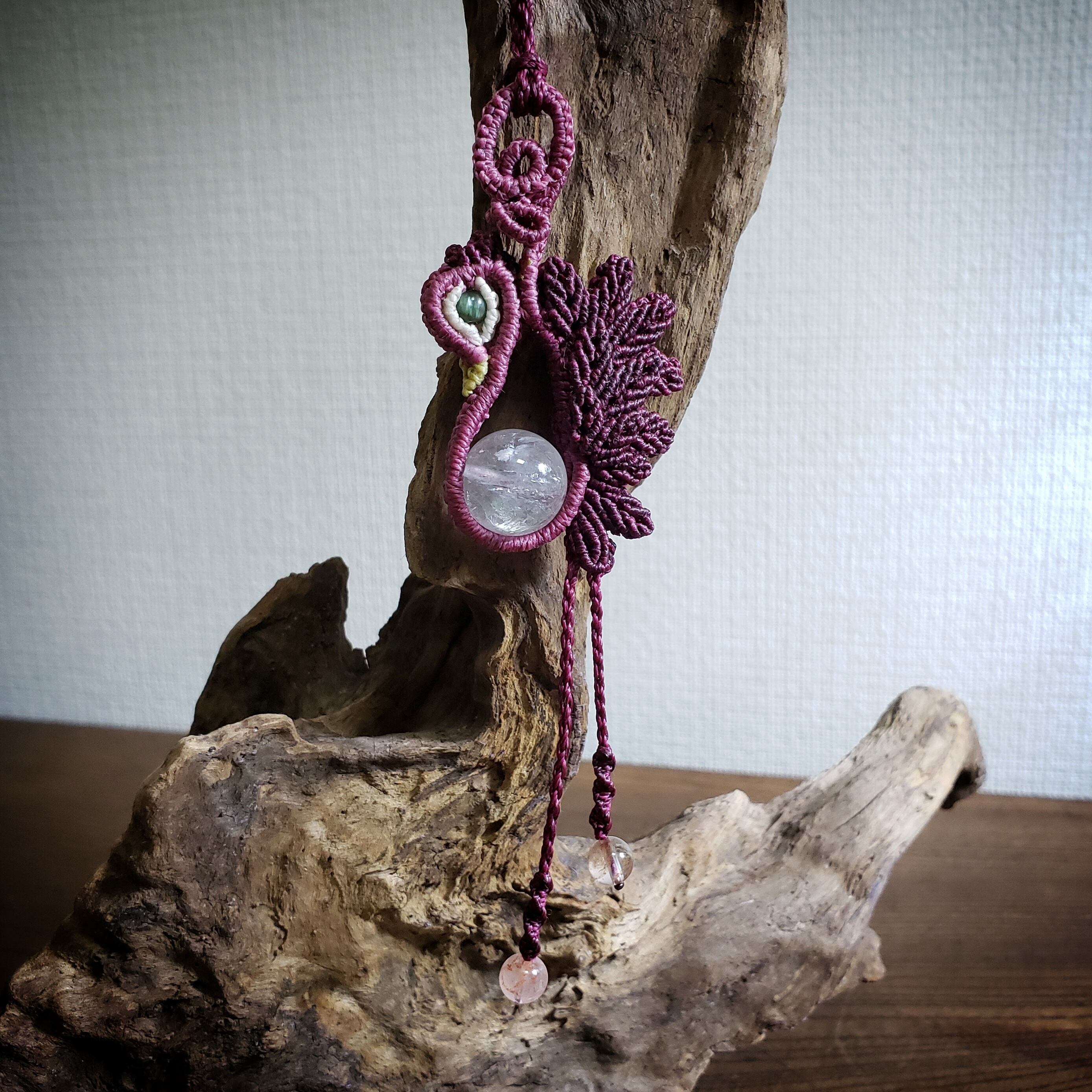こちらは、「アイリスアメシスト」鳥デザインのマクラメ編みネックレスです。