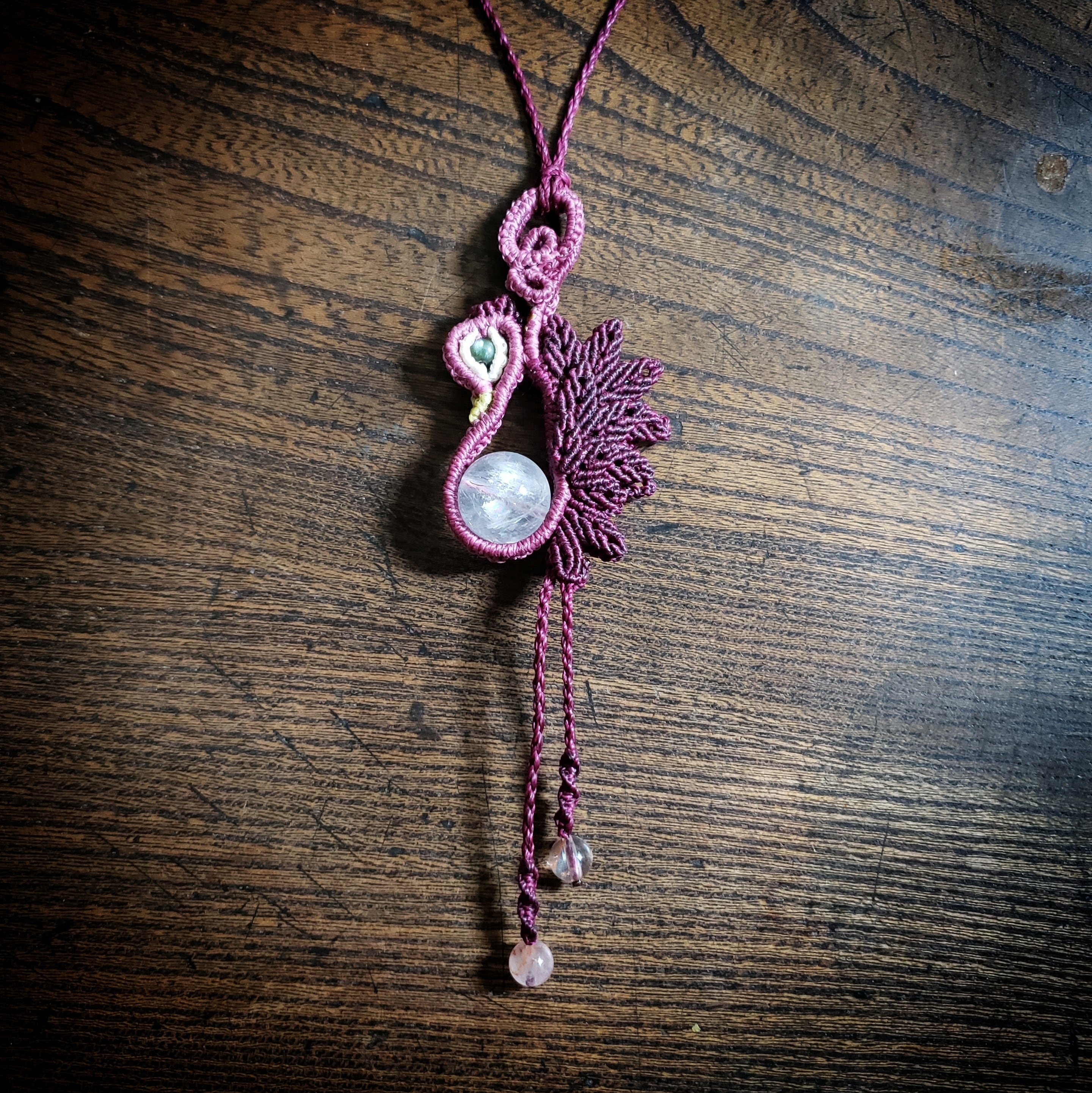 「アイリスラベンダーアメジスト」鳥デザイン マクラメ編みネックレス