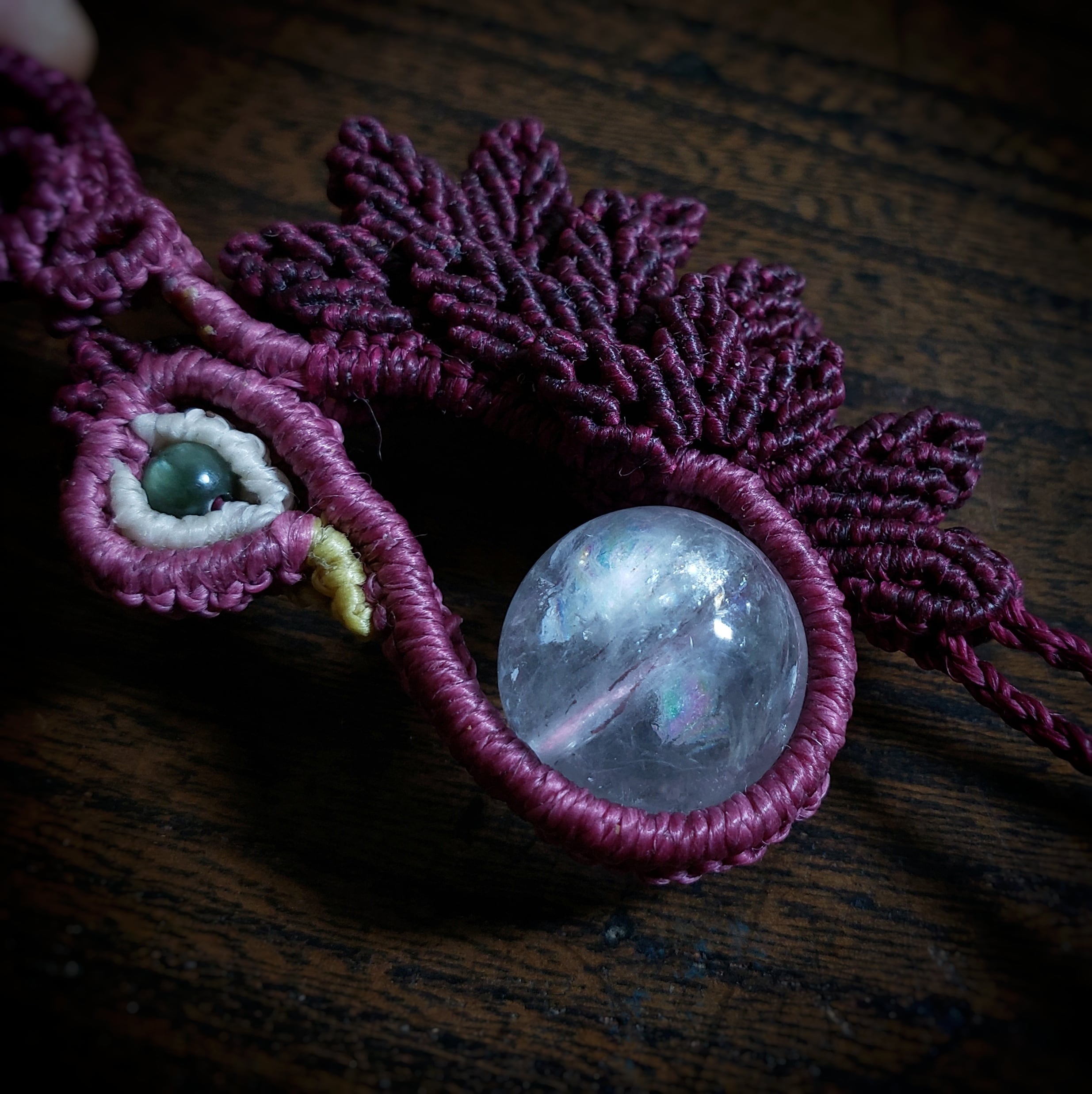 *マクラメ編みは、糸処理の際に火で焼き留めます。色が濃くなっているところがありますので、気になる方は、ご遠慮ください。
