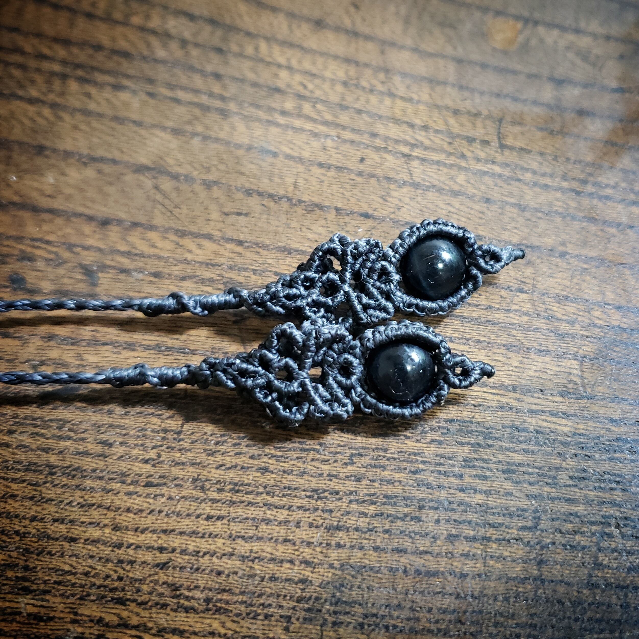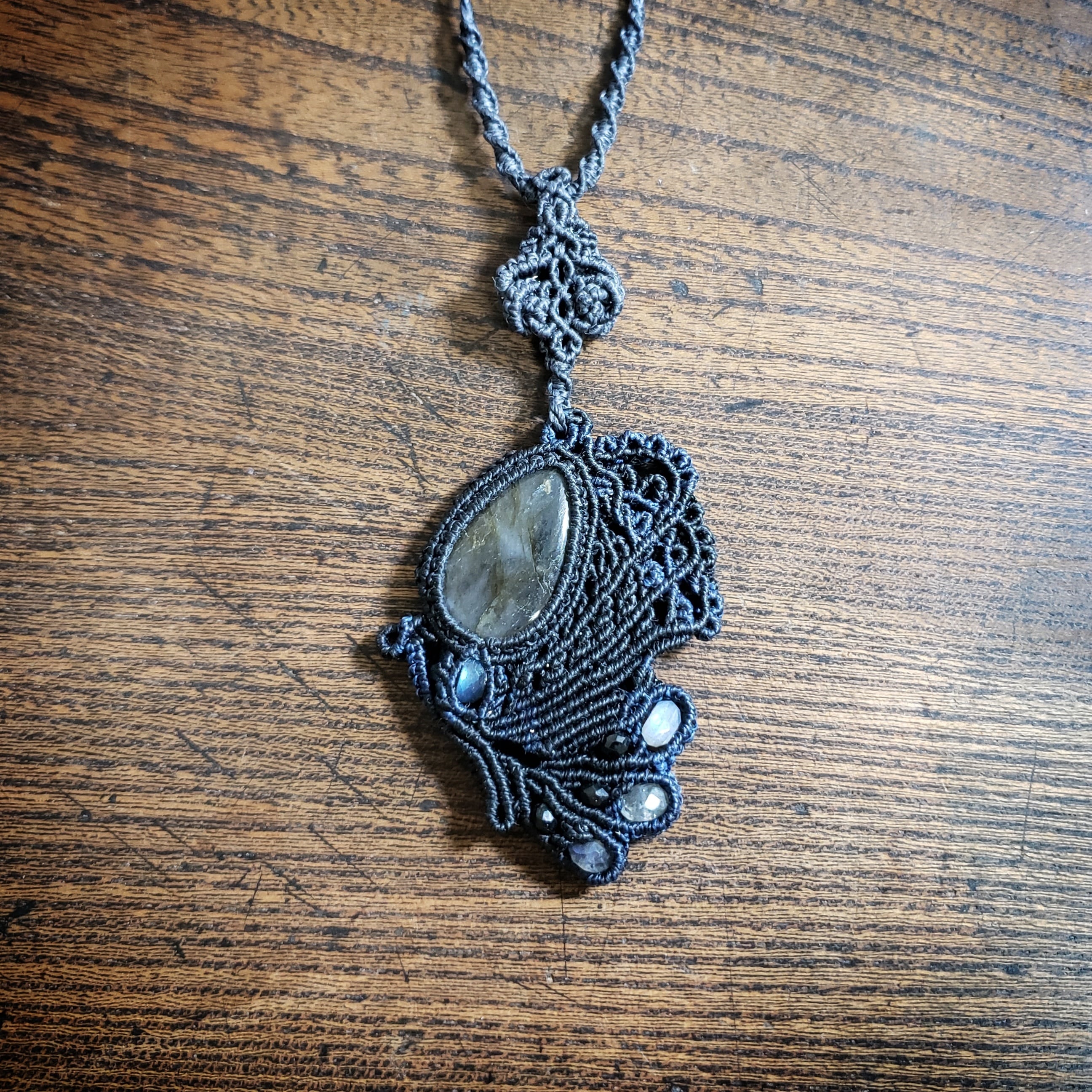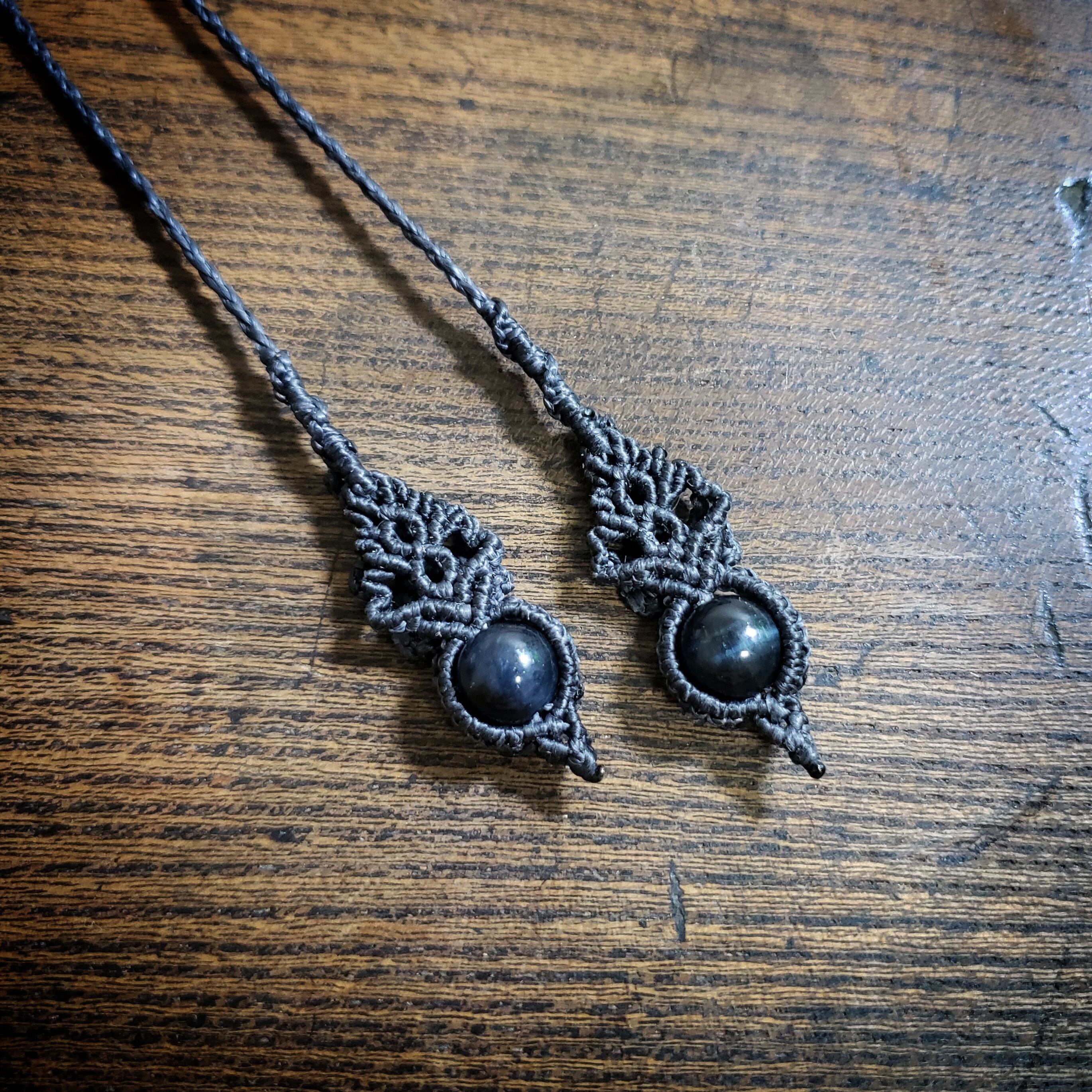 こちらは、ラブラドライトのマクラメ編みネックレスです。