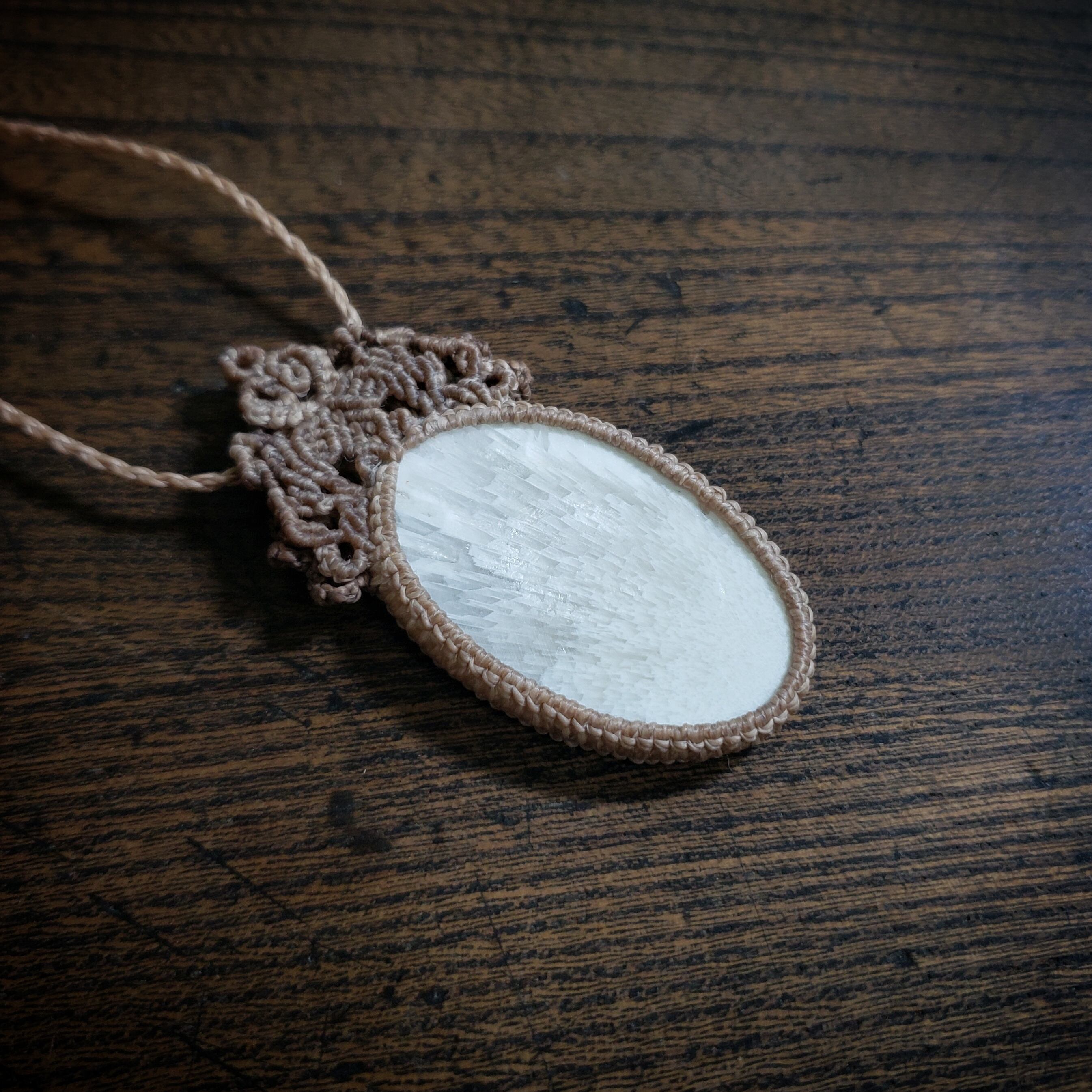 こちらは、「スコレサイト」のマクラメ編みネックレスです。