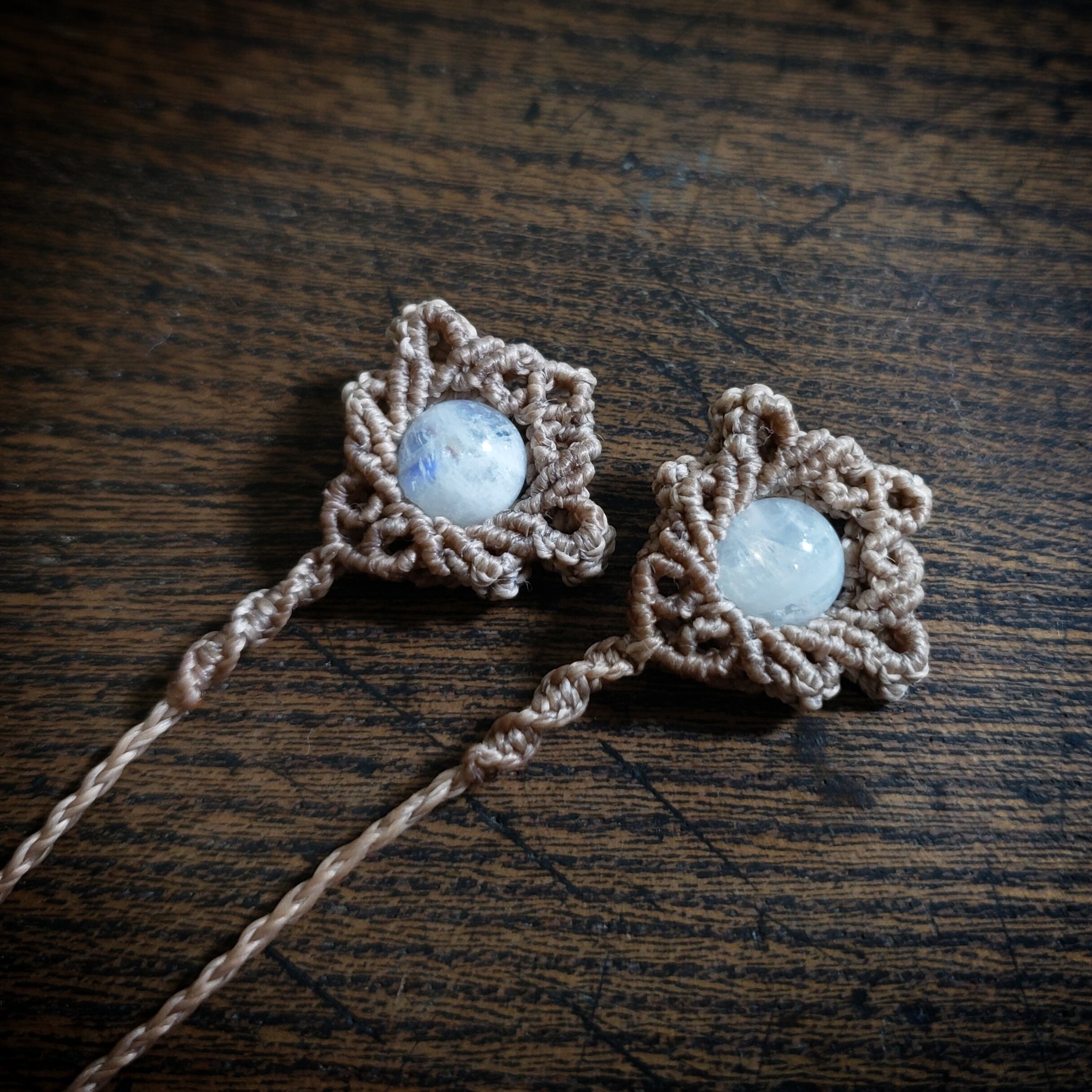 背守りの天然石は、3A+「ブルームーンストーン」 インド産 8ミリ珠2粒。