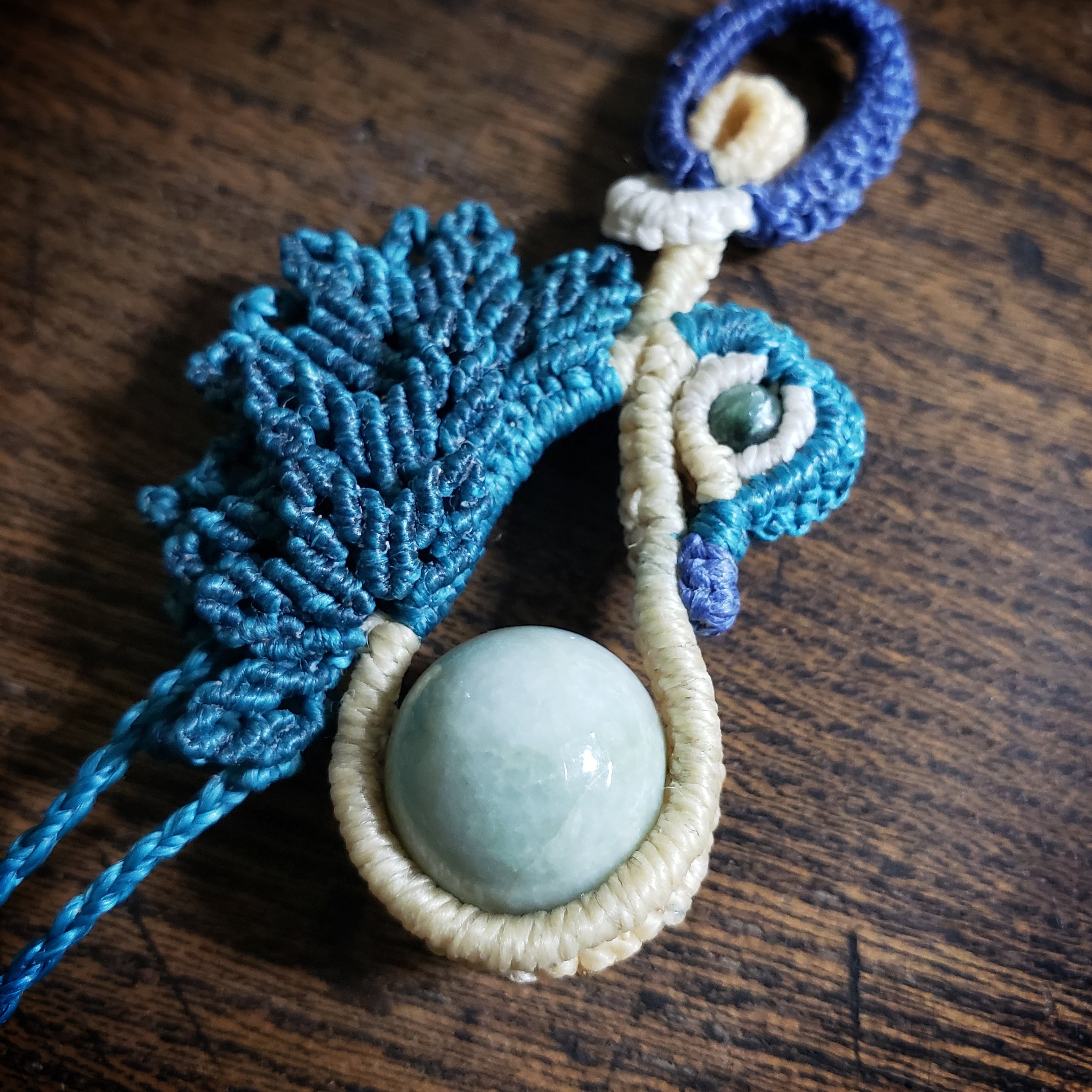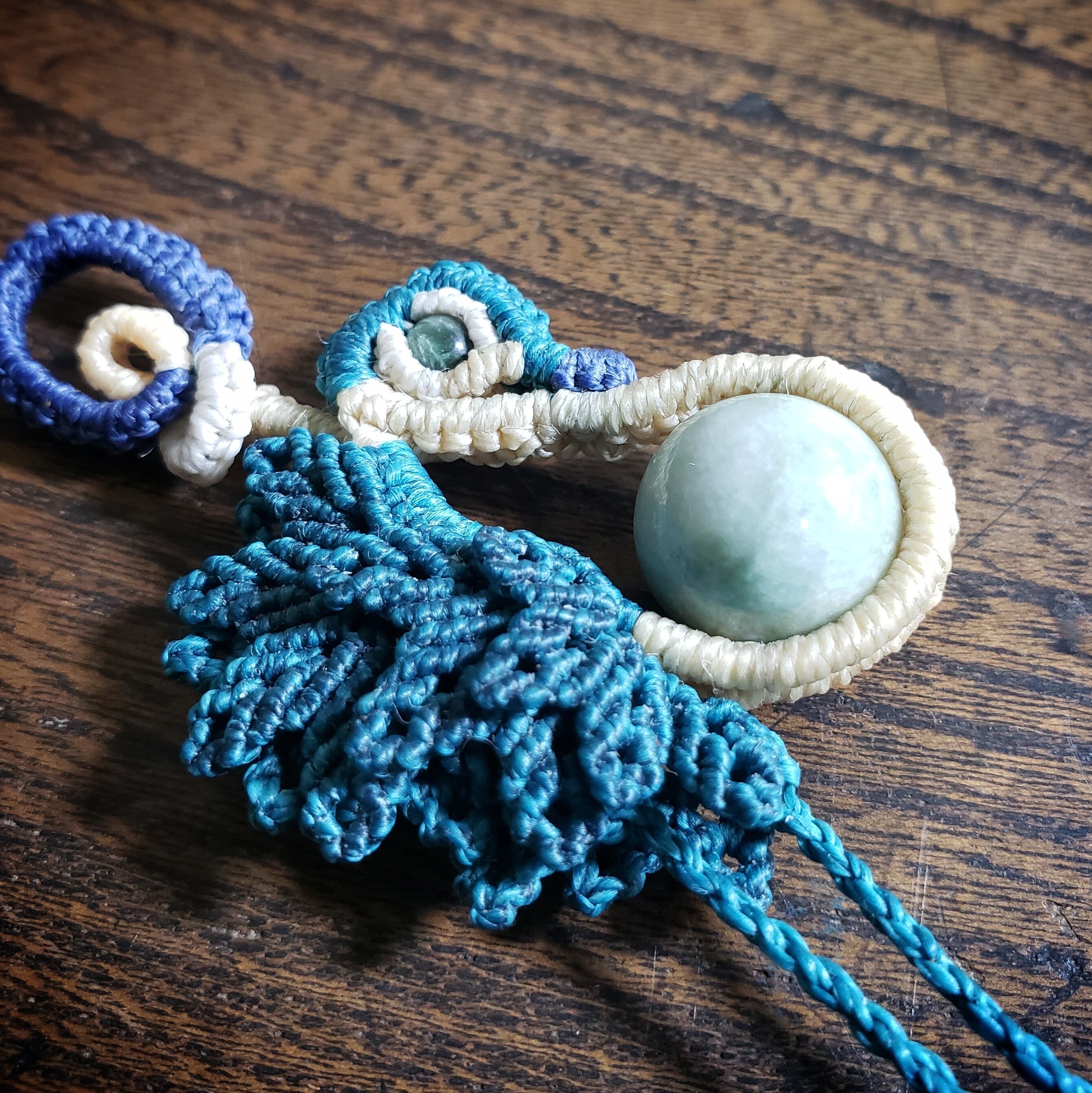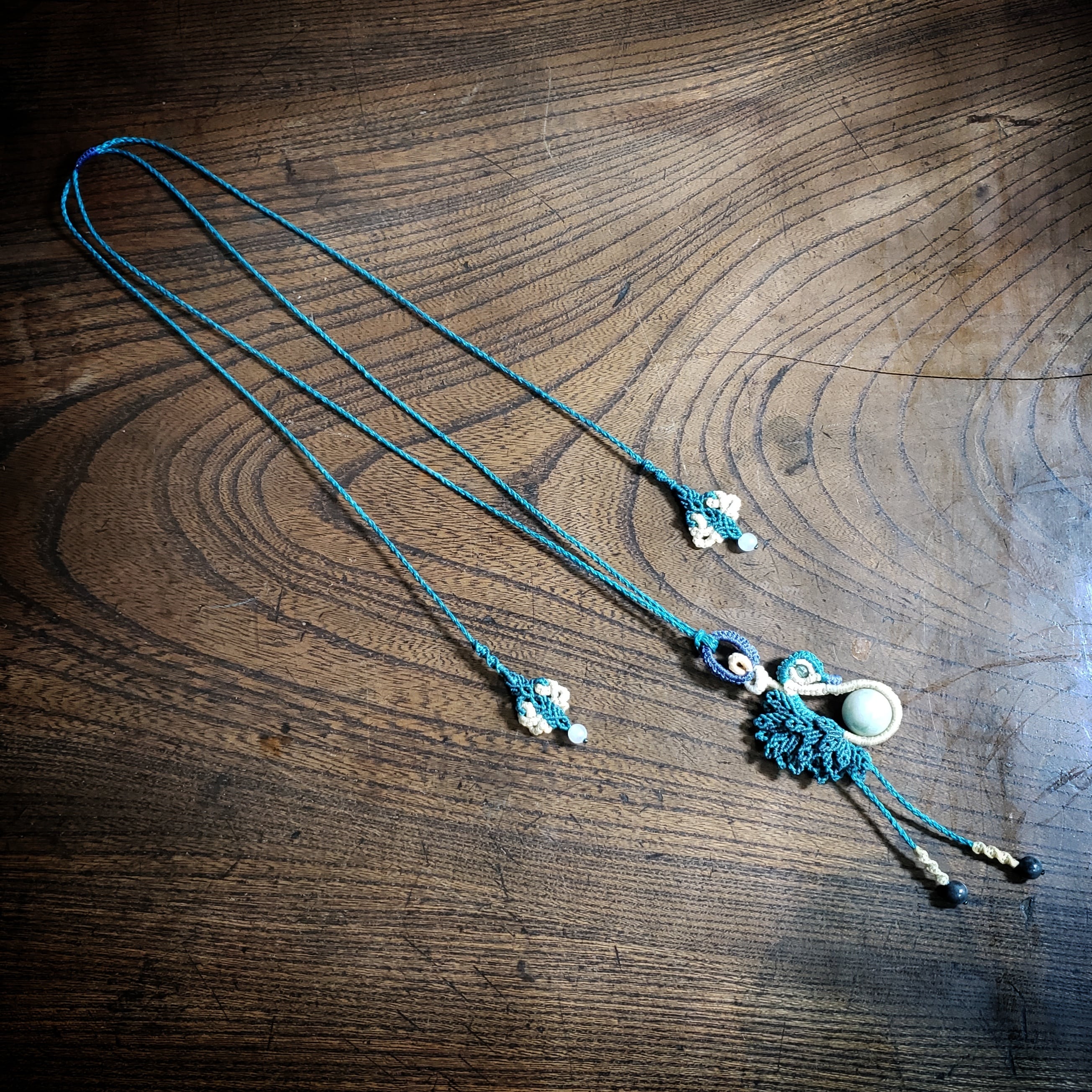 こちらは、「翡翠」鳥デザインのマクラメ編みネックレスです。