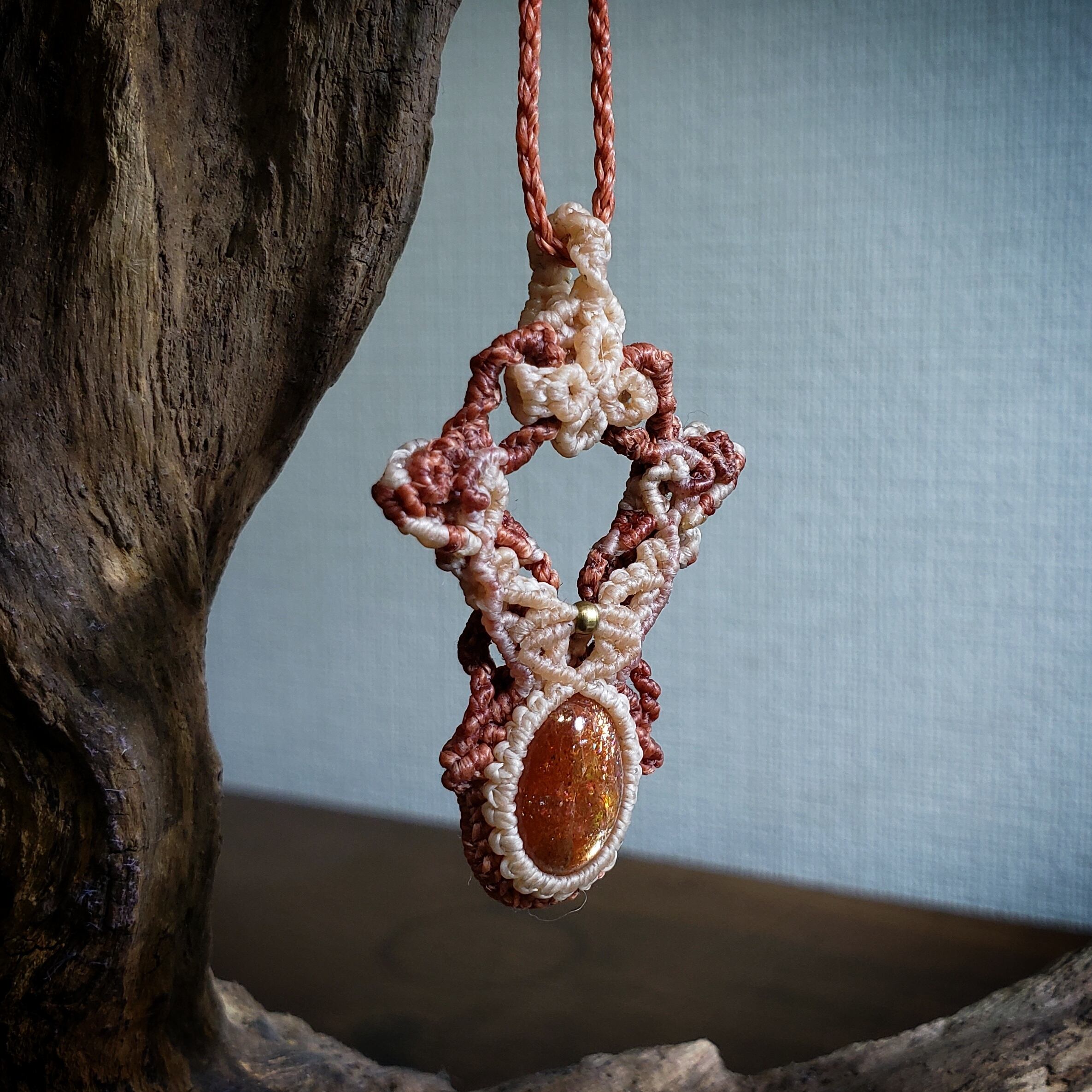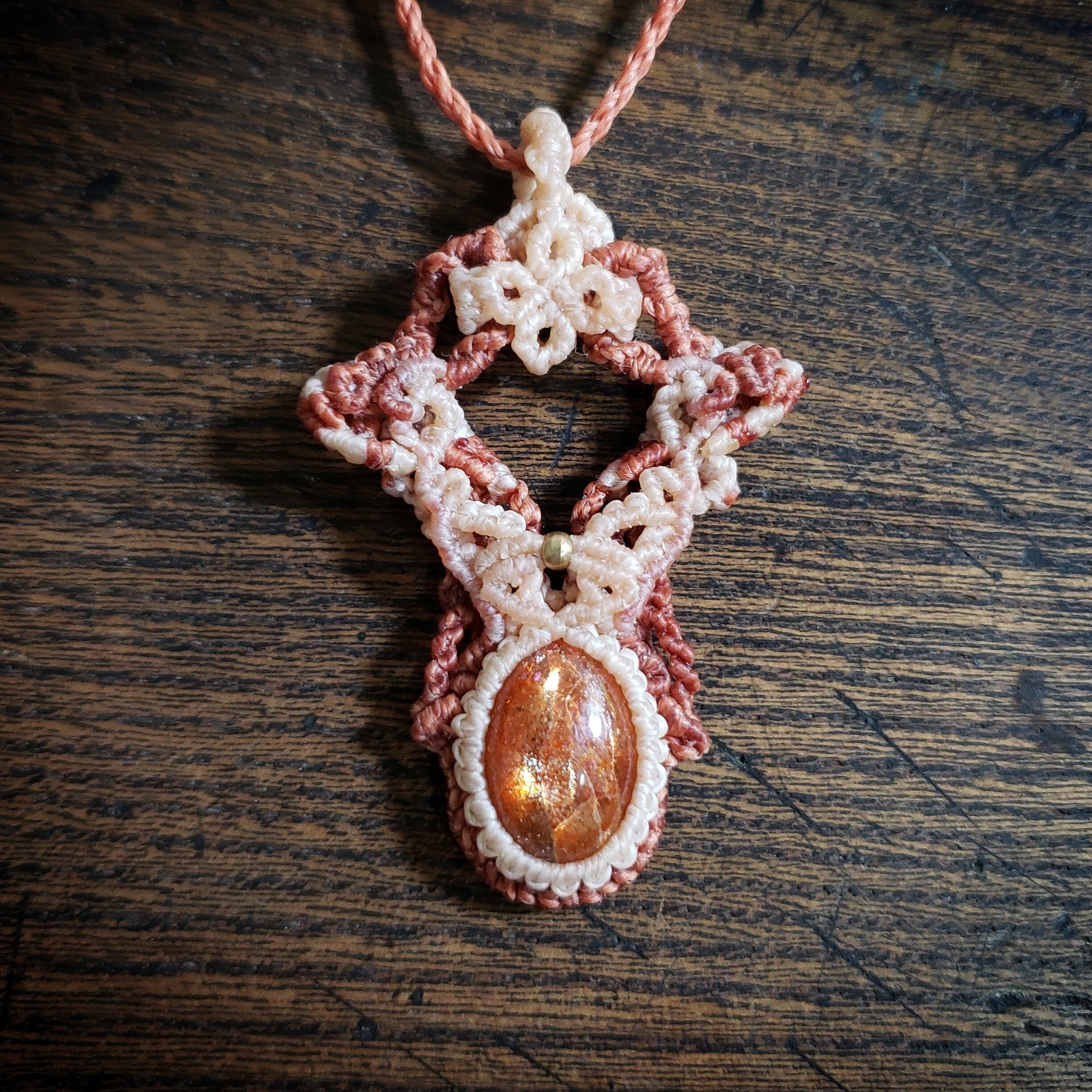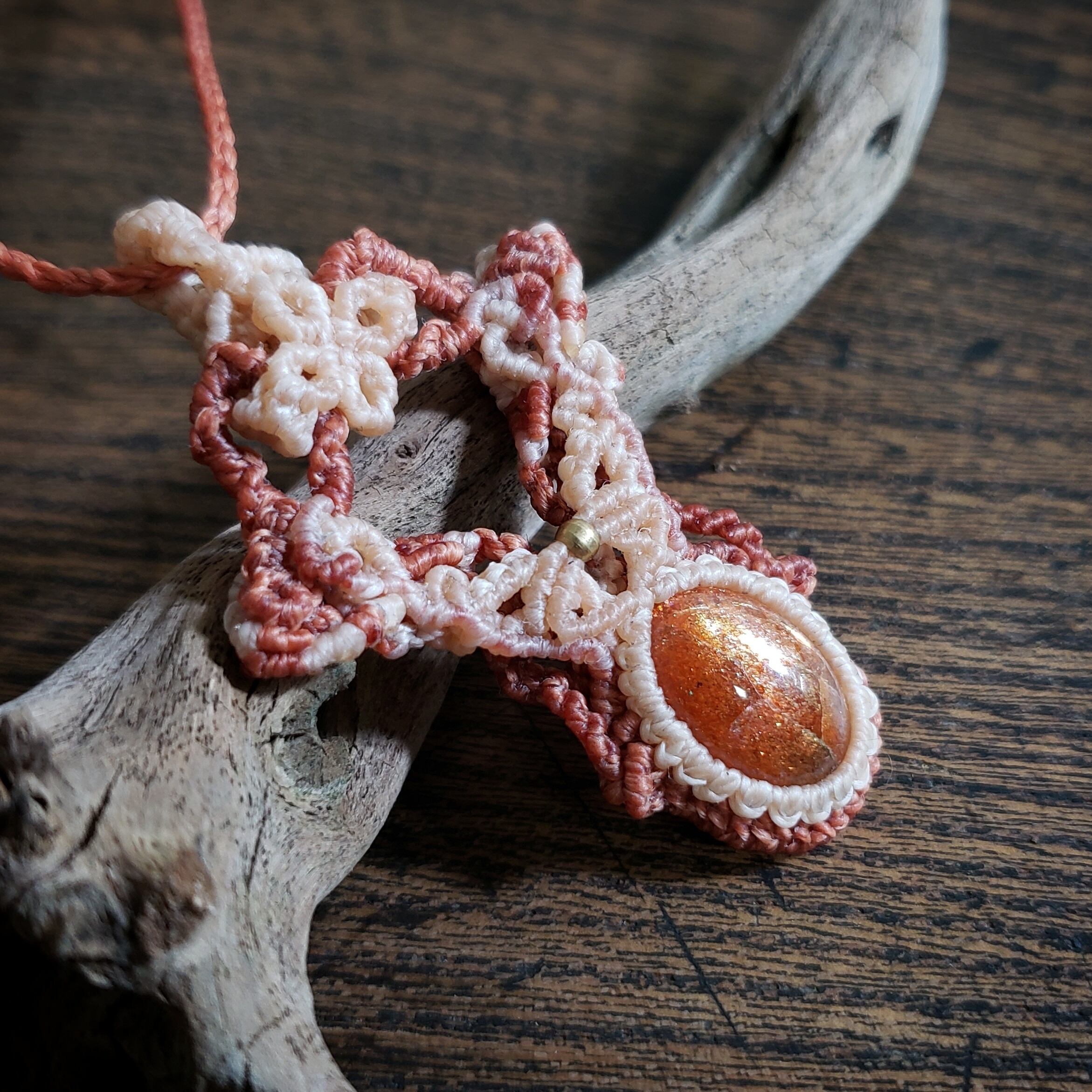こちらは、高品質な「サンストーン 」マクラメ編みネックレスです。