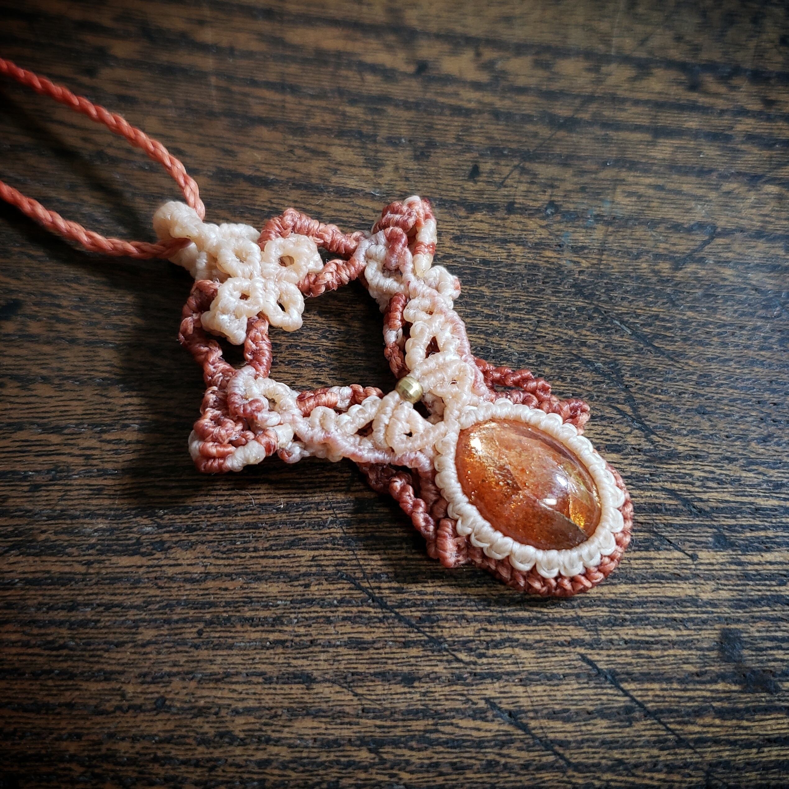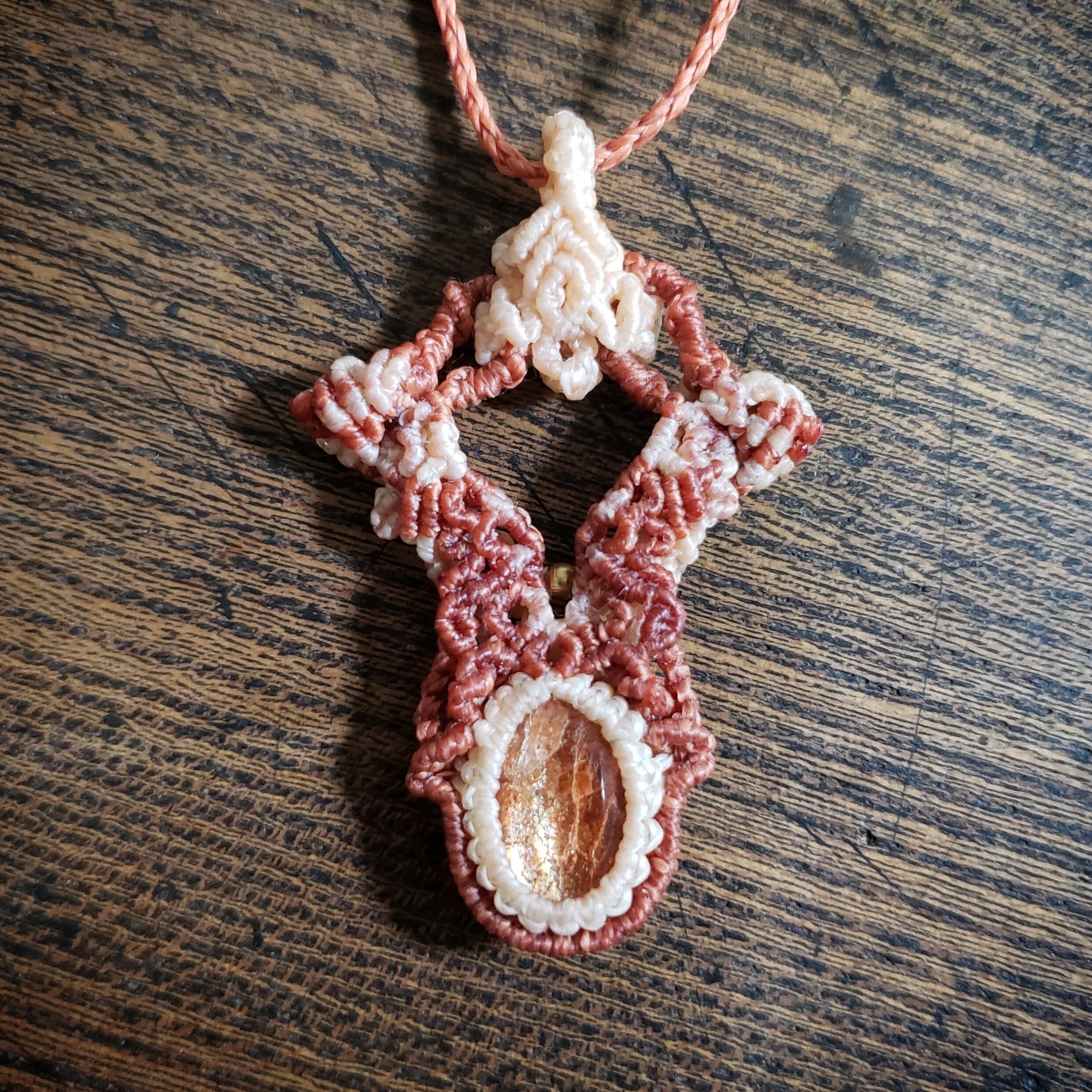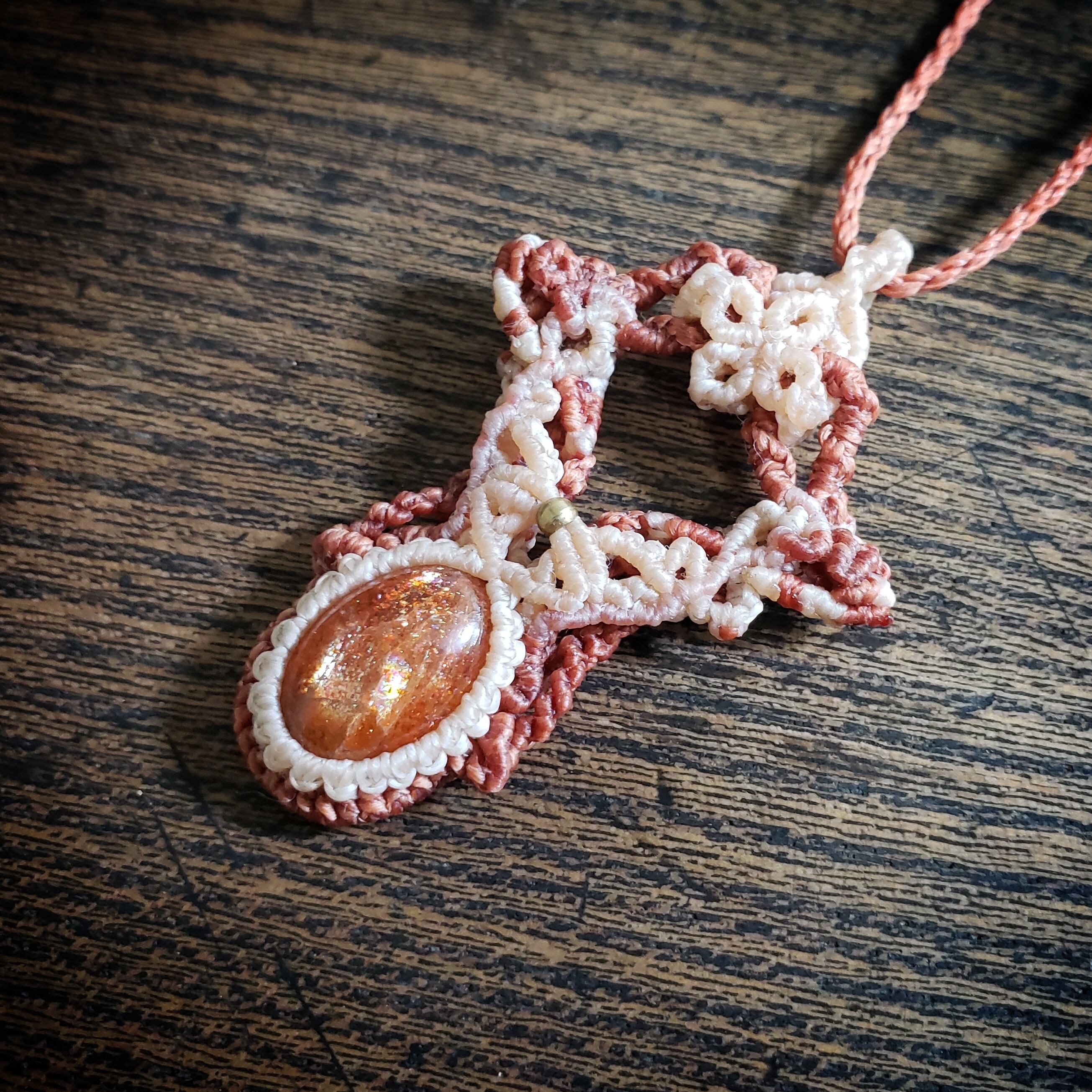 こちらは、高品質な「サンストーン 」マクラメ編みネックレスです。