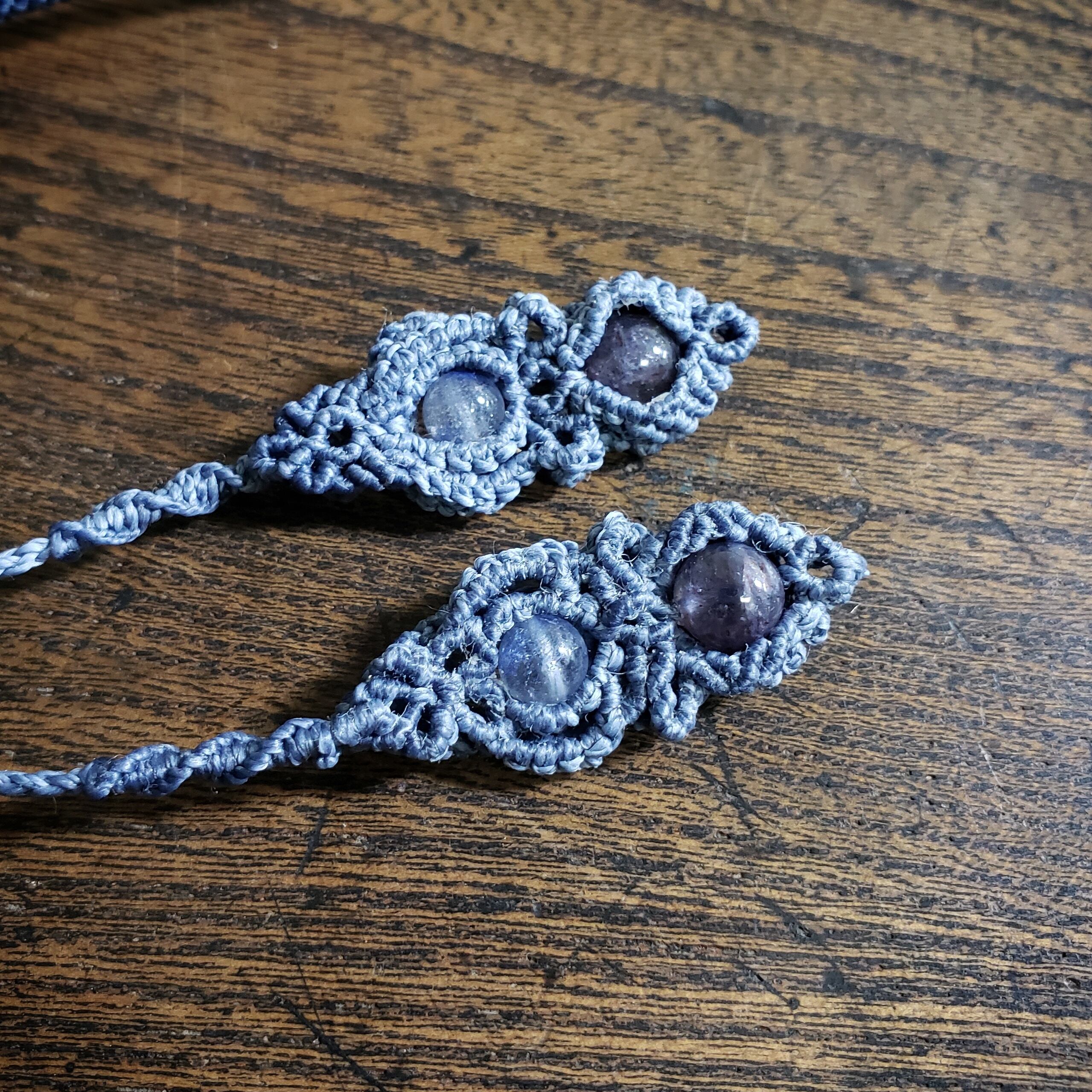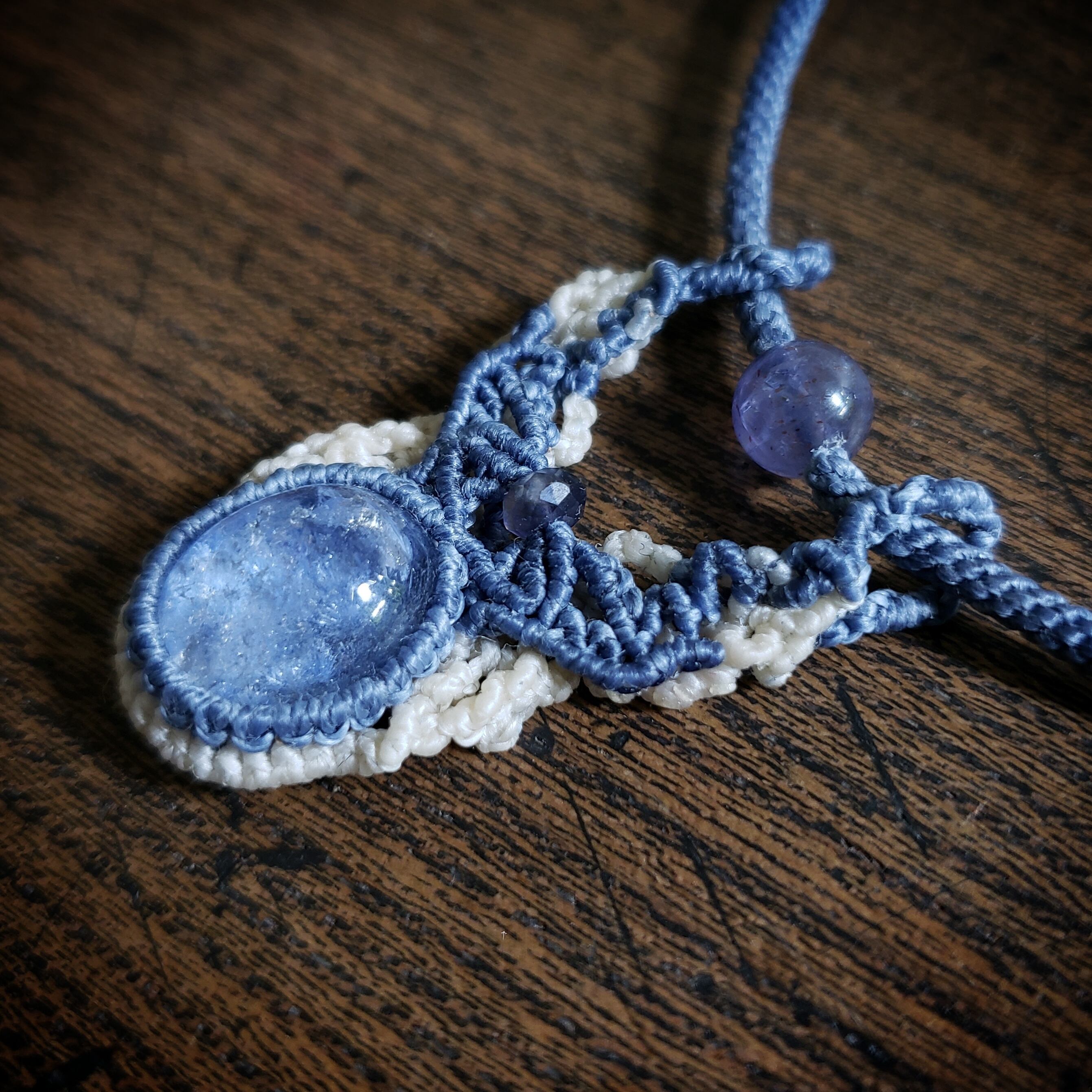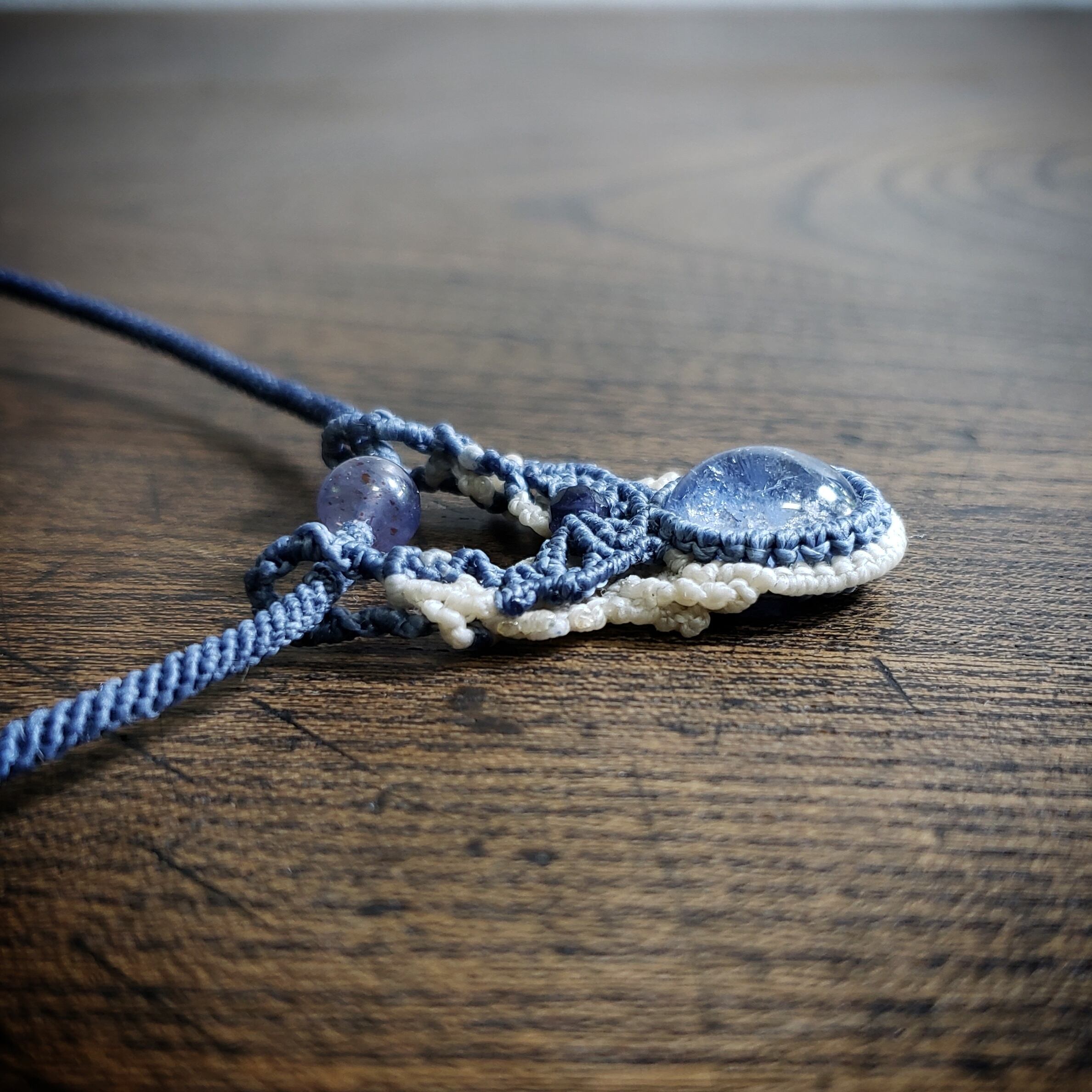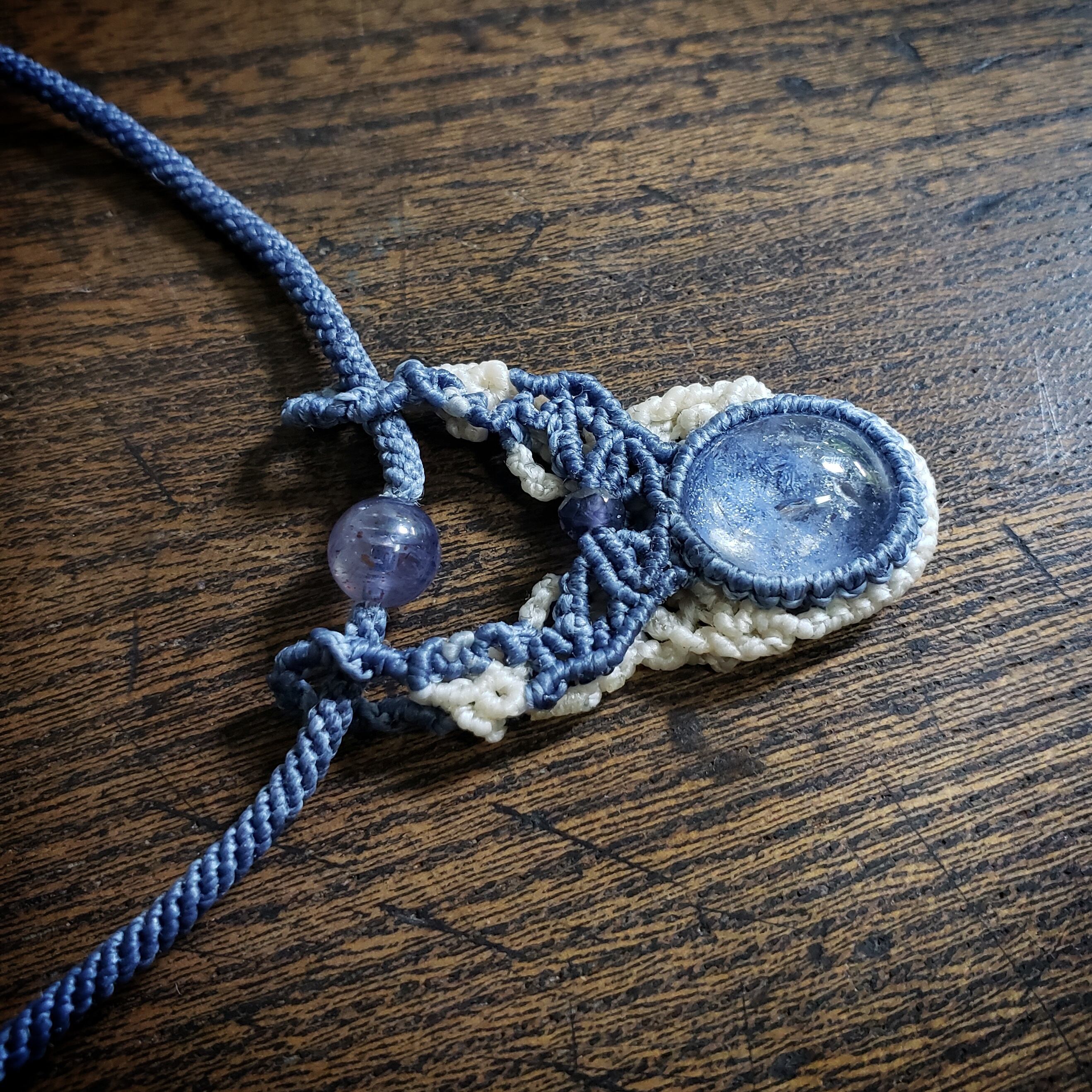 「デュモルチェライトinクォーツ 」「アイオライトサンストーン のマクラメ編みネックレス