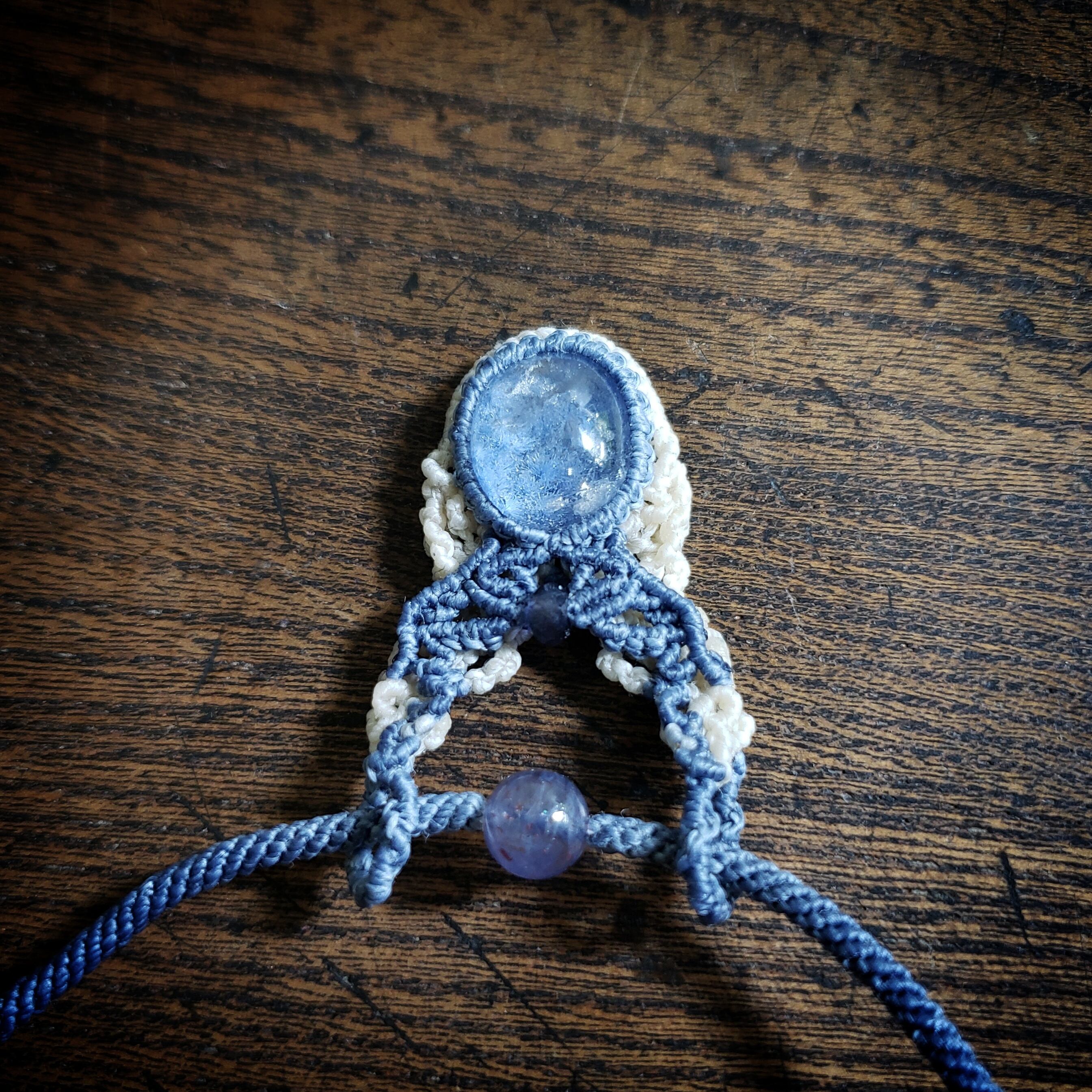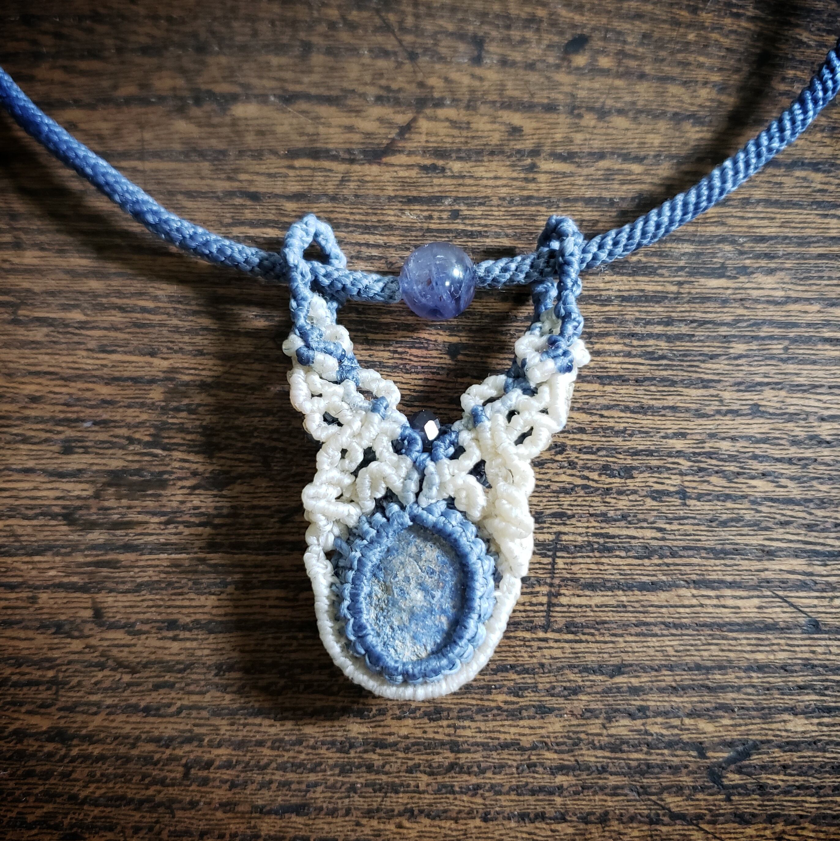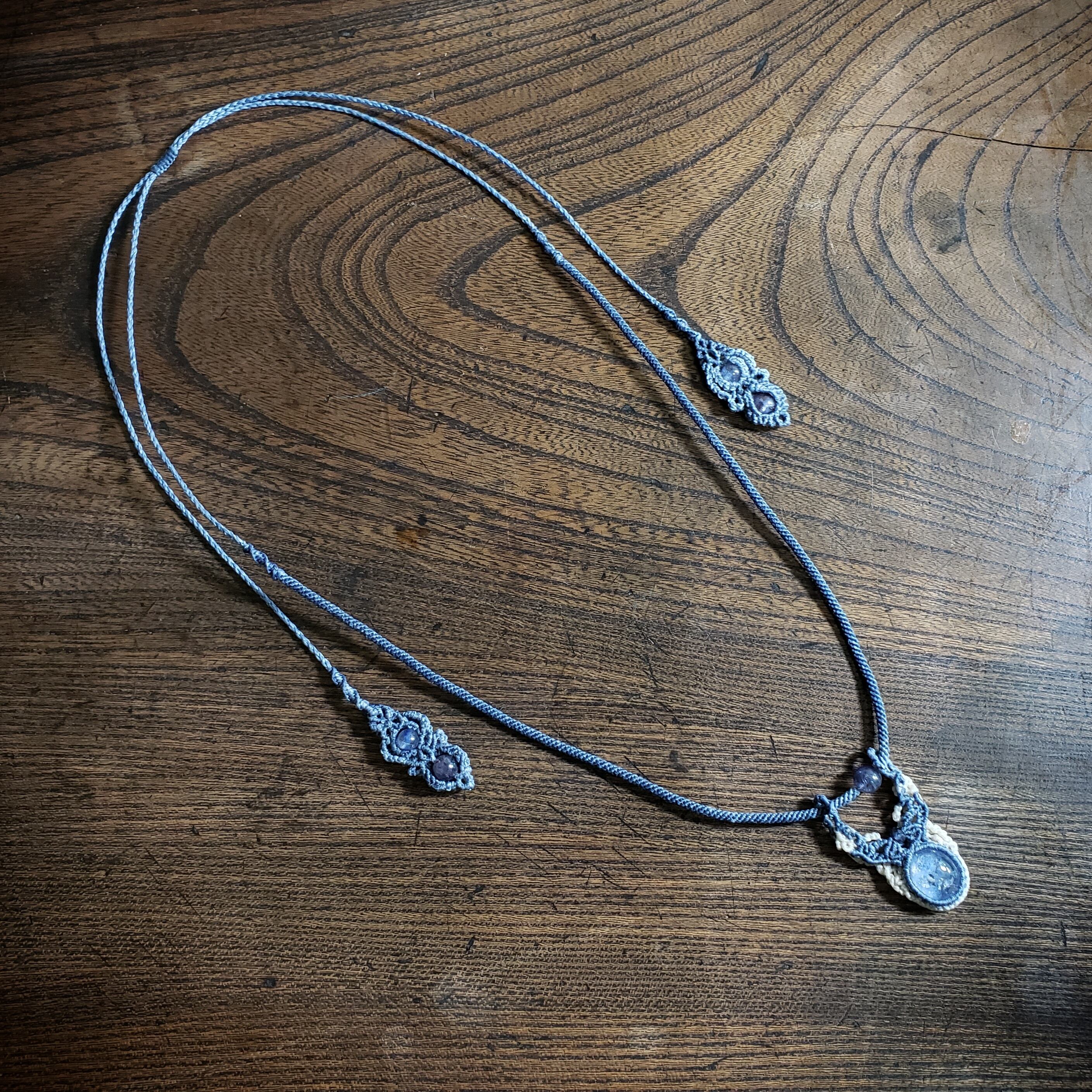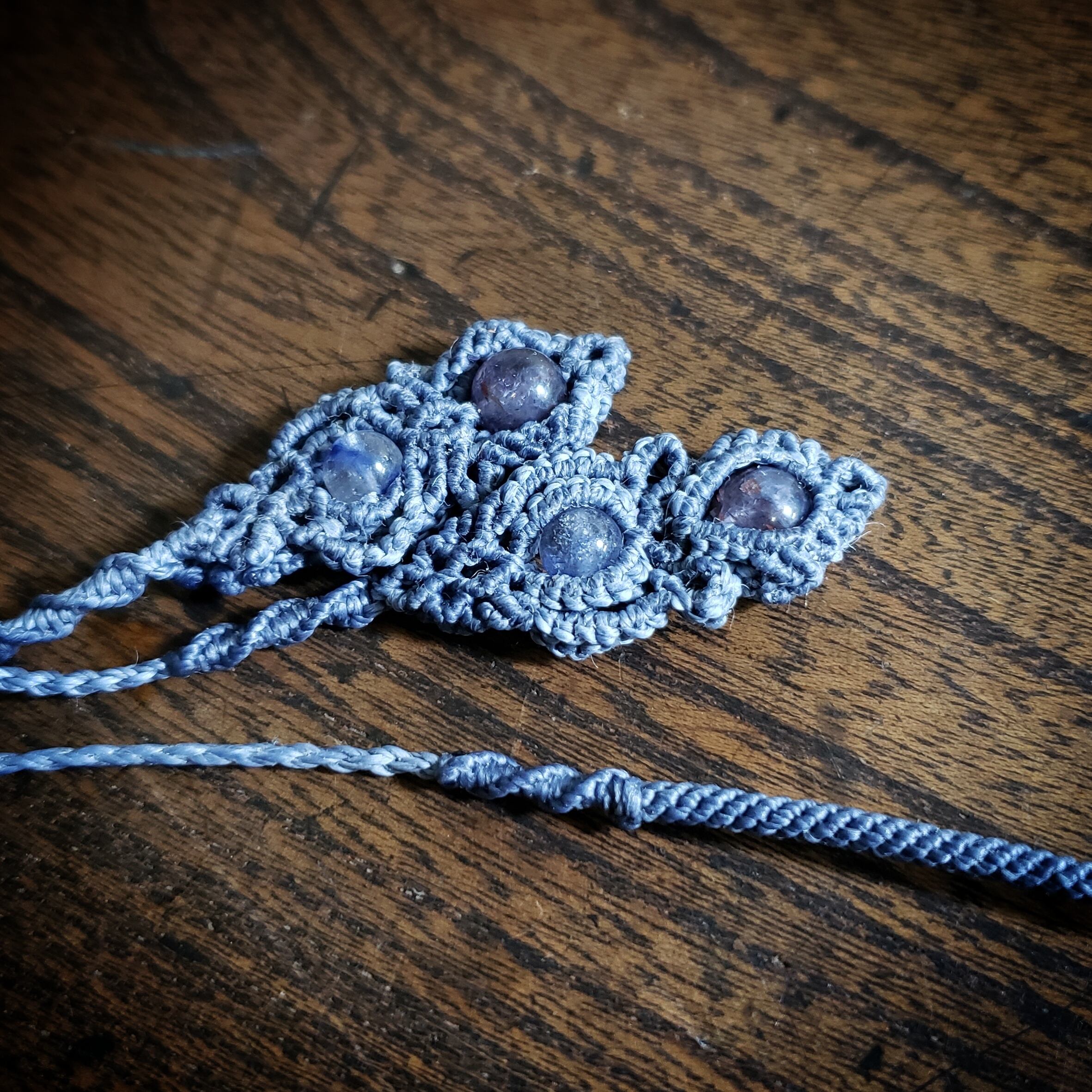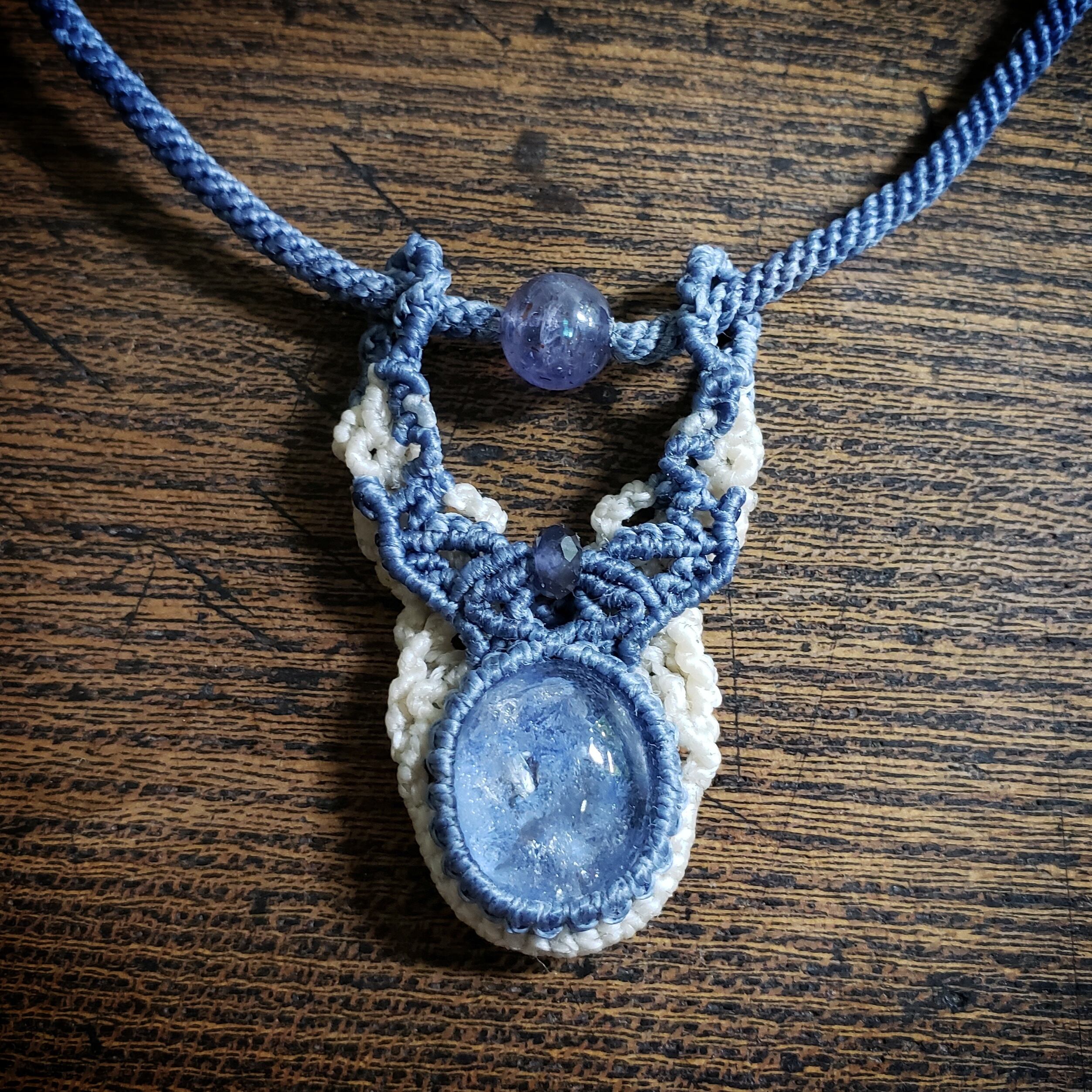 「デュモルチェライトinクォーツ 」「アイオライトサンストーン のマクラメ編みネックレス
