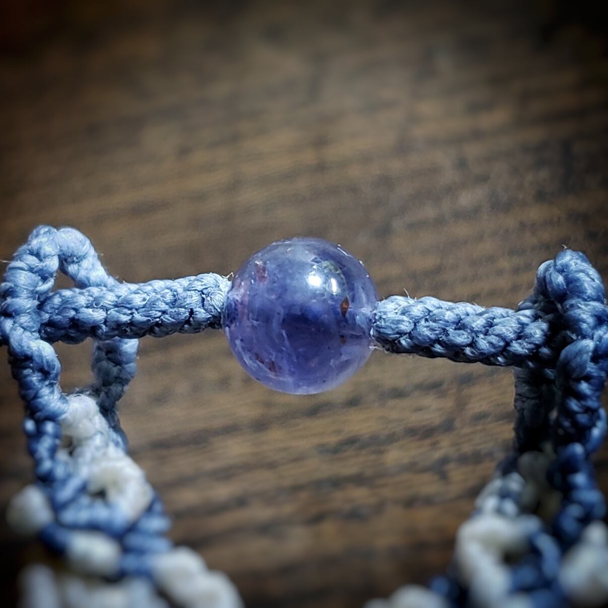 ミドルクオリティ の「デュモルチェライトインクォーツ 」と高品質な「アイオライトサンストーン」のマクラメ編みネックレスです。