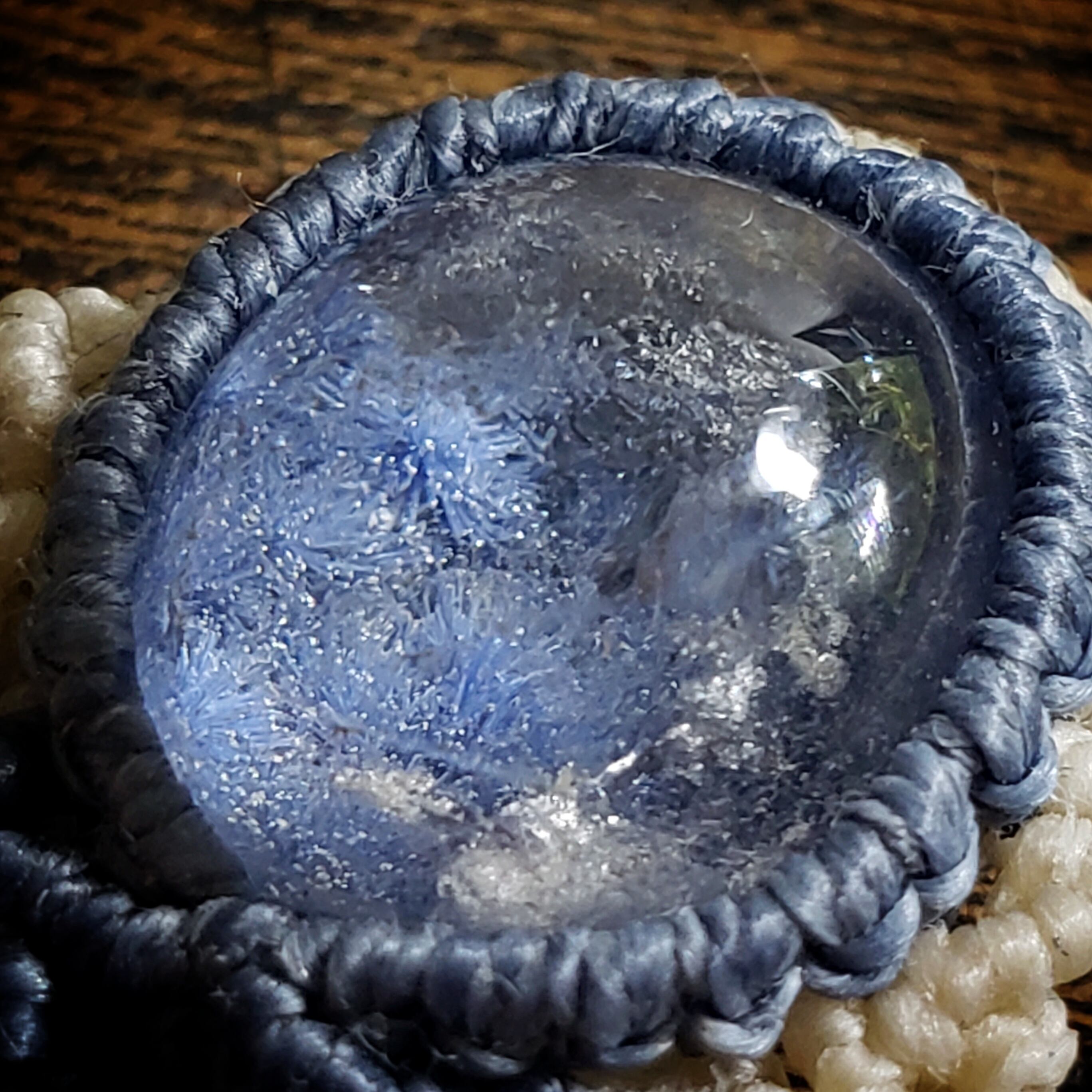 「デュモルチェライトインクォーツ 」トップのルースとと背守りの天然石。