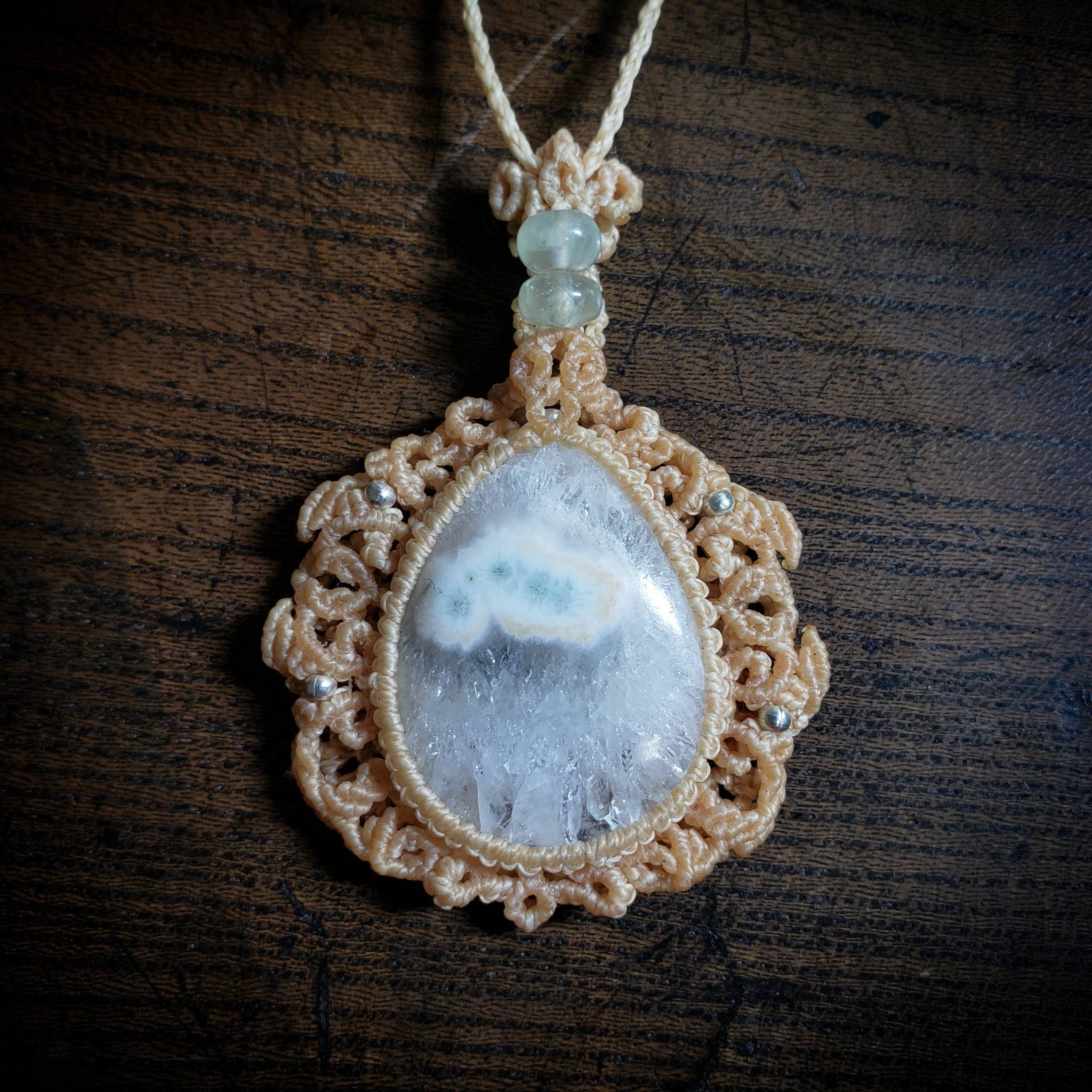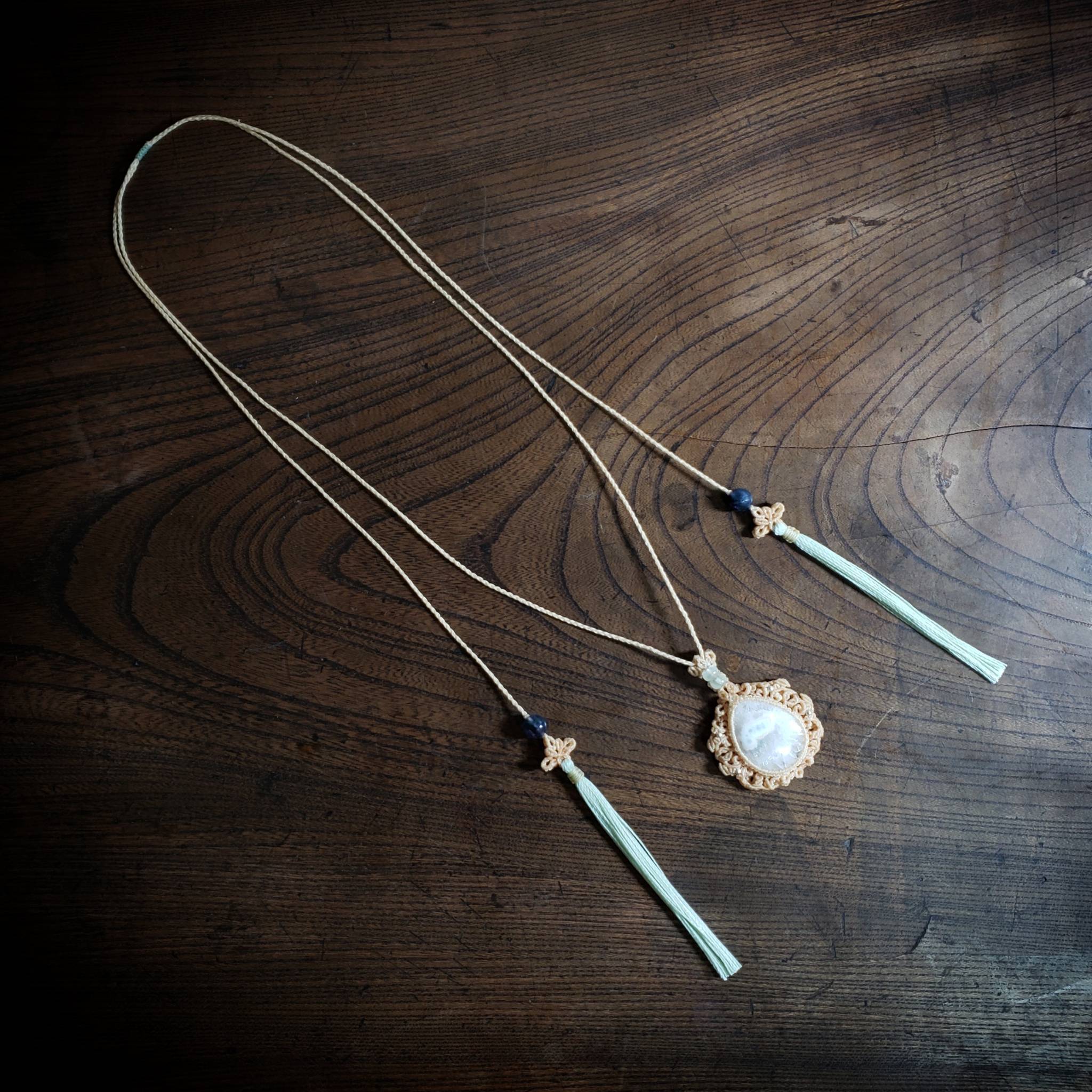 キラキラ「ソーラークォーツ」のマクラメ編みネックレス