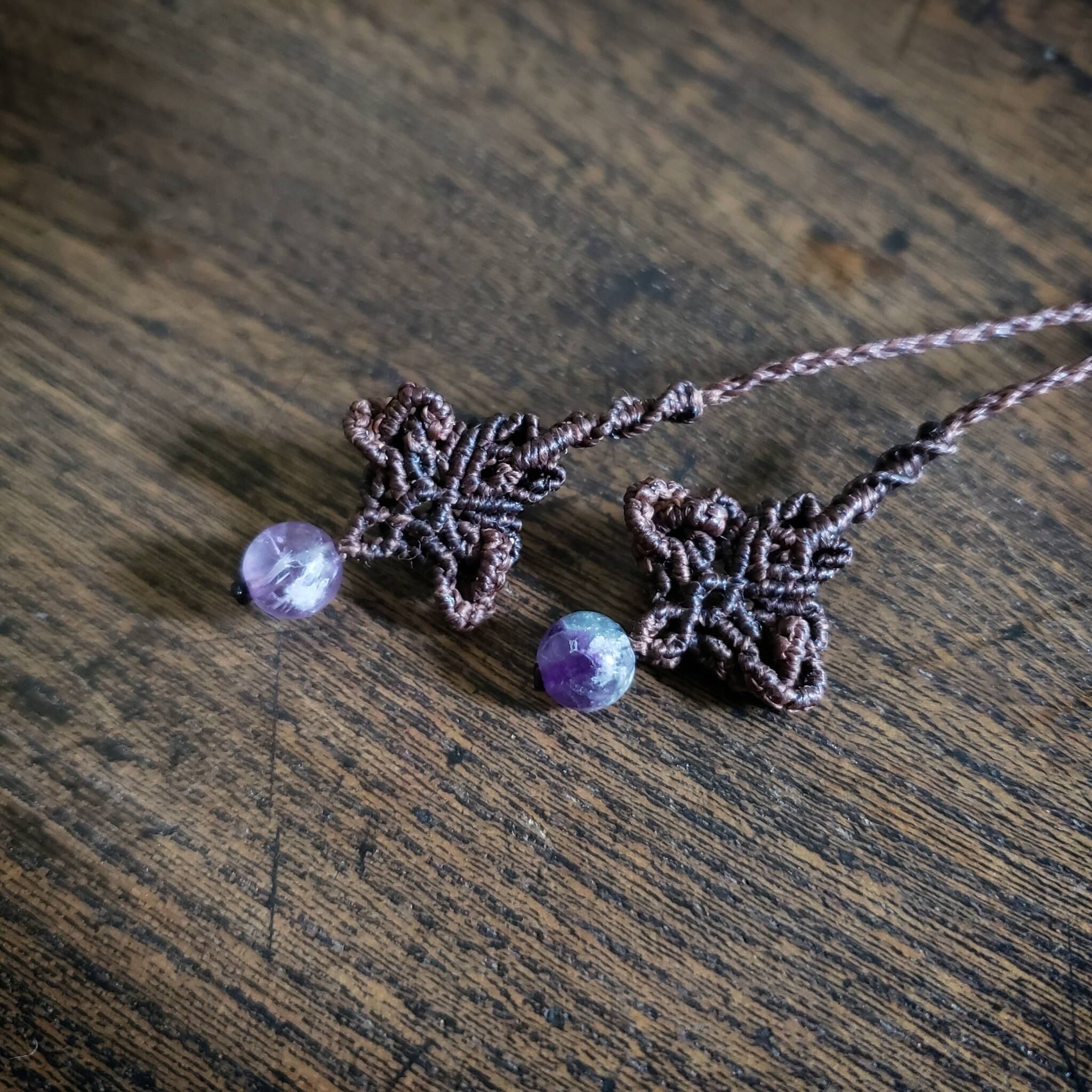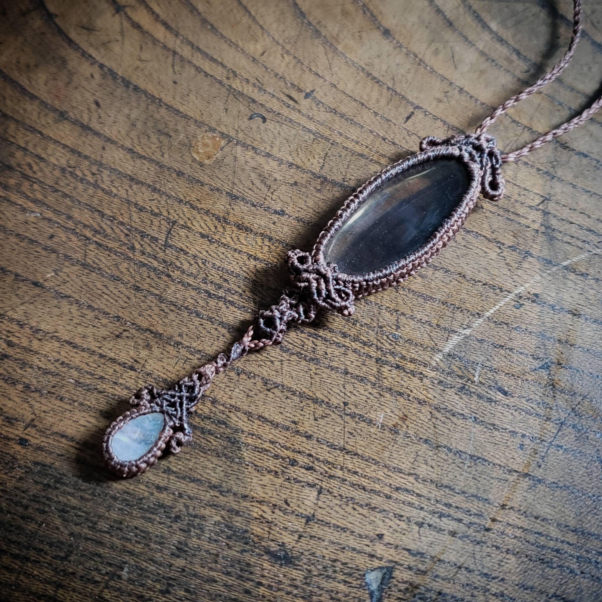 こちらは、ミドルクオリティの「フローライト 」と「ムーンストーン」のマクラメ編みネックレスのご紹介です。