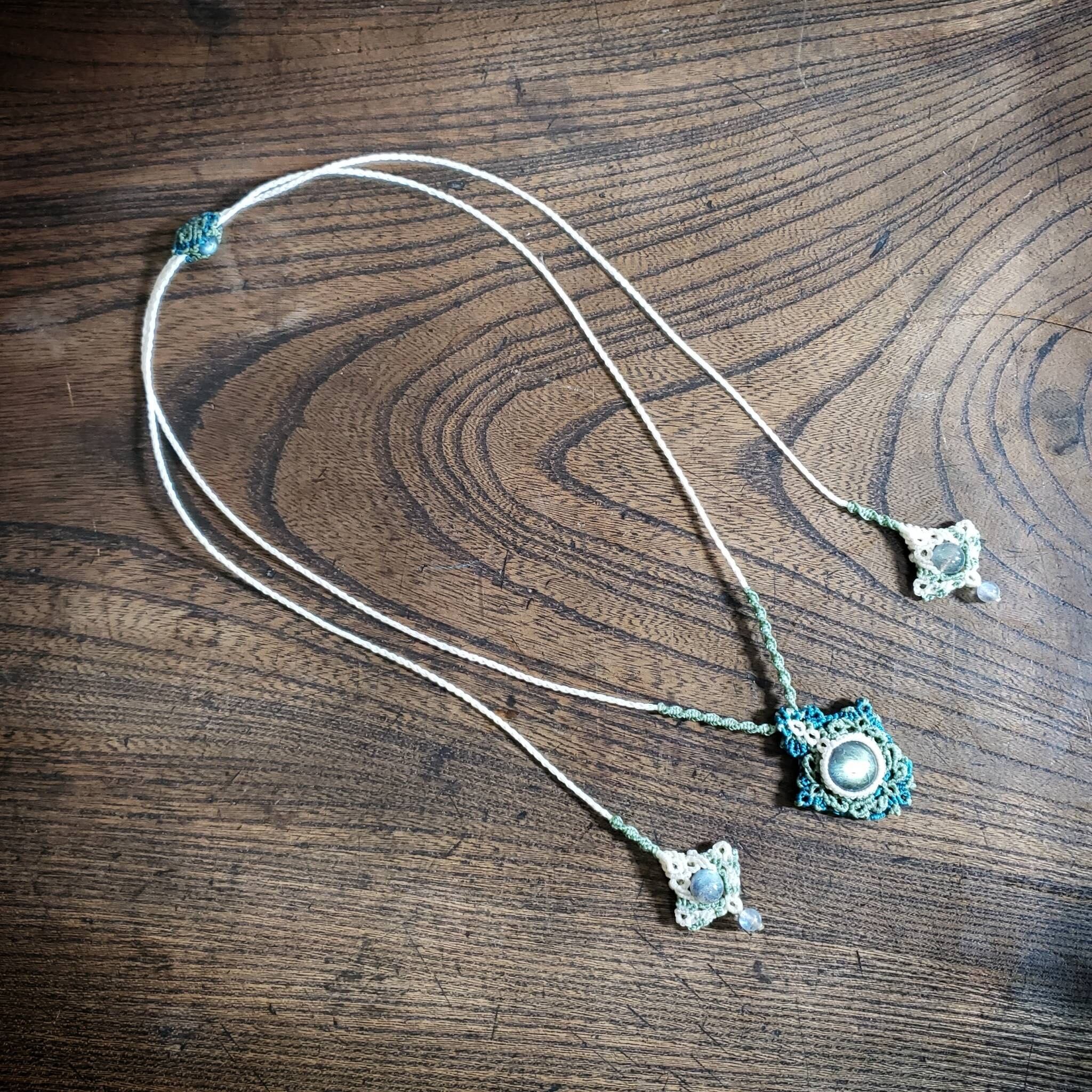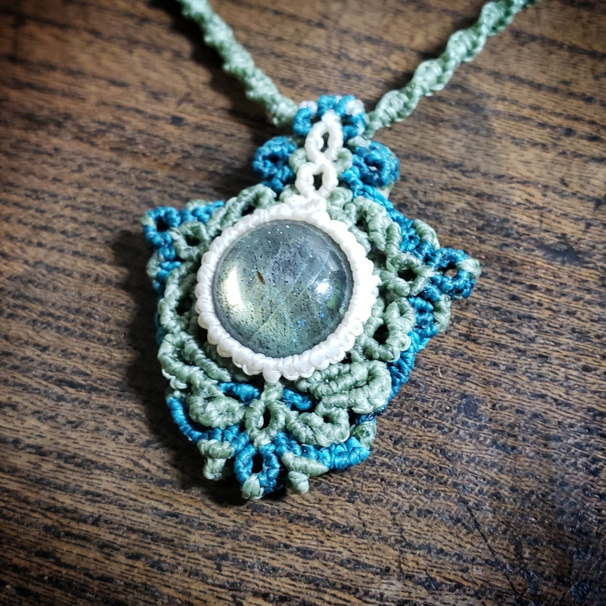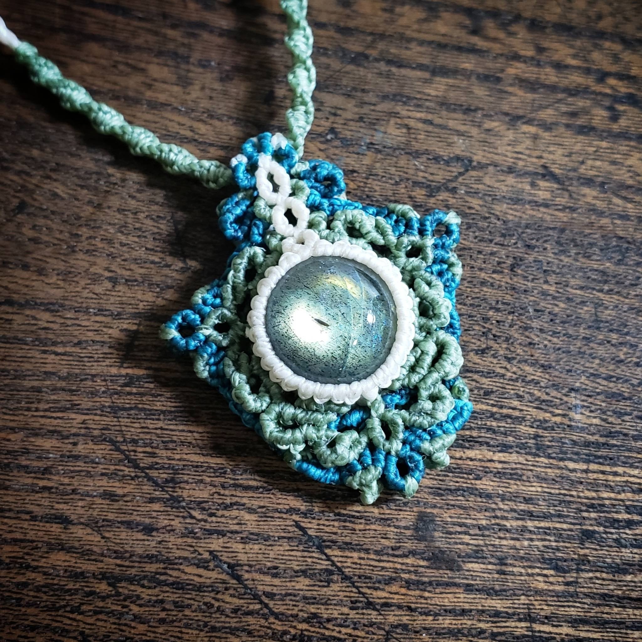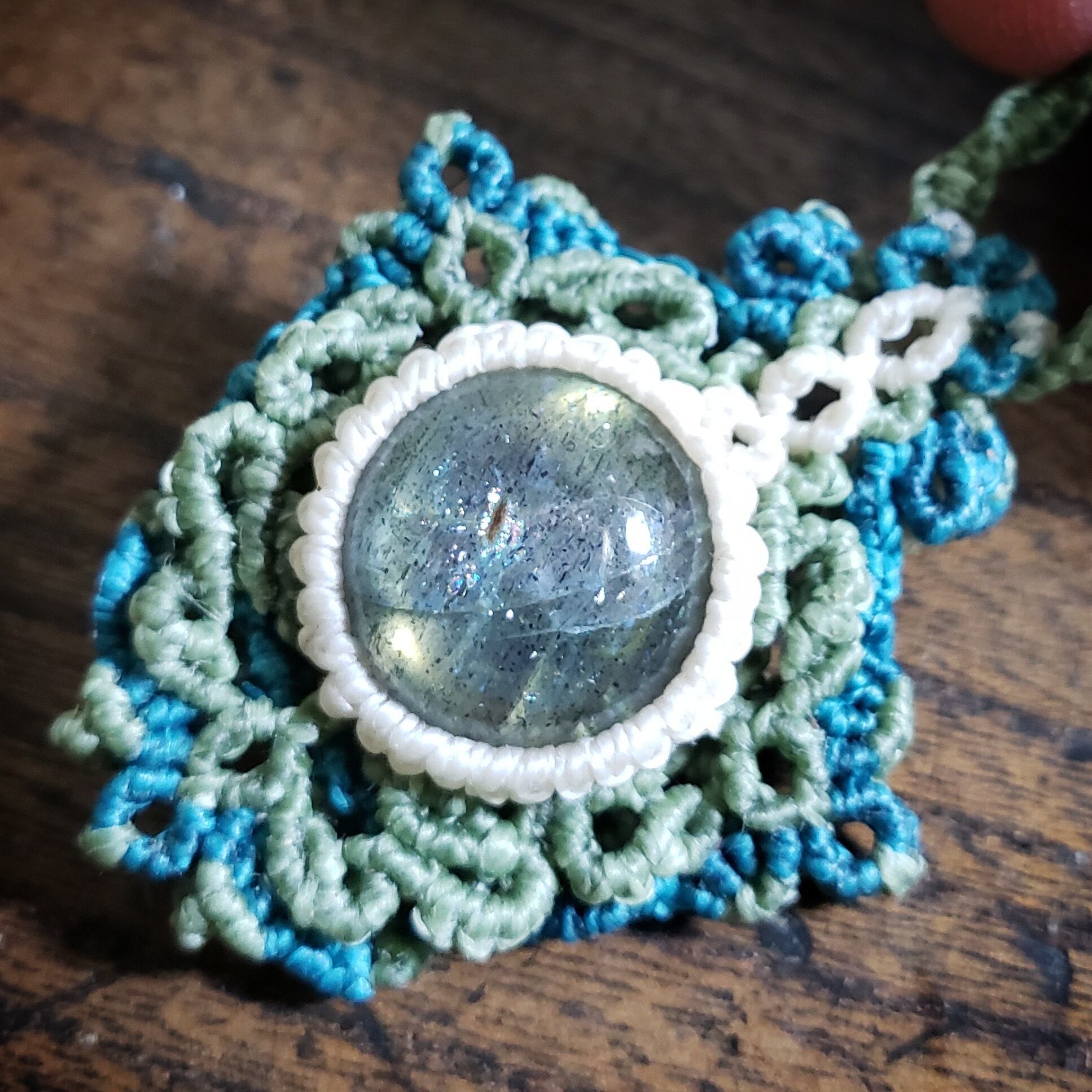 こちらは、ラブラドライト マクラメ編みネックレスのご紹介です。