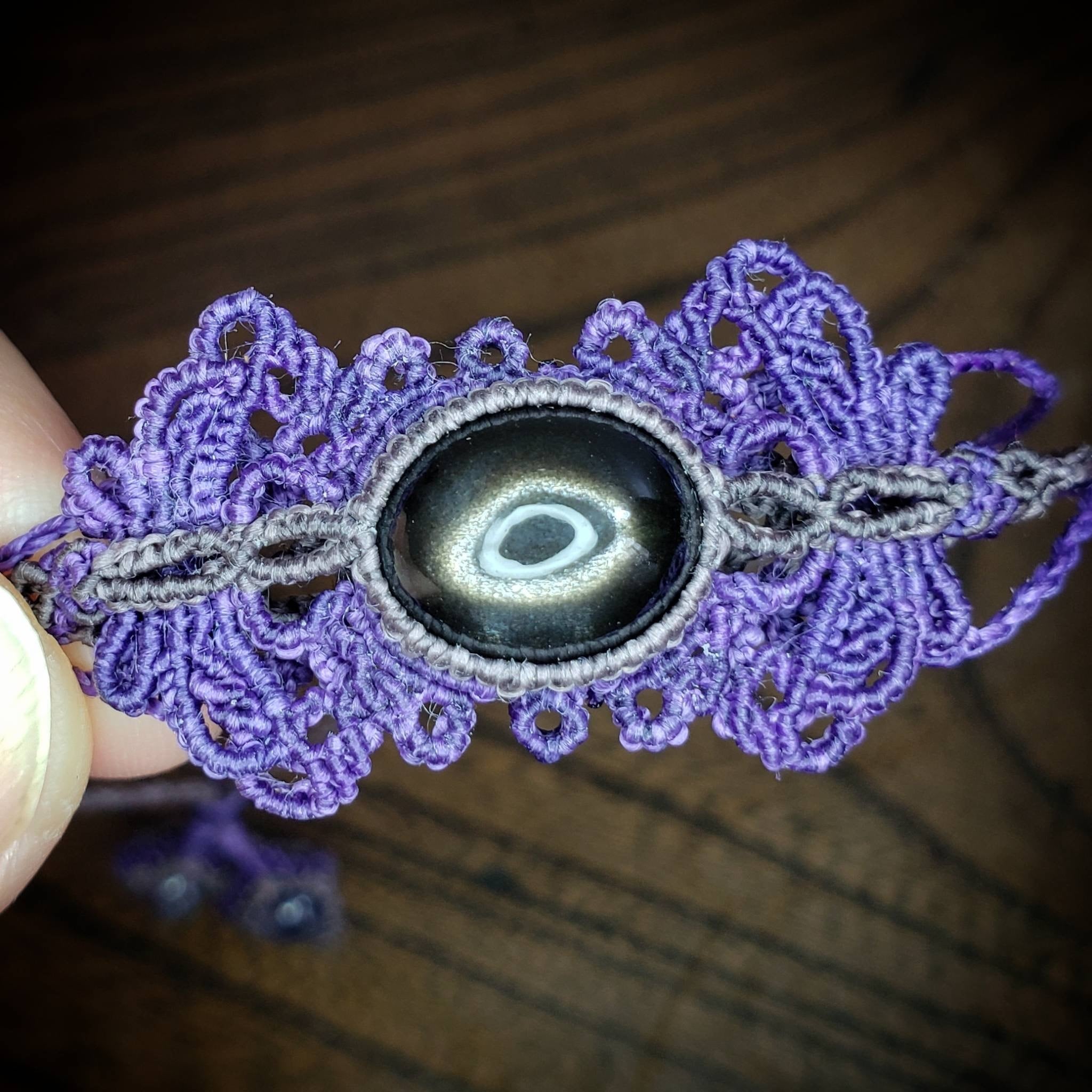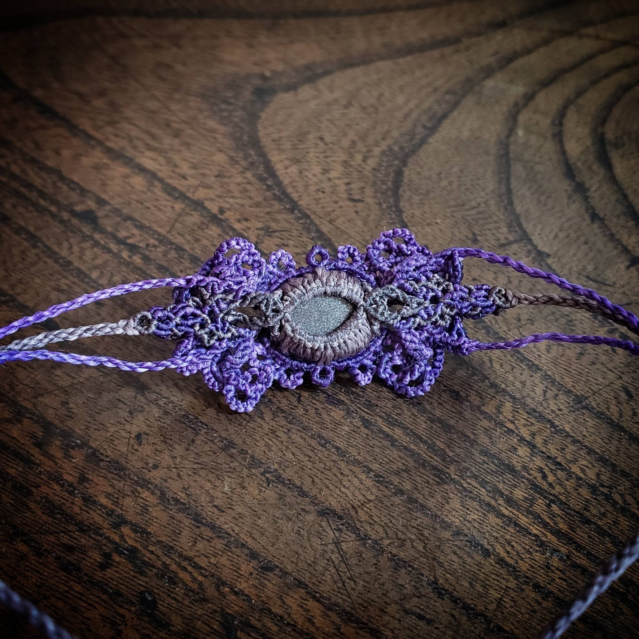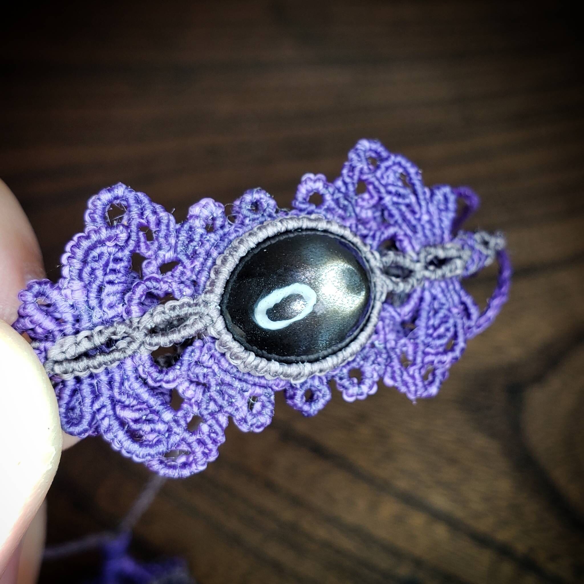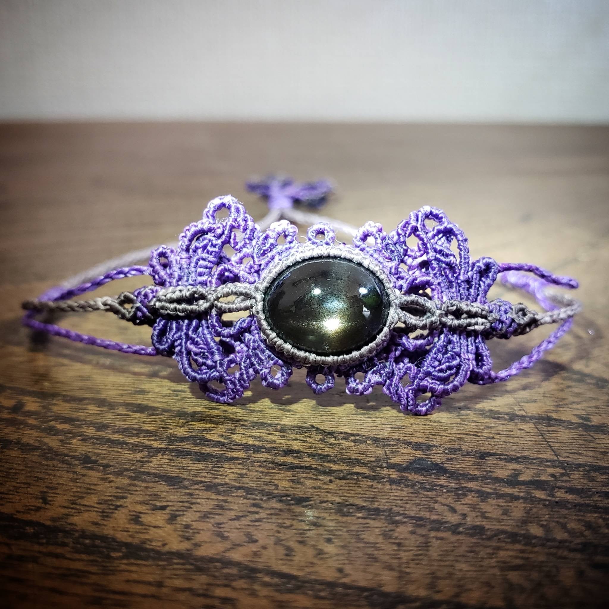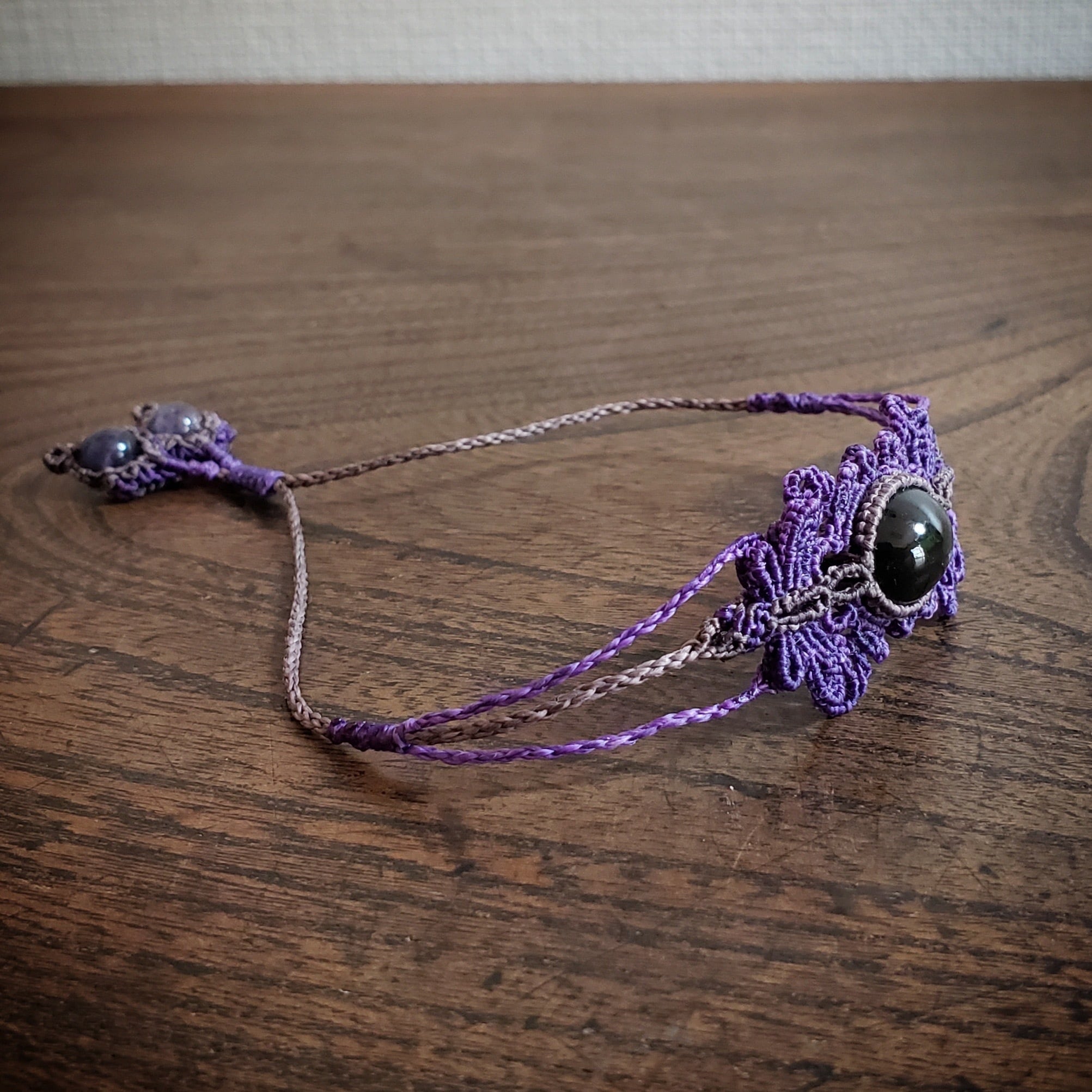 「ブラックスターサンストーン」のマクラメ編みブレスレットをご紹介致します。