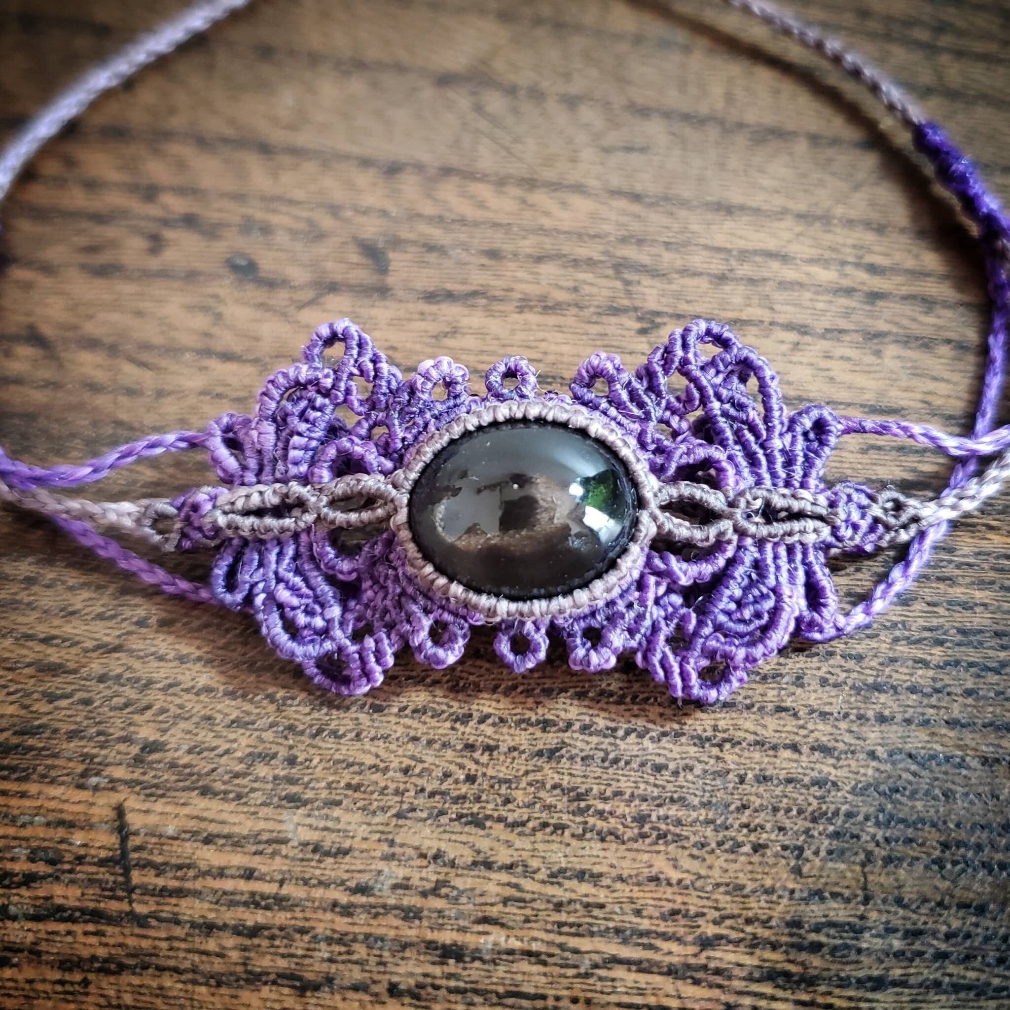 希少石「ブラックスターサンストーン 」のマクラメ編みブレスレット