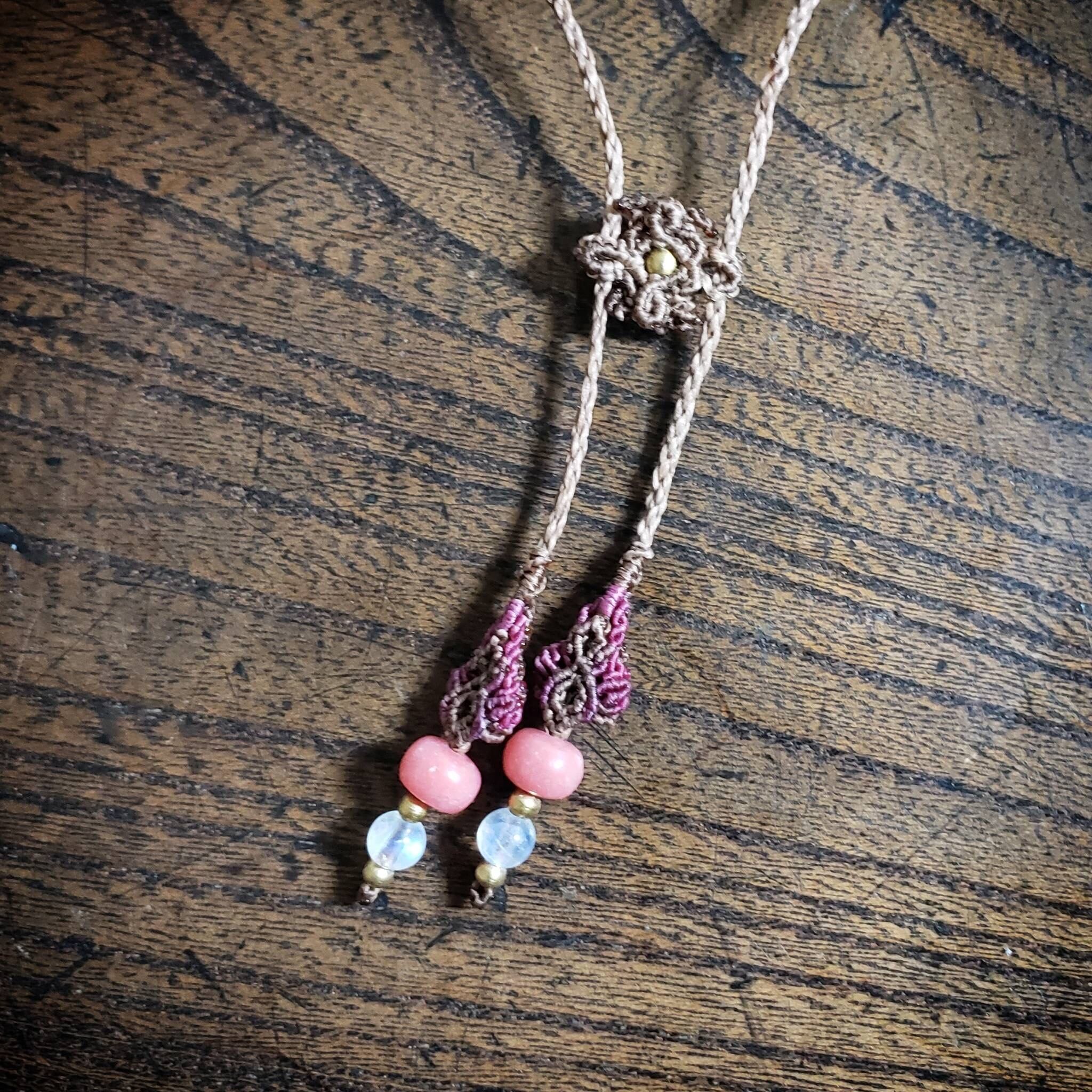 こちらは、ハート型「アンデシン」のマクラメ編みブレスレットのご紹介です。