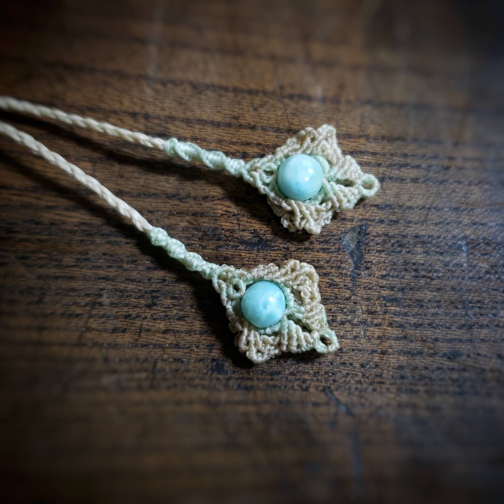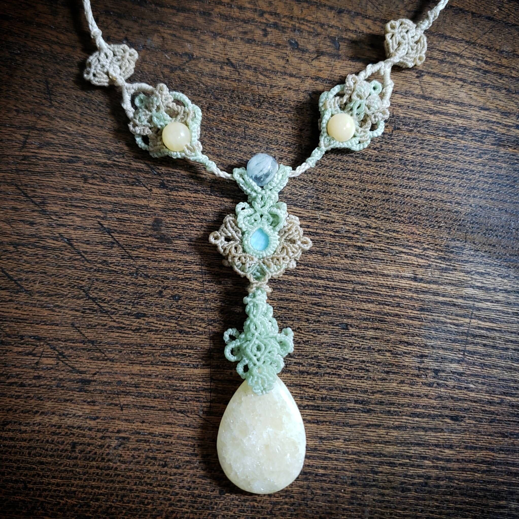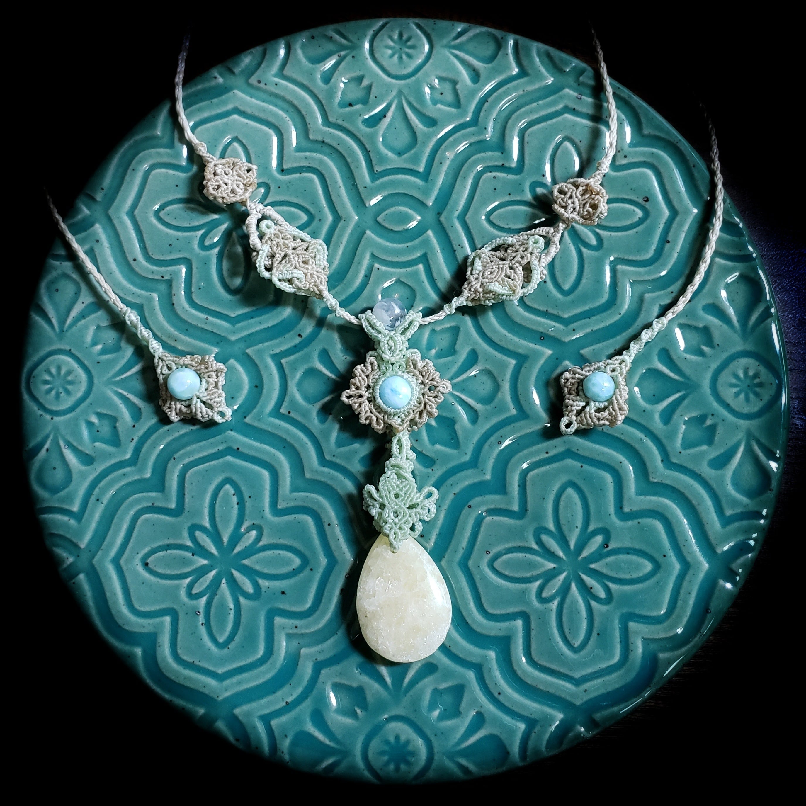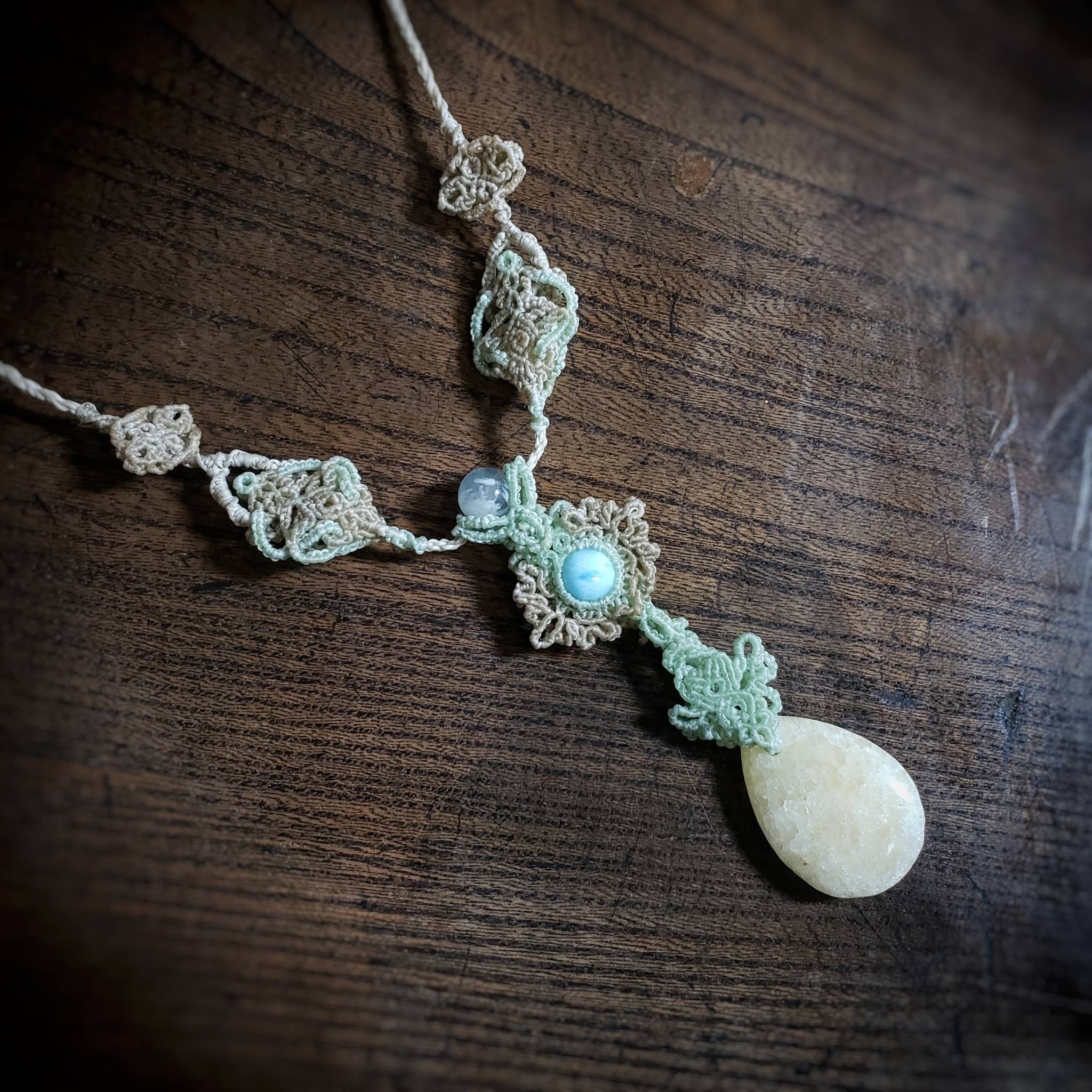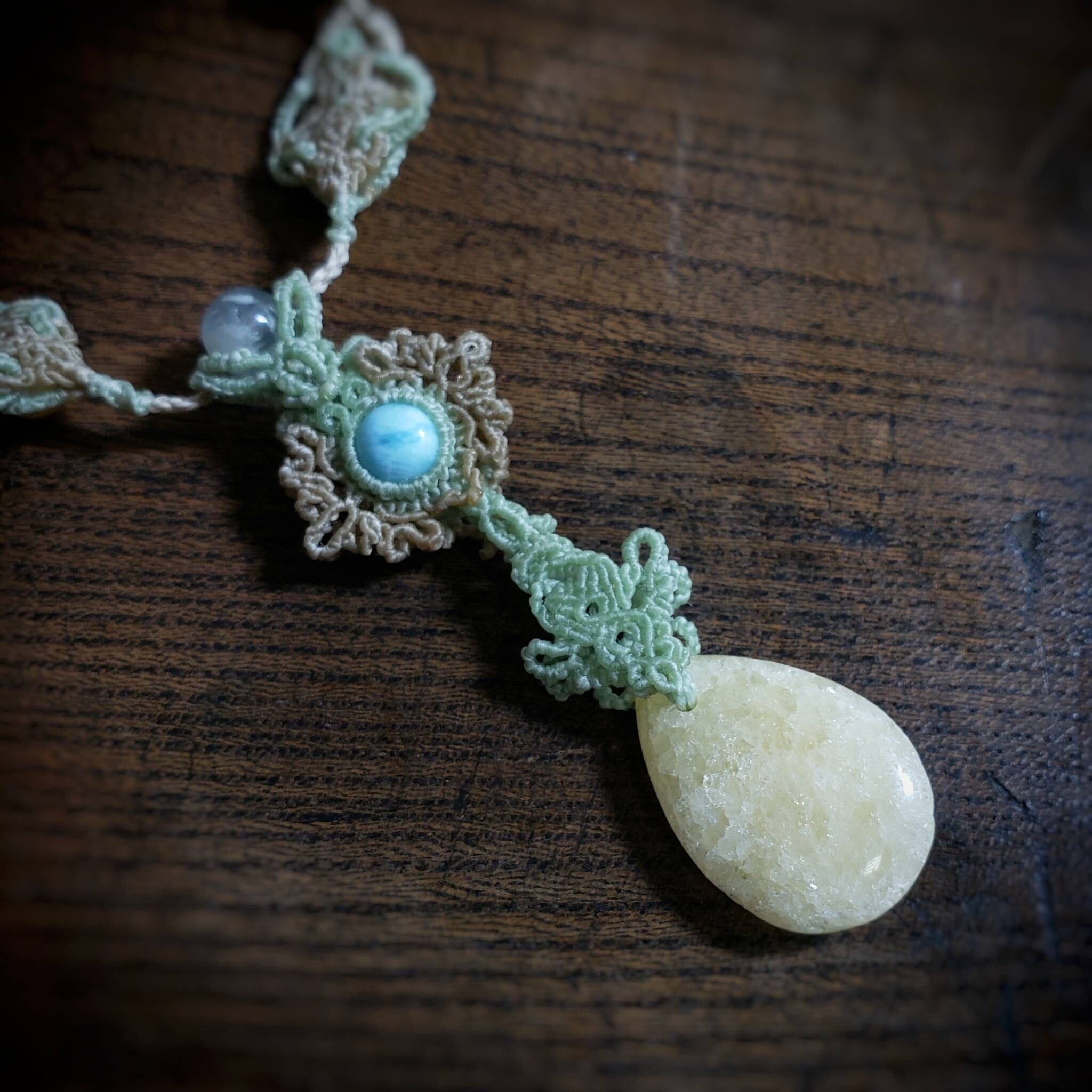 「ラリマー」と「イエロージェイド」のマクラメ編みネックレス