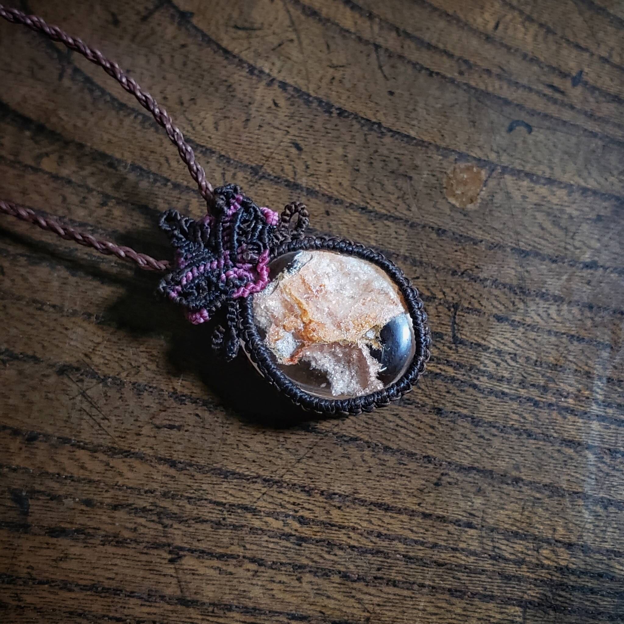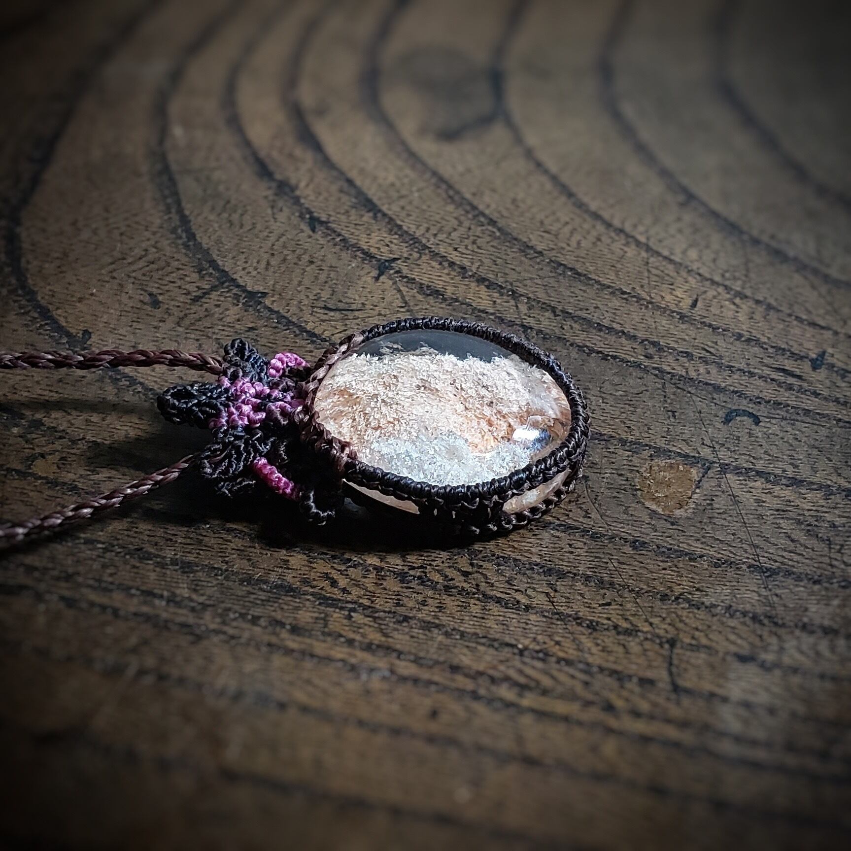 春色 ピンク「ガーデンクォーツ」のマクラメ編みネックレス