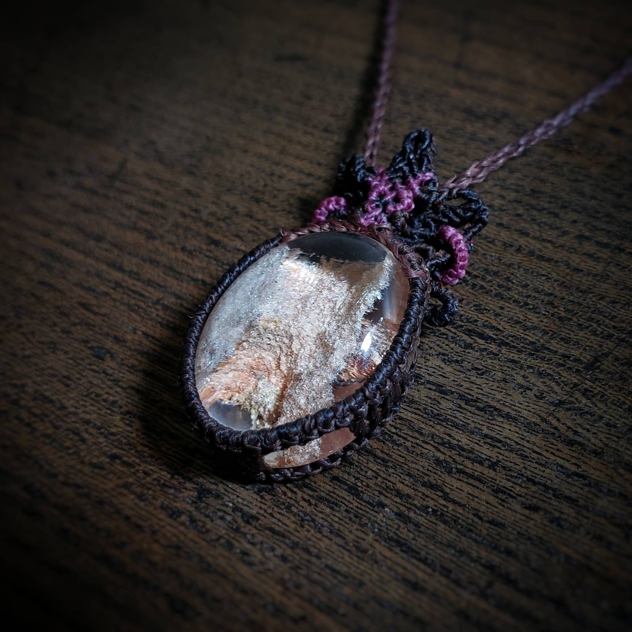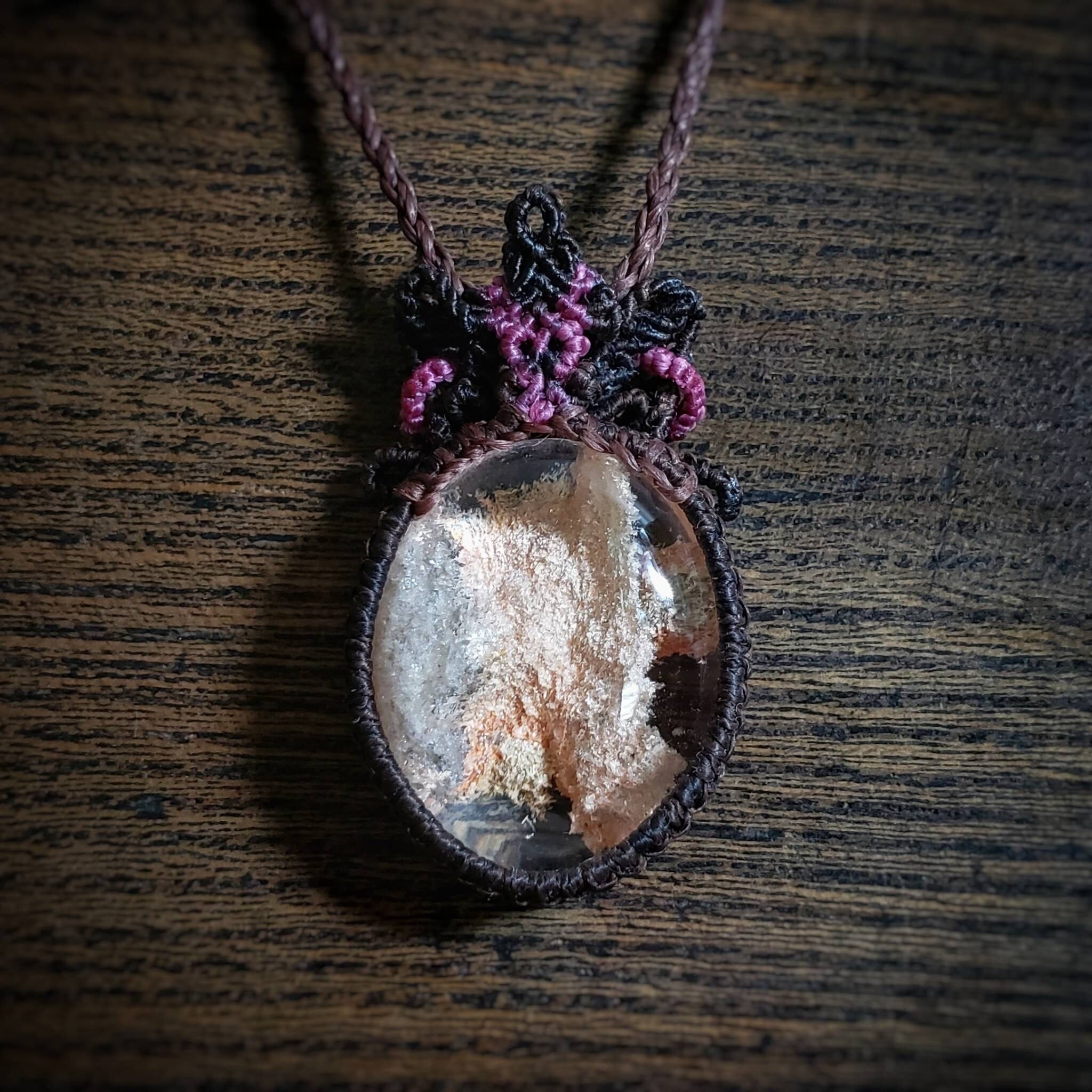 ガーデンクォーツの天然石のマクラメ編みネックレスです。
