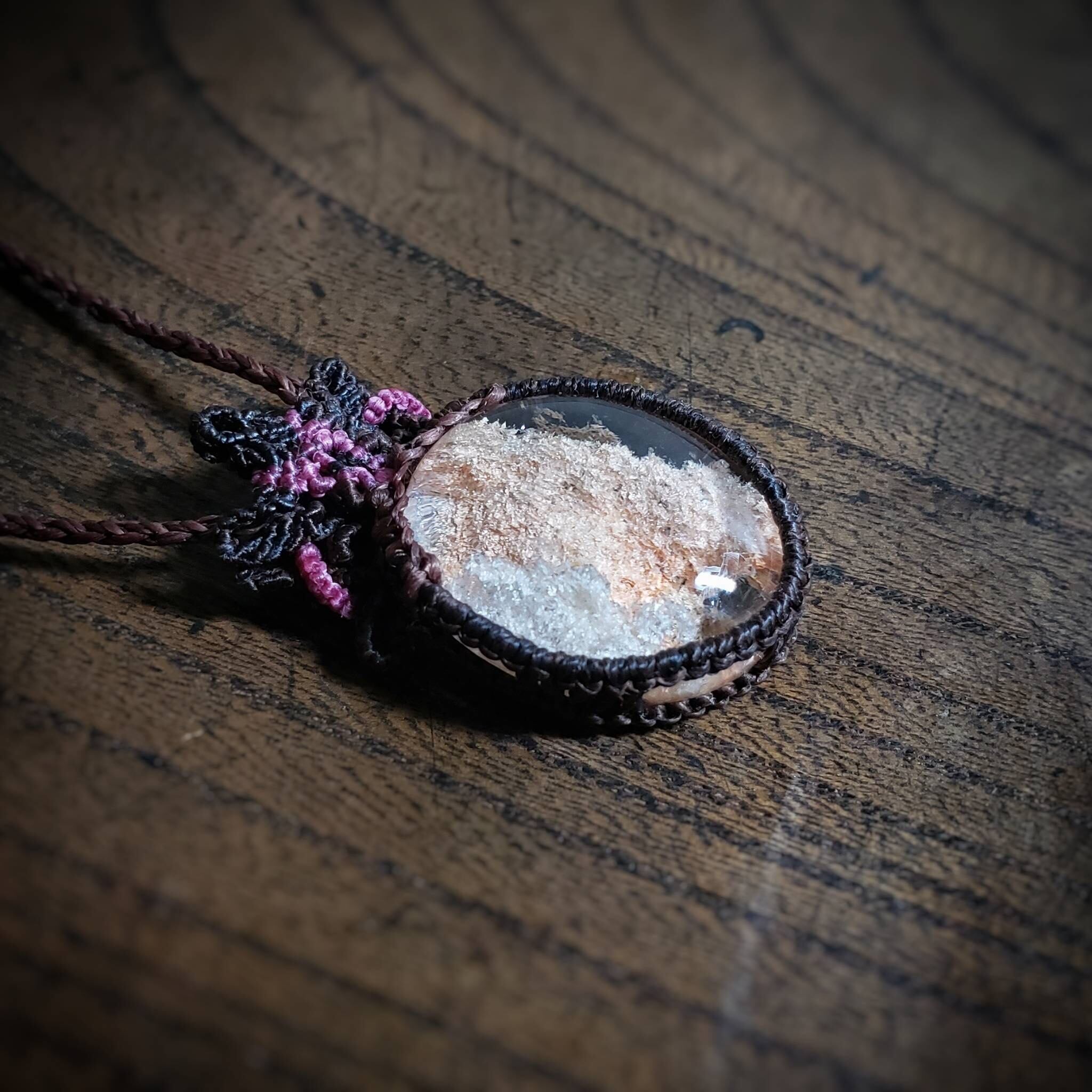 たっぷりの内包物が美しい自然を切り取り水晶の中に閉じ込められたかの様な天然石。