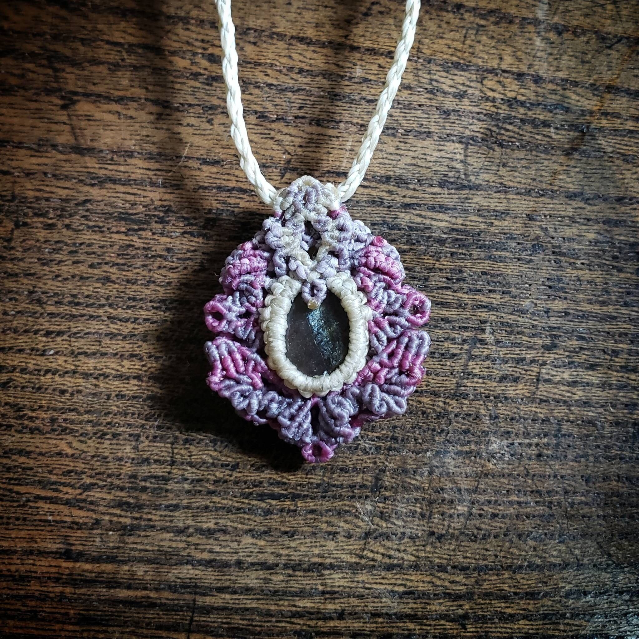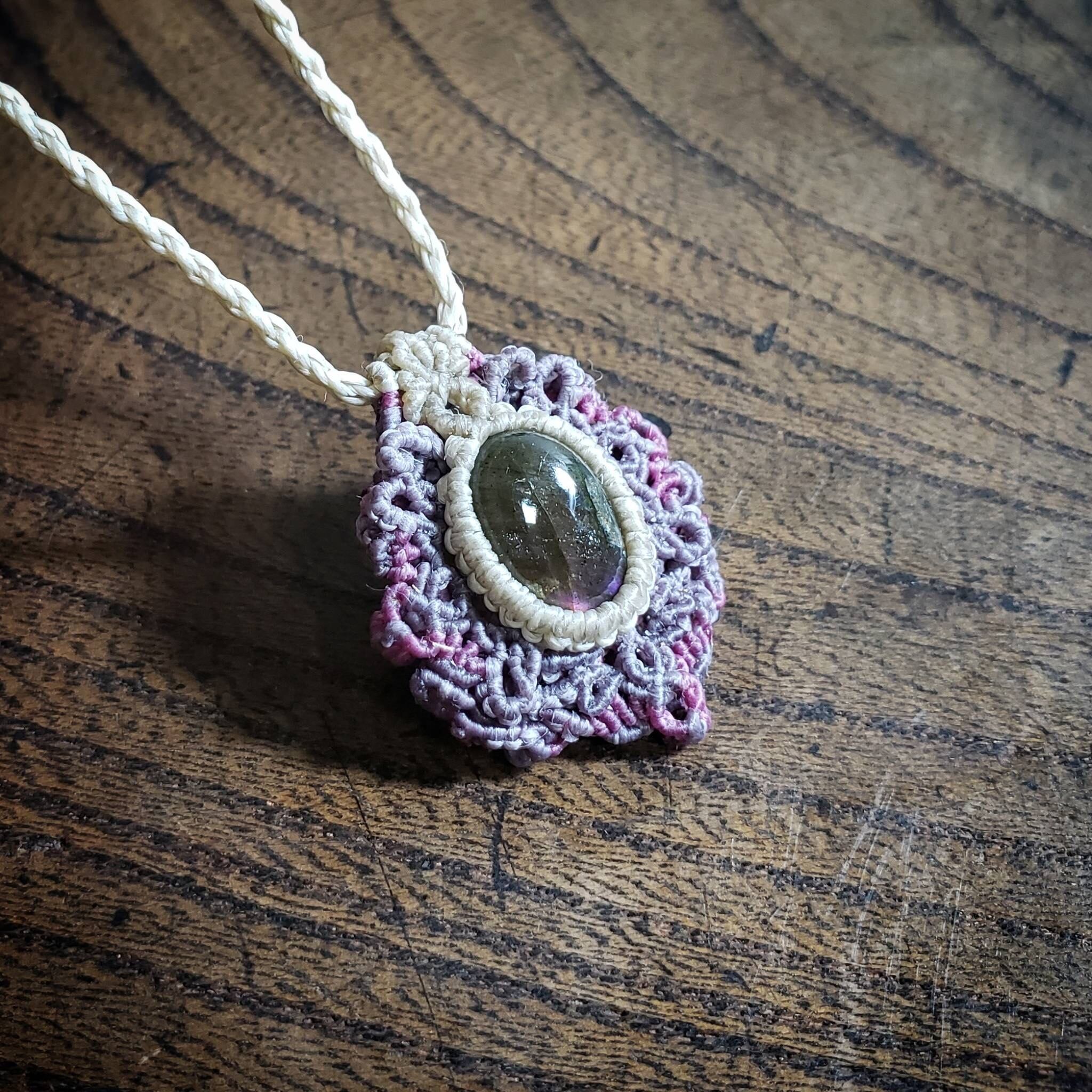 ご覧頂きありがとうございます。こちらは、パープルラブラドライトのマクラメ編みネックレスです。